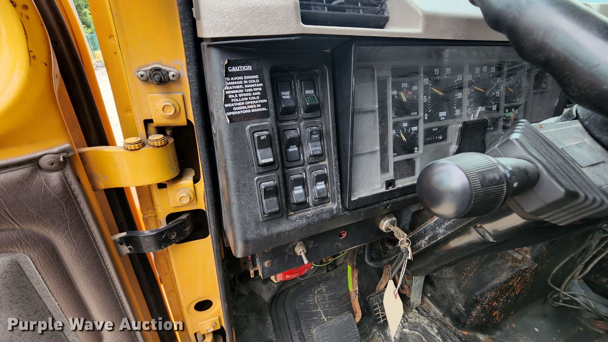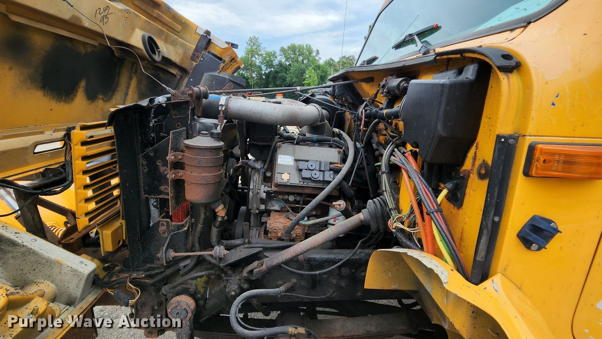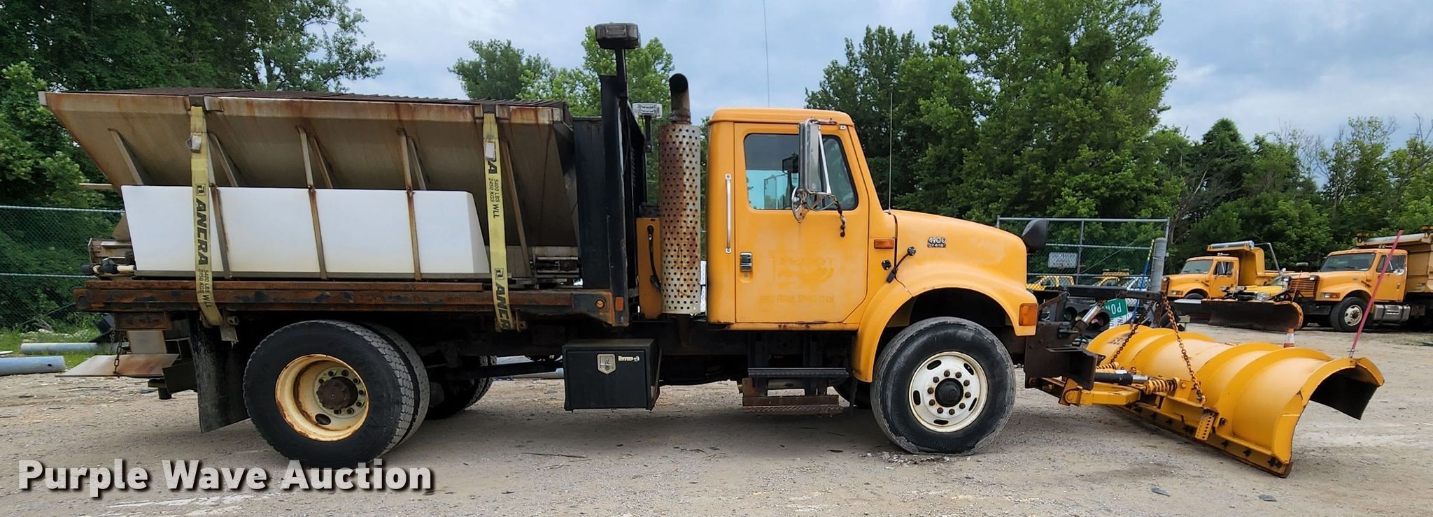 2002 International 4900 dump truck. Miles: 33,324 on odometer, Hours: 1,734 on meter, VIN: 1HTSDAAR72H524009, Unit #: 6528. Engine International DT466E, Displacement: 7.6L, Cylinders: 6, Fuel type: Diesel. Transmission Eaton Fuller, Manual, Speed: 6. Chassis Axles: Single, Suspension: Spring, Brakes: Air, PTO. Interior AC, Heat, Heated mirrors, Power windows, Cruise control. Features Dump bed CM 1580153, 11' L x 97" W, Bed type: Steel, Ram: Single, Spreader Flink 8610 MO 01, Capacity: 5.5 cu.yd., Plow Width: 144". Tires Front: 315/80R22.5, Rear: 11R22.5. Notes Clutch issues. Missouri title. Missouri Department of Transportation (MODOT). 2309 Barrett Station Road. Ballwin, MO 63021