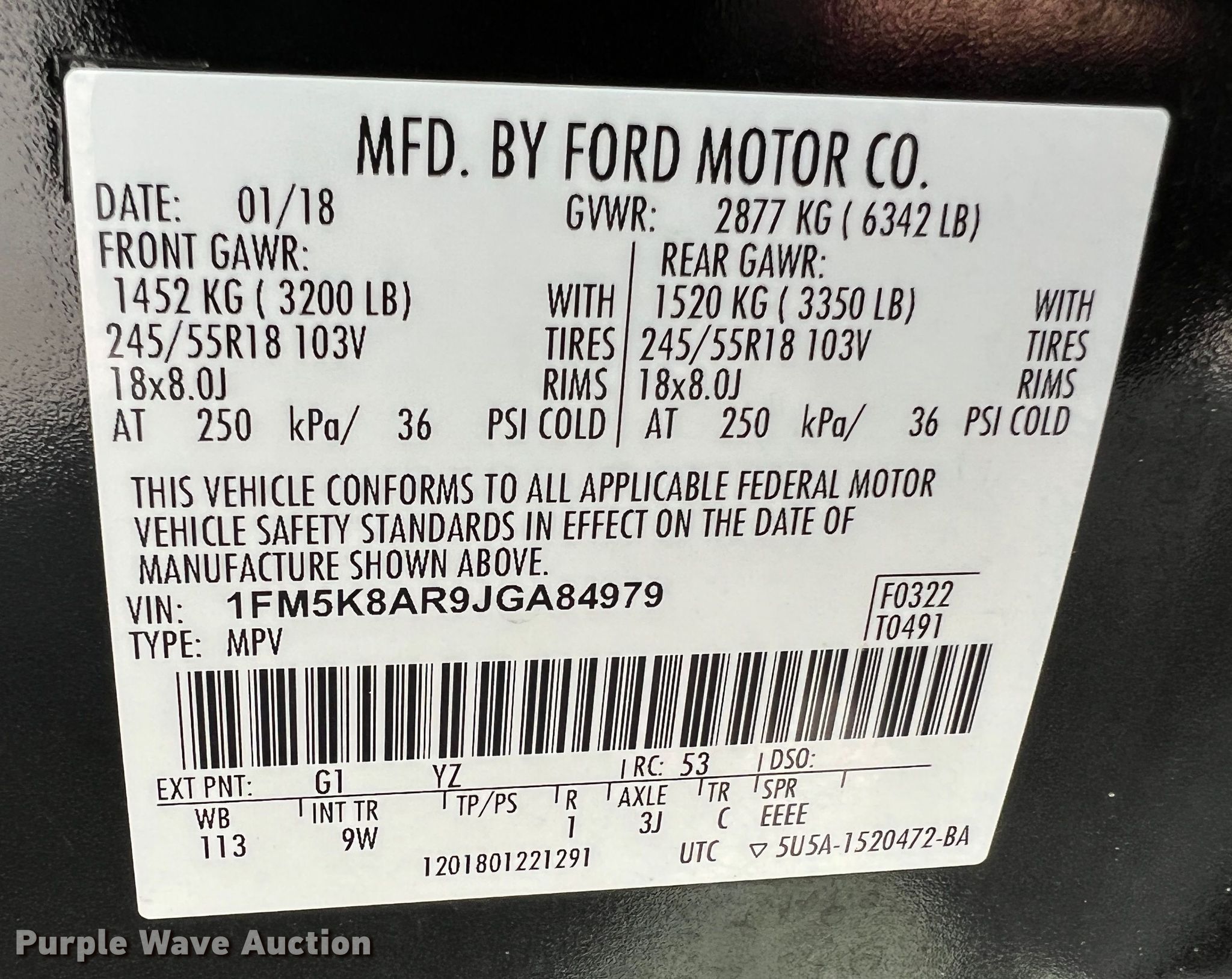• VIN: 1FM5K8AR9JGA84979
