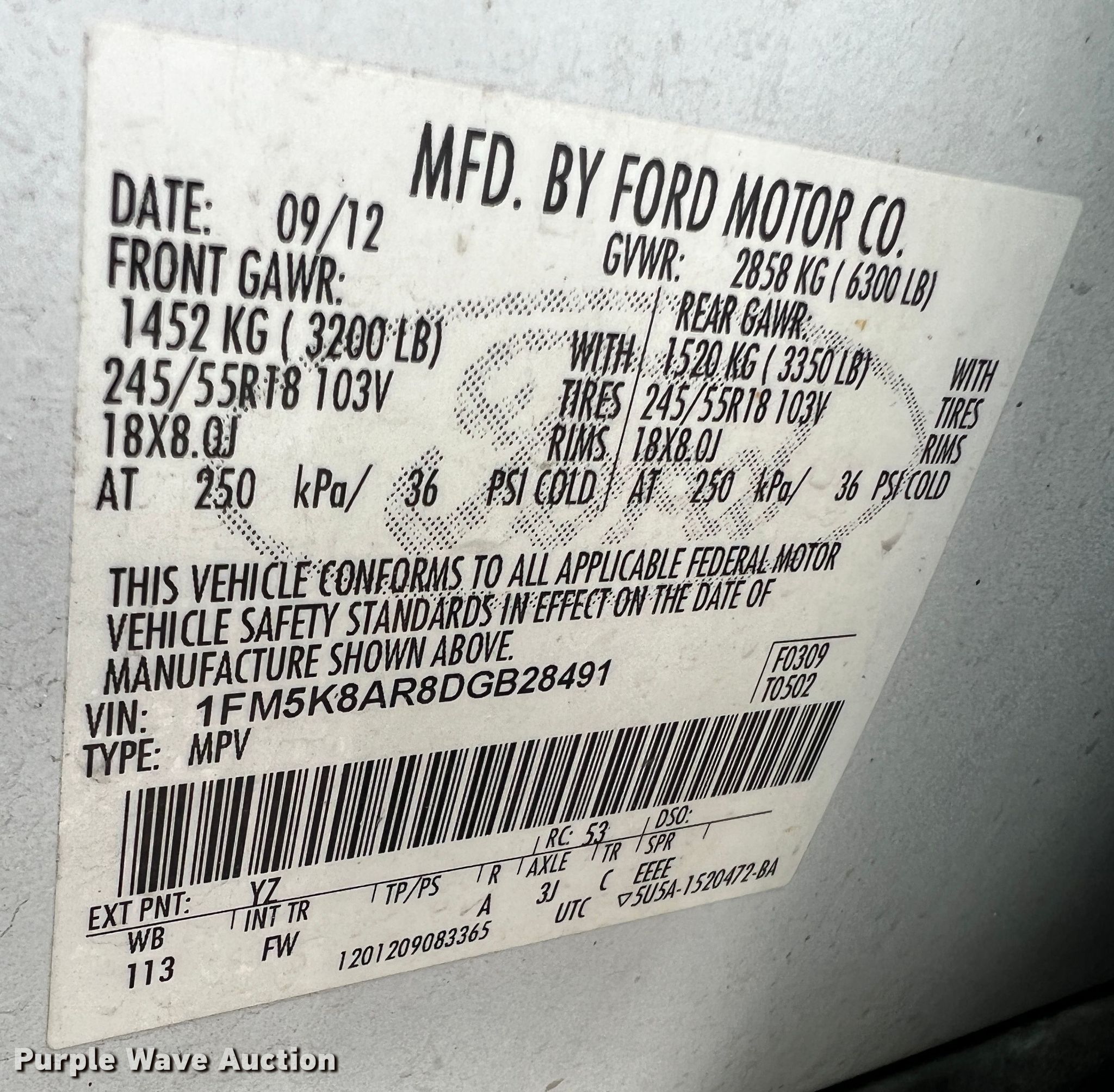 - VIN: 1FM5K8AR8DGB28491