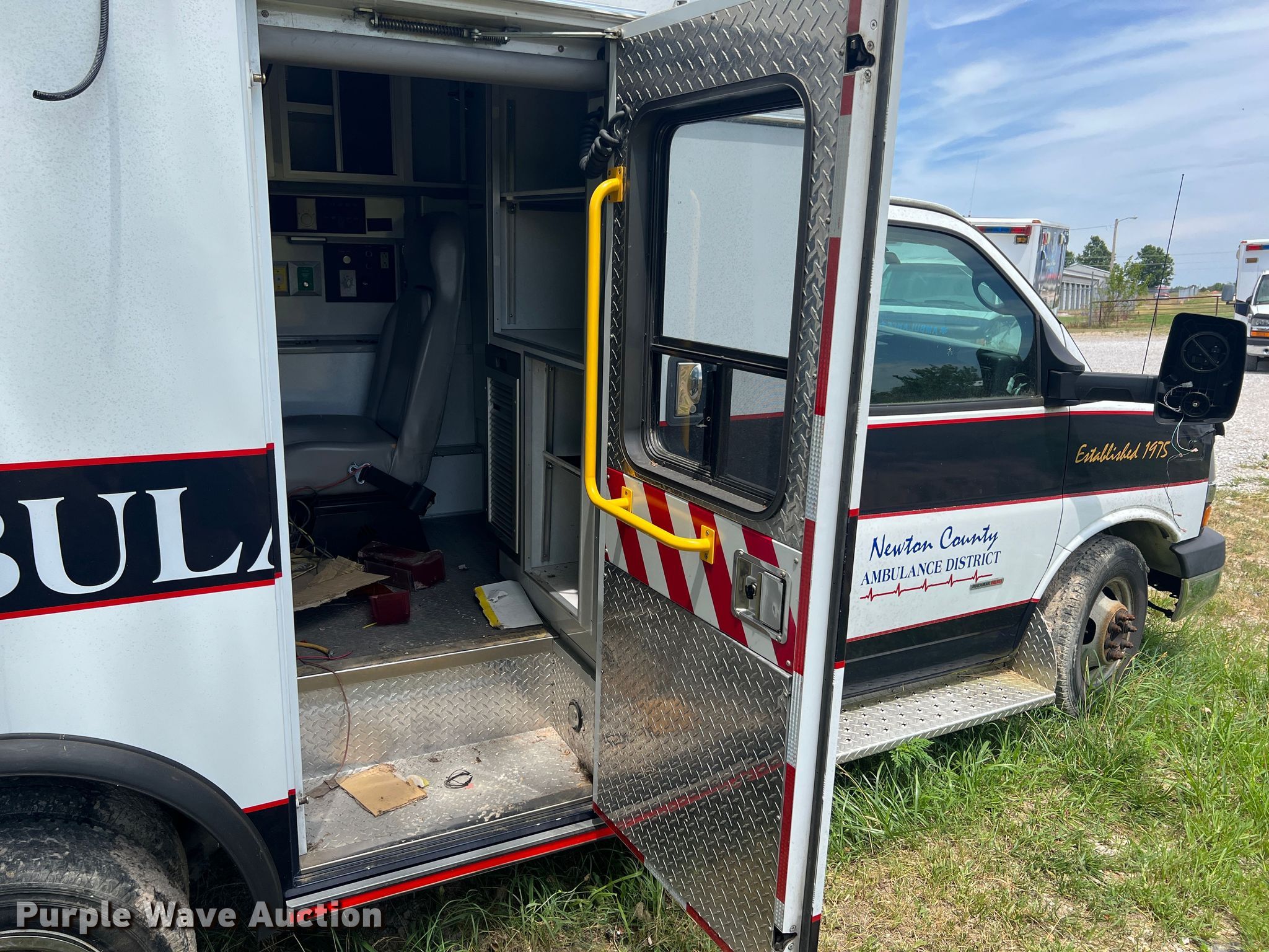 2015 Chevrolet Express G3500 ambulance. Miles: Unknown, VIN: 1GB3G2CL9F1116749. Engine Displacement: 6.6L V8 OHV, Cylinders: 8, Fuel type: Diesel. Transmission Automatic. Chassis Axles: Single, Suspension: Spring, Brakes: Hydraulic, GVWR: 12,300 lbs. Interior AC, Heat, Power windows, Power locks, Cruise control, Auxiliary controls. Features Ambulance body PA/ siren controls, Oxygen hookups. Tires Size: LT225/75R16. Notes No battery. Missouri title. Mileage has not been verified. Odometer discrepancy will be marked on the title. Newton County Ambulance District. Neosho, MO 64850