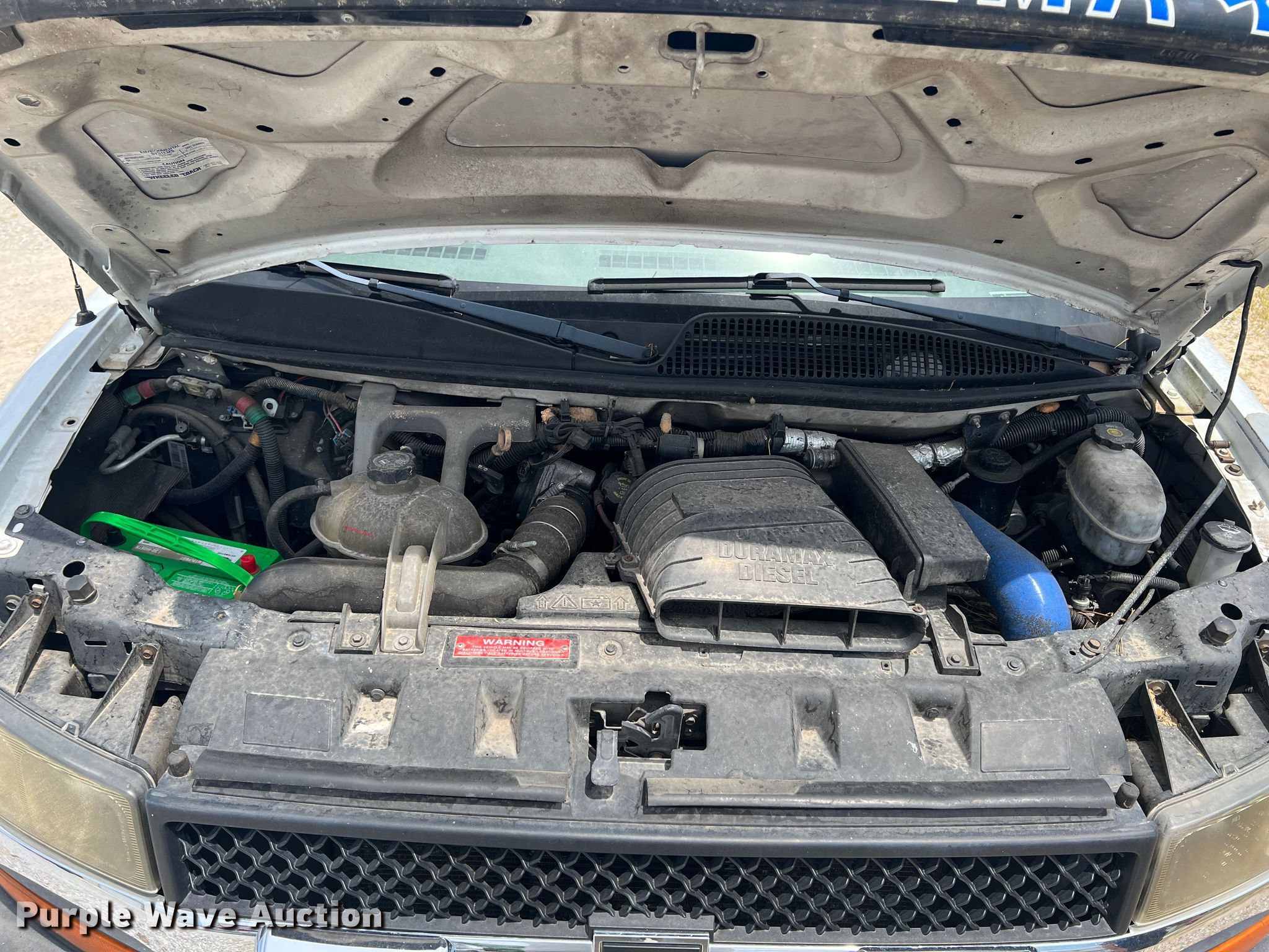 2009 Chevrolet Express 3500 ambulance. Miles: 264,682 on odometer, VIN: 1GBJG316991156974. Engine Displacement: 6.6L V8 OHV, Cylinders: 8, Fuel type: Diesel. Transmission Automatic. Chassis Axles: Single, Suspension: Spring, Brakes: Hydraulic, GVWR: 12,300 lbs. Interior AC, Heat, Power windows, Power locks, Cruise control, Auxiliary controls. Features Ambulance body PA/ siren controls, Oxygen hookups. Tires Size: LT225/75R16. Notes Dash warning indicator: Check engine. Missouri title. Newton County Ambulance District. Neosho, MO 64850