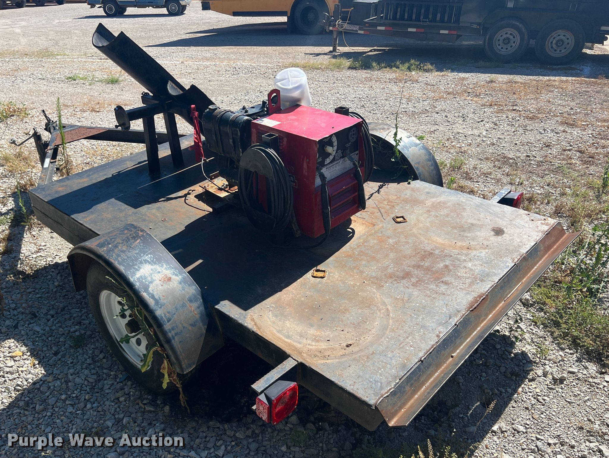 Lincoln Electric Weldanpower welder. Serial: 01149666. Engine Kohler, Cylinders: 1, Fuel type: Gas. Features Welder Capabilities: AC, Trailer mounted. Trailer 13' L x 79" W, Ball hitch size: 2", Suspension: Spring, Brakes: Electric, Axles: Single, Tire size: ST205/75R14. Notes Unknown operating condition. Transfer of ownership documentation will be a bill of sale. USD 436 - Caney Valley School District. Caney, KS 67333