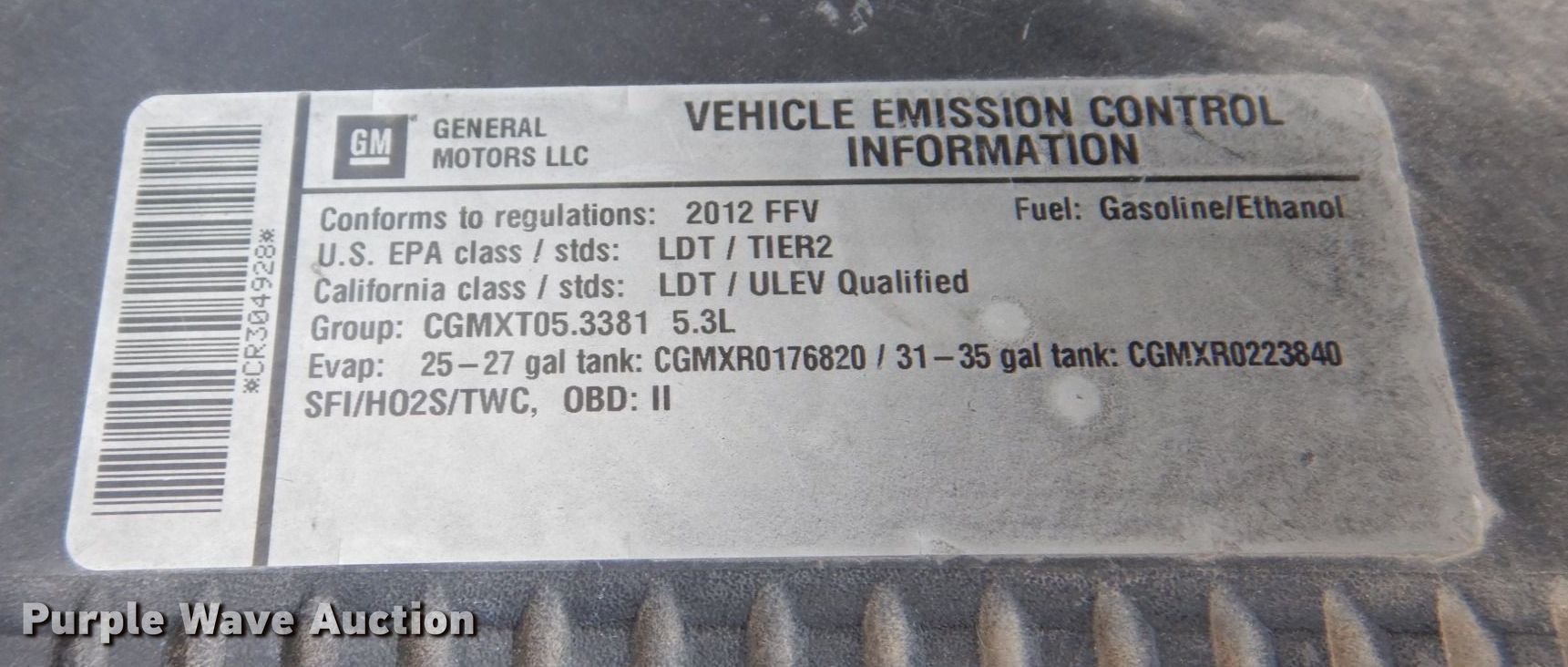 Purple Wave is selling a used Passenger Vehicle in Missouri. This item is a 2012 Chevrolet Tahoe Police SUV with the following: Miles: 120,790 on odometer, VIN: 1GNSK2E00CR304928