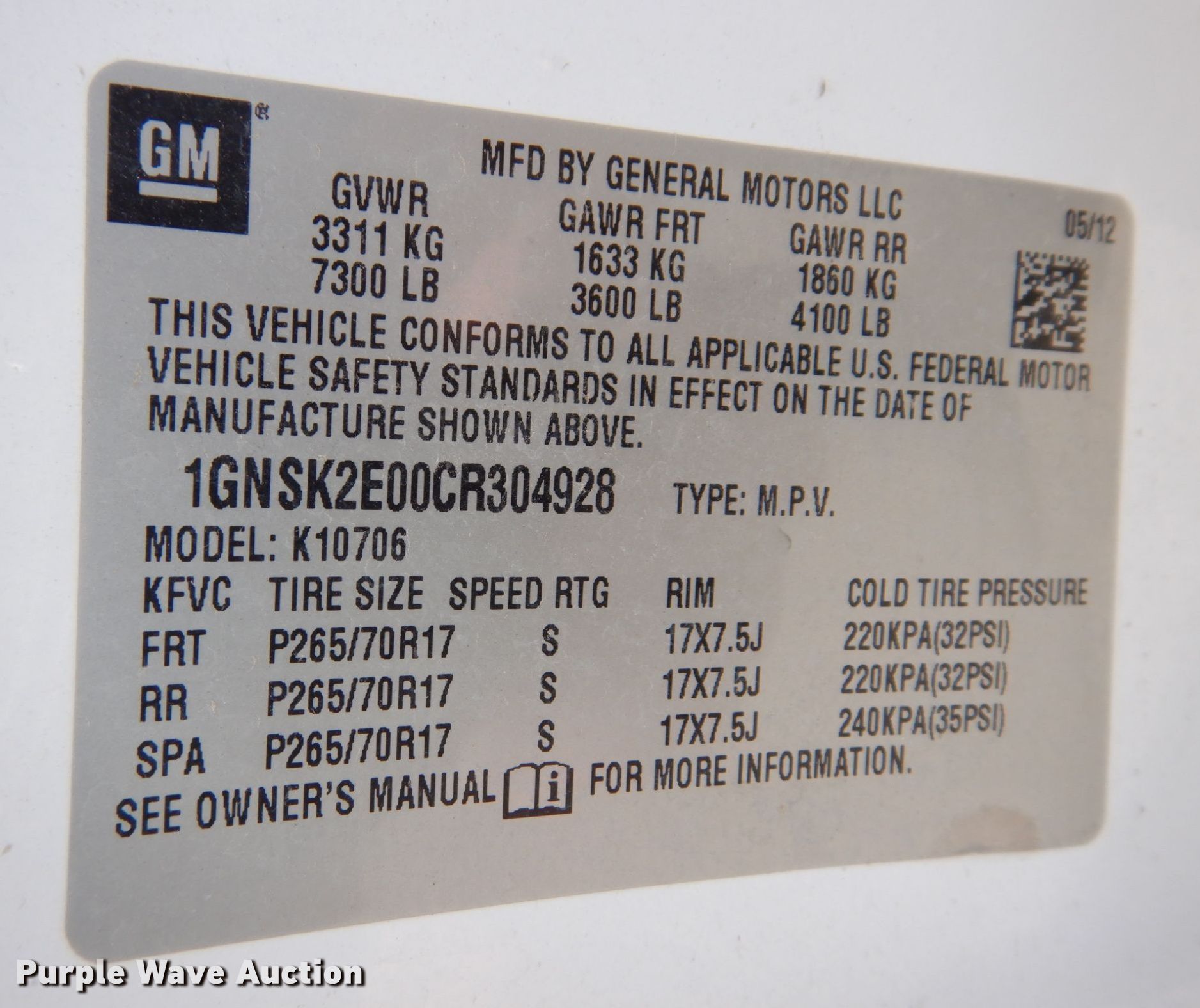 - VIN: 1GNSK2E00CR304928