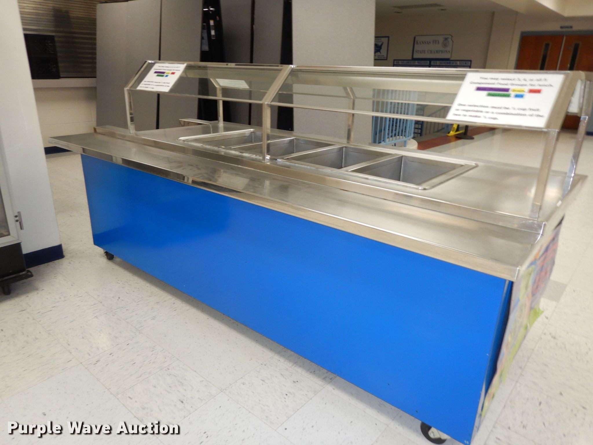 Purple Wave is selling a used Restaurant Equip. in Kansas. This item is a Restaurant equipment with the following: Metro CM2000 hot box, 120V, Four well steam table, 102" x 52" x 51", Unknown operating condition