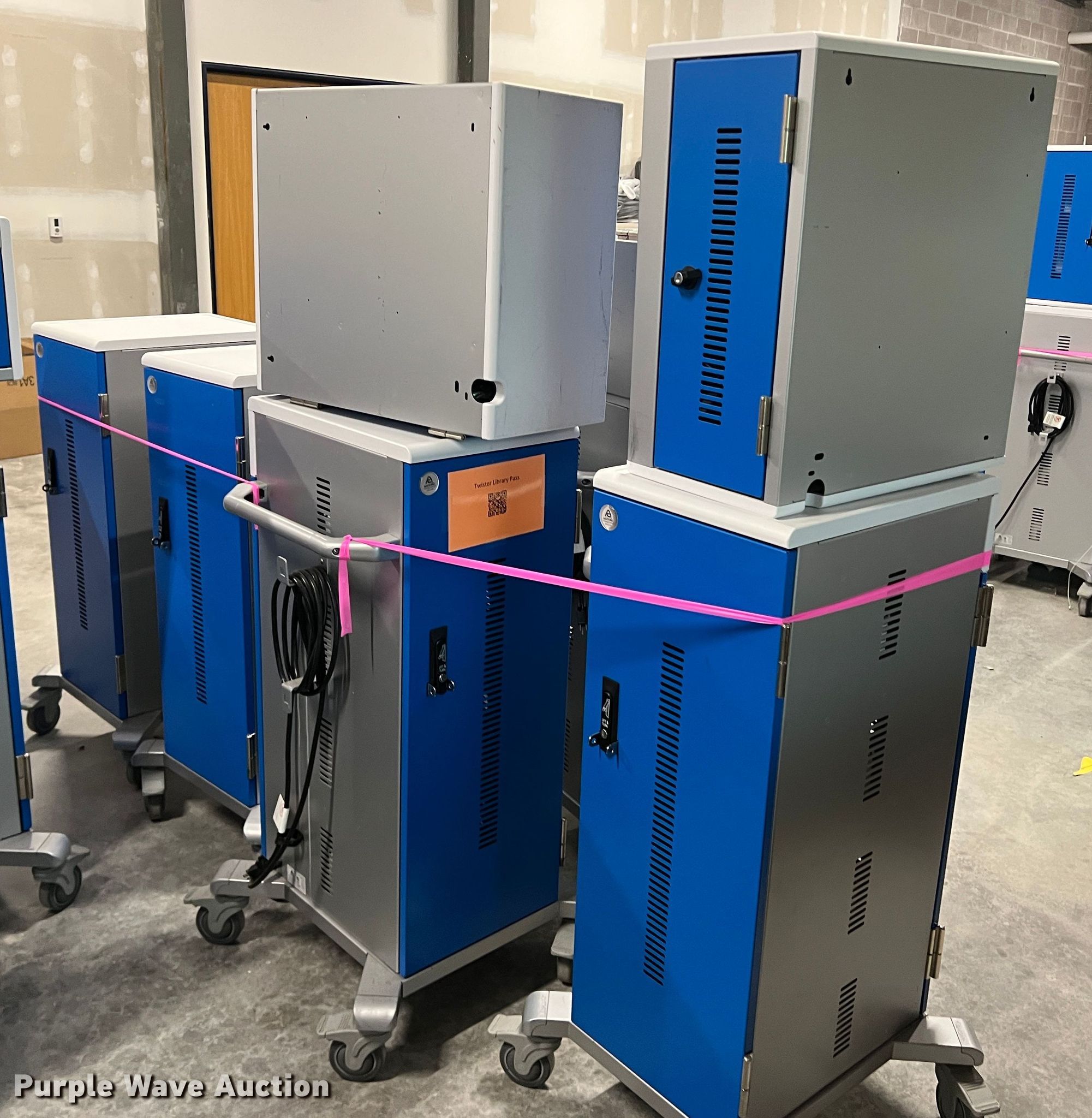 Purple Wave is selling a used Office Supplies and Equip. in Kansas. This item is a Electronics charging equipment with the following: (6) carts, (4) cabinets