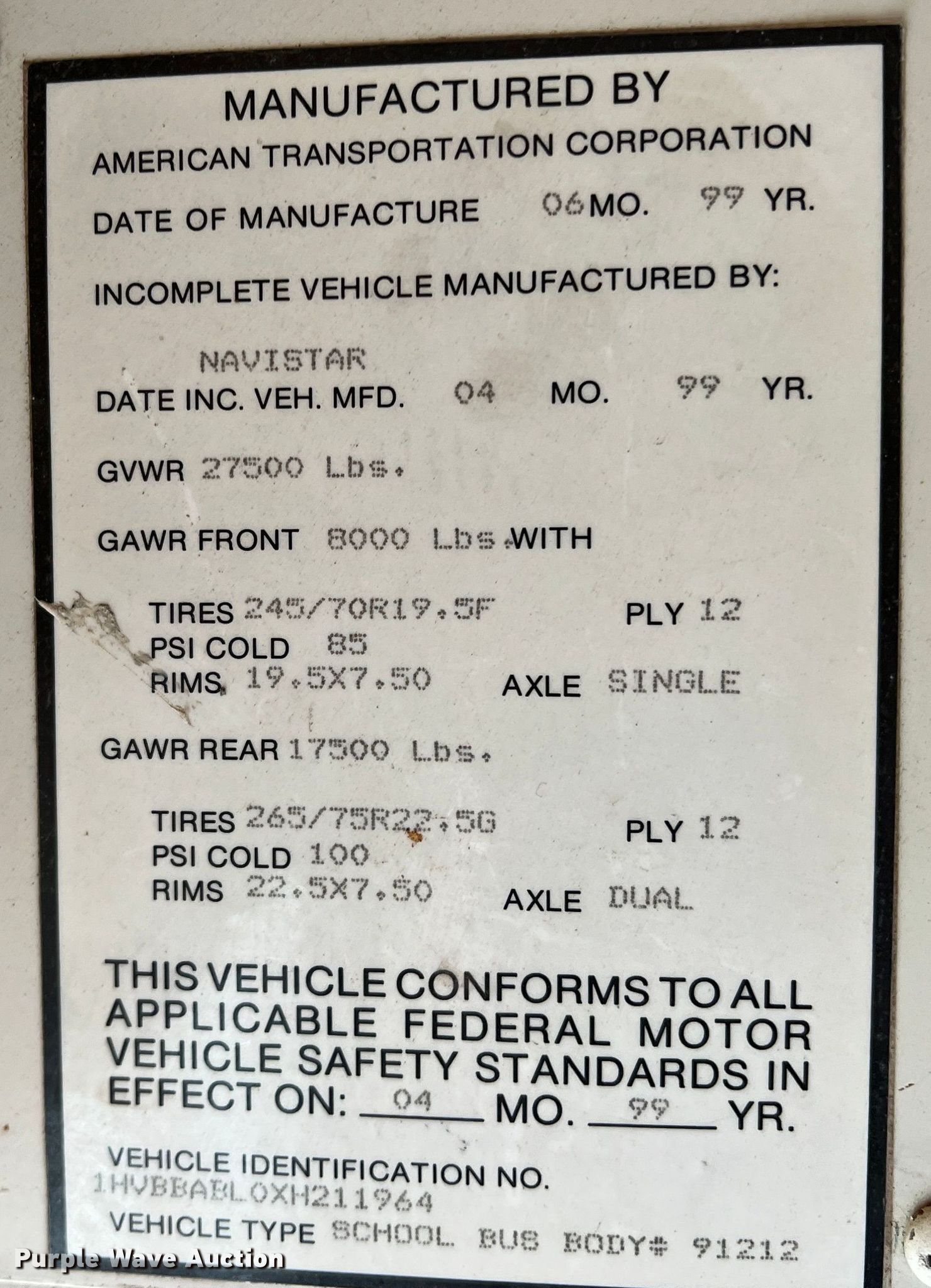 Purple Wave is selling a used Bus in Kansas. This item is a 1999 International 3800 school bus with the following: Miles: 105,885 on odometer, Hours: 16,631 on meter, VIN: 1HVBBABL0XH211964