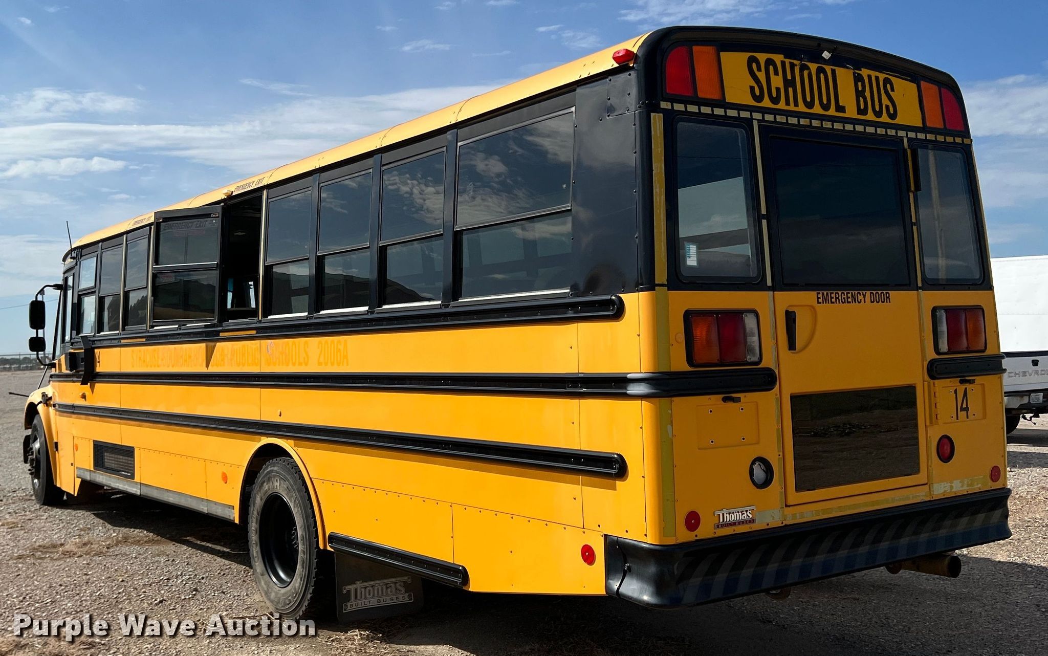 Purple Wave is selling a used Bus in Kansas. This item is a 2007 Thomas school bus with the following: Miles: Unknown, VIN: 4UZABRCT27CW00256