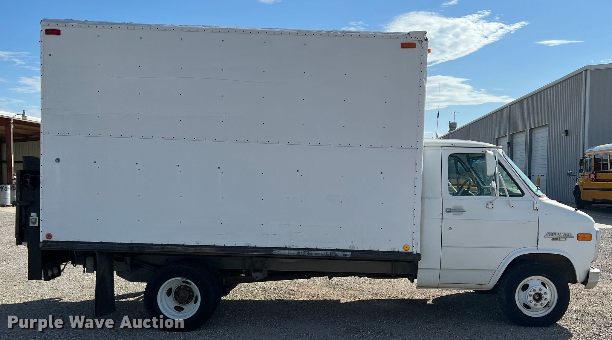 1992 Chevrolet G30 box truck. Miles: 80,979 on odometer, VIN: 2GBHG31K4N4153494. Engine Displacement: 5.7L, Cylinders: 8, Fuel type: Gas. Transmission Automatic. Chassis Axles: Single, Suspension: Spring, Brakes: Hydraulic, GVWR: 10,000 lbs. Interior AC, Heat. Features Box bed 12' L x 94" W x 82" H, Floor: Wood, End gate lift Tommy Gate VSW91-1050S36TP06.. Tires Size: LT225/75R16. Kansas title. Liberal School Bus Barn. 1703 W 4th St. Liberal, KS 67901