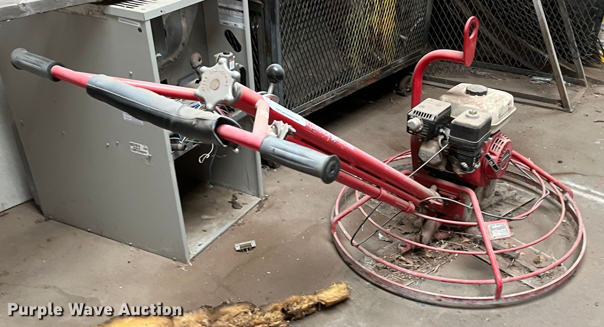 Purple Wave is selling a used Concrete Equip. or Acces. in Kansas. This item is a Allen power trowel with the following: Serial: 620220, Diameter: 3', Honda GX160 single cylinder gas engine, HP: 5.5