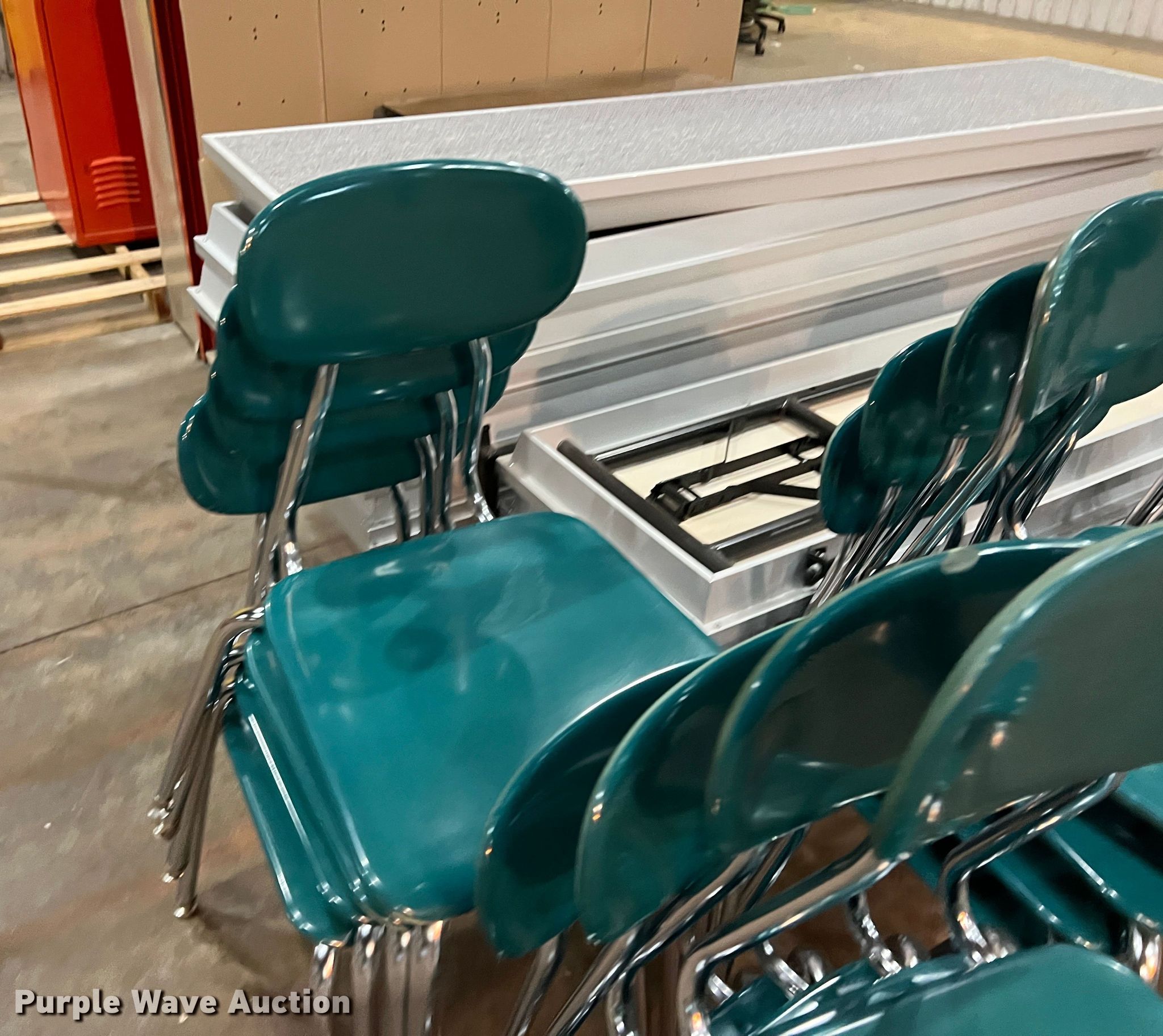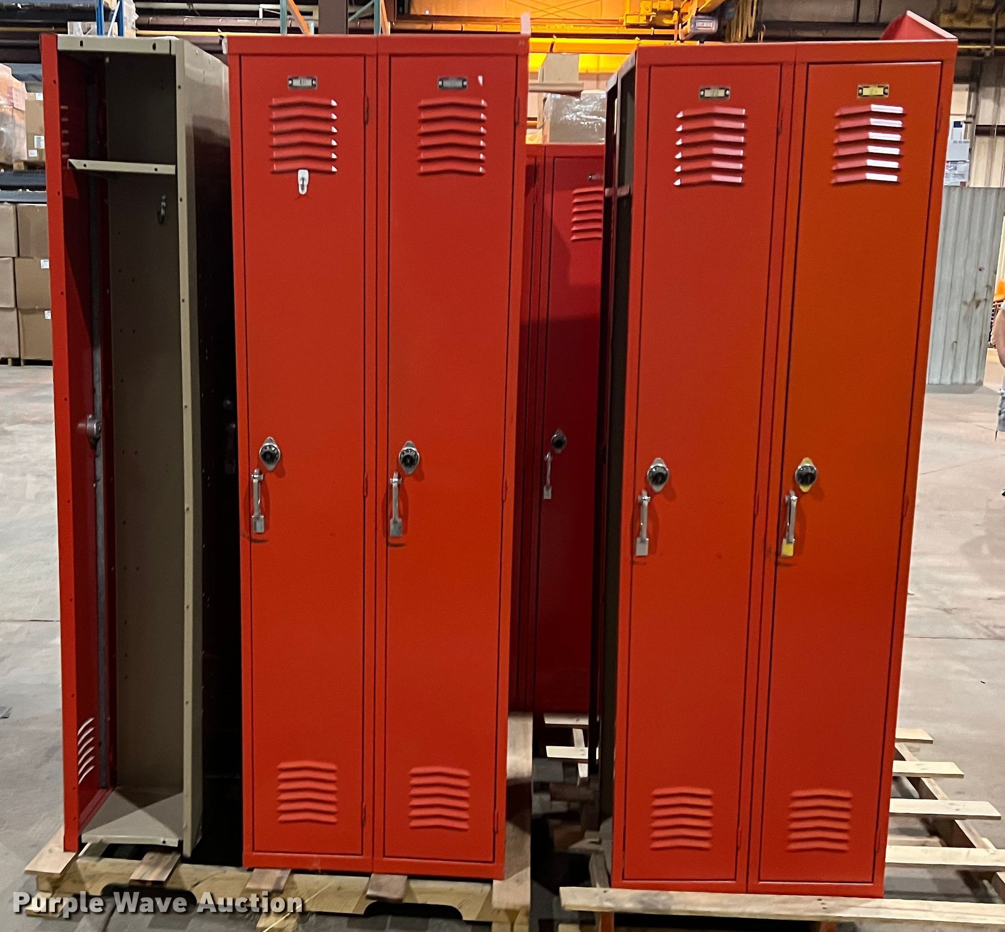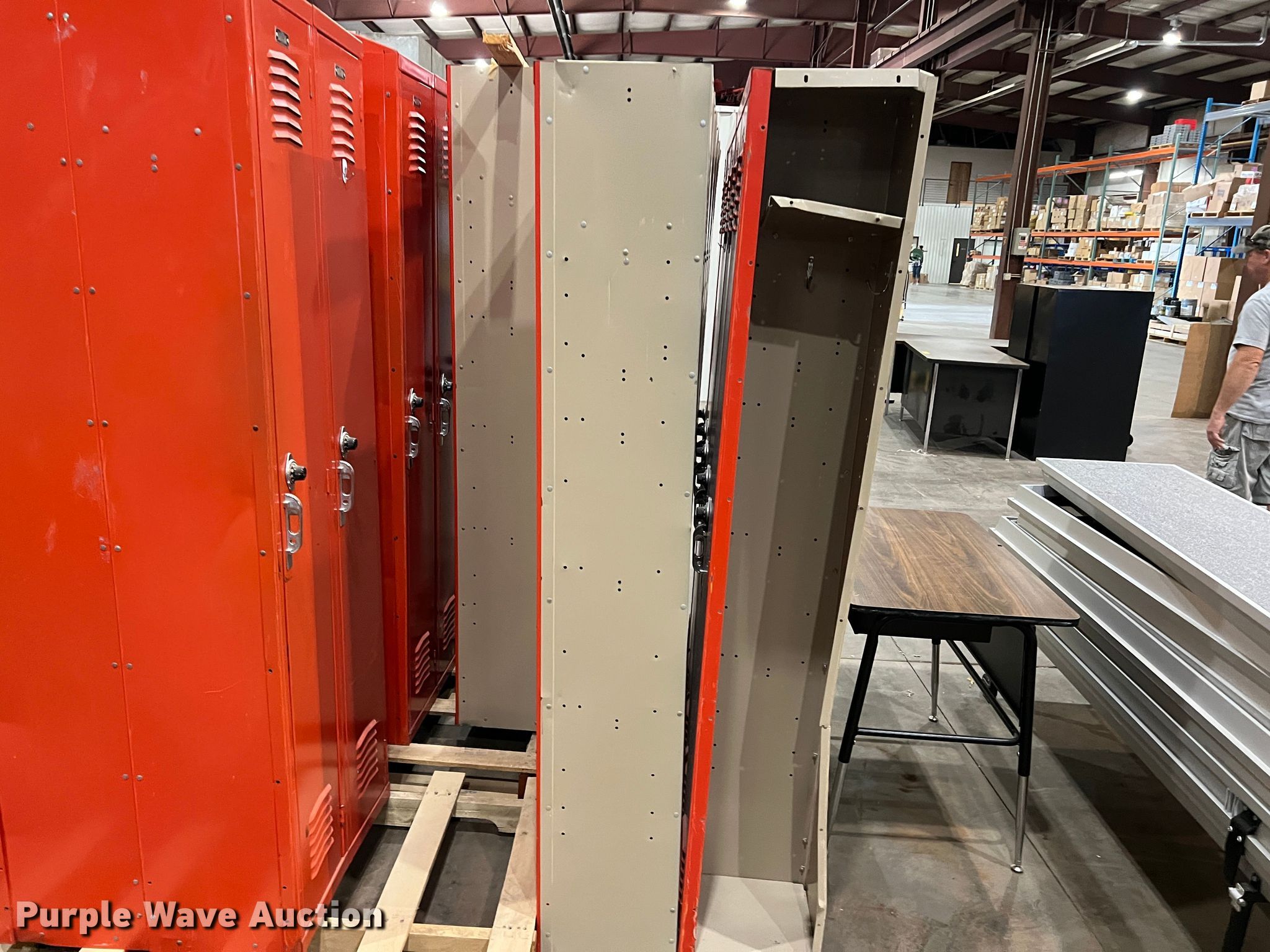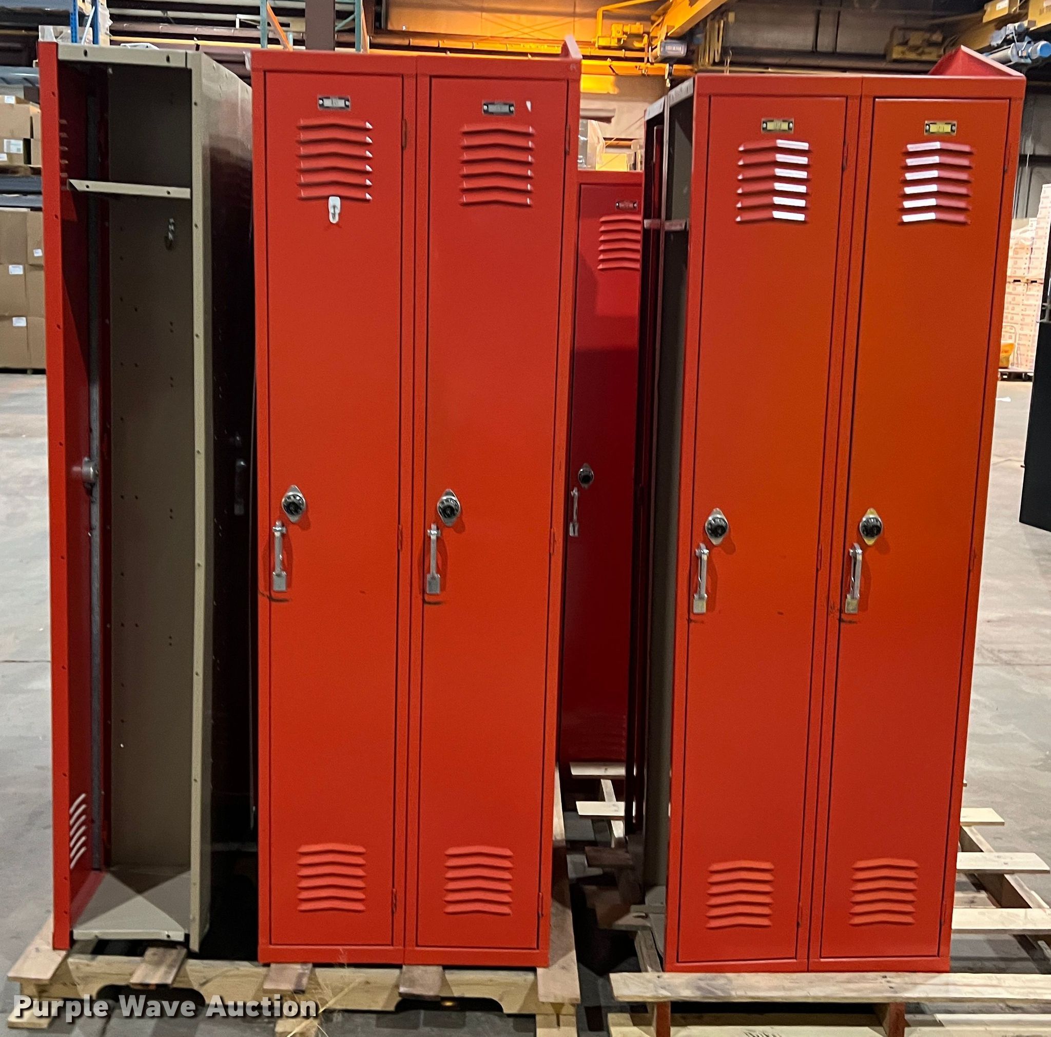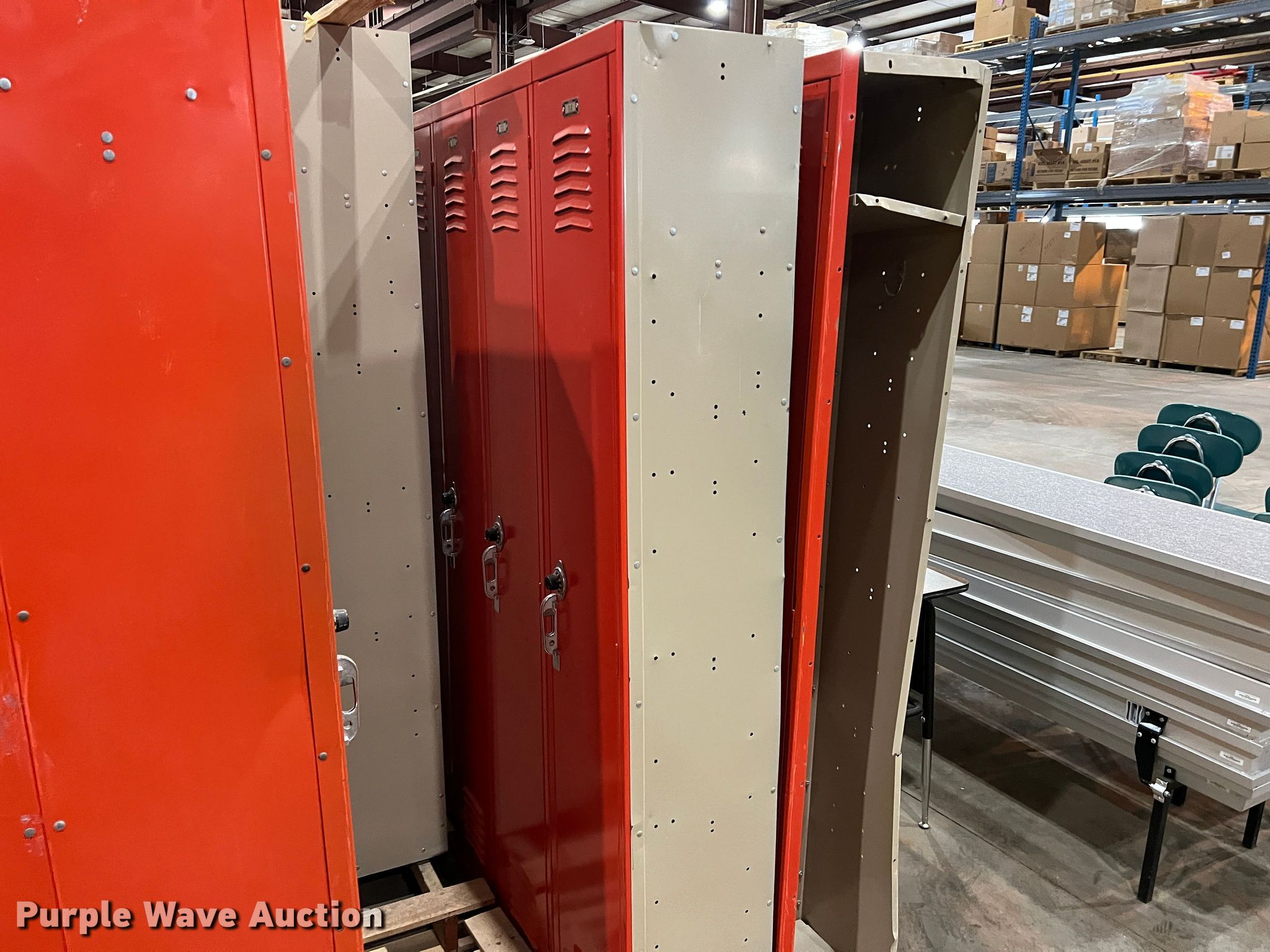 Purple Wave is selling a used Furniture in Kansas. This item is a Furniture with the following: Approx. 16 chairs, (2) band risers, 6' L, Approx. 6 lockers