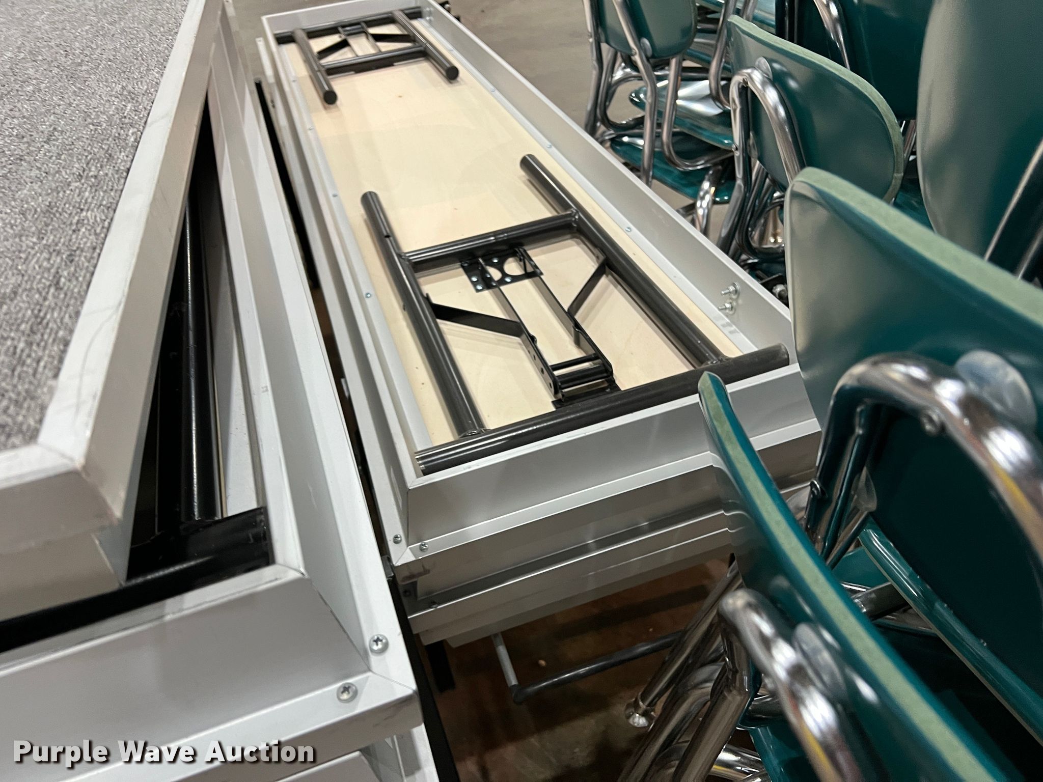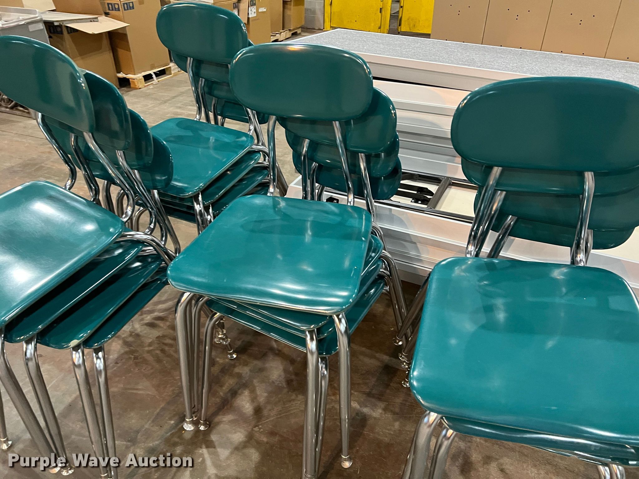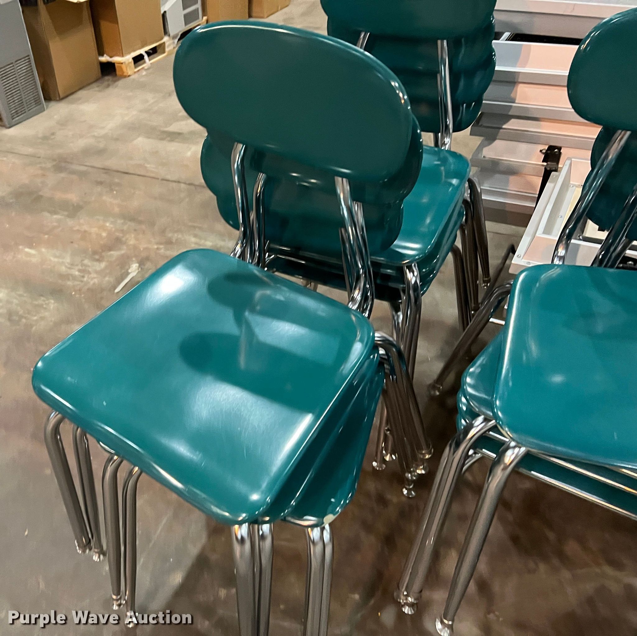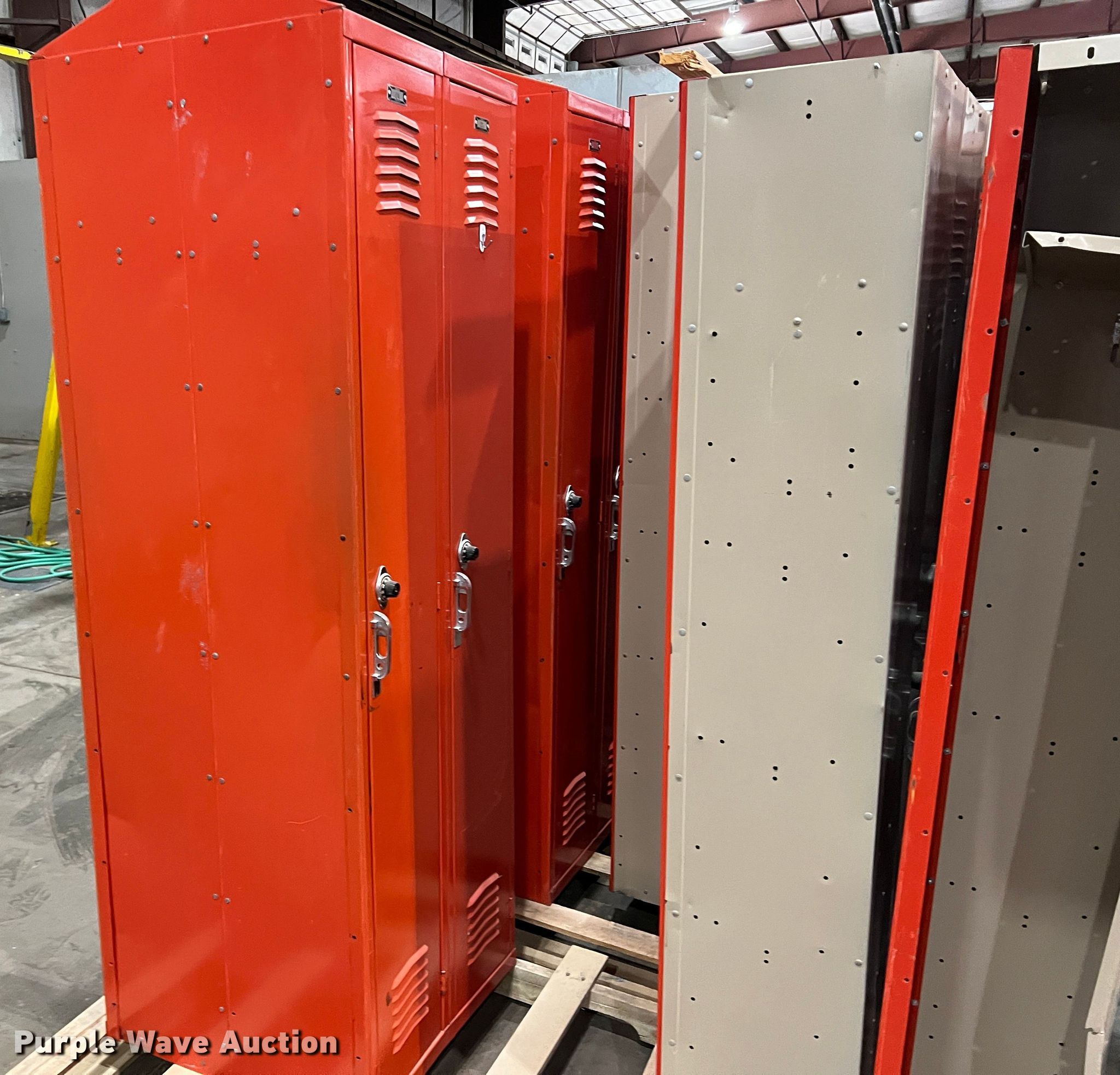 Purple Wave is selling a used Furniture in Kansas. This item is a Furniture with the following: Approx. 16 chairs, (2) band risers, 6' L, Approx. 6 lockers