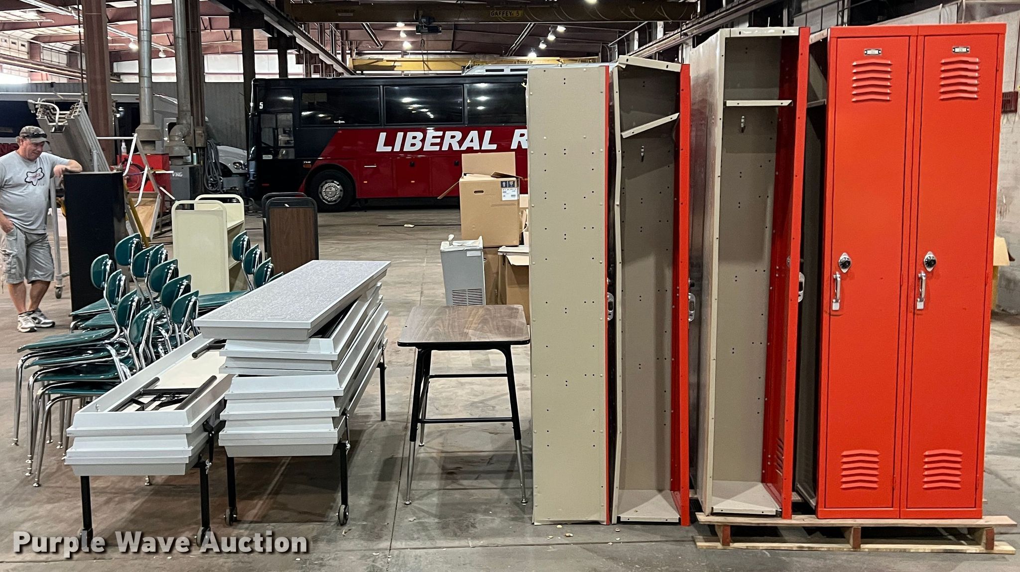 Furniture. Approx. 16 chairs , (2) band risers 6' L, Approx. 6 lockers. Liberal School Bus Barn. 1703 W 4th St. Liberal, KS 67901