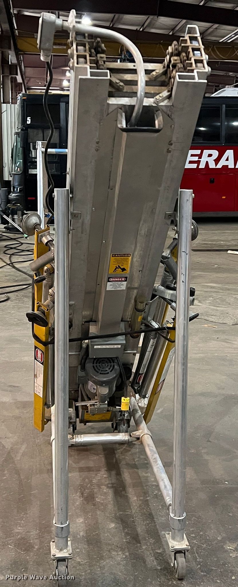 Power-Scope B525-00 vertical lift. Serial: 1317. Electric Motor Doerr, HP: 0.75, Volts: 115/230. Features Maximum lift capacity: 300 lbs, Maximum lift height: 25', Platform: 24" L x 27" W, Controls: Platform. Liberal School Bus Barn. 1703 W 4th St. Liberal, KS 67901