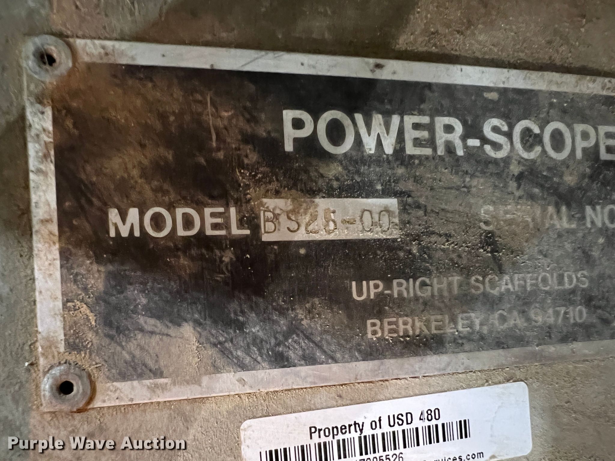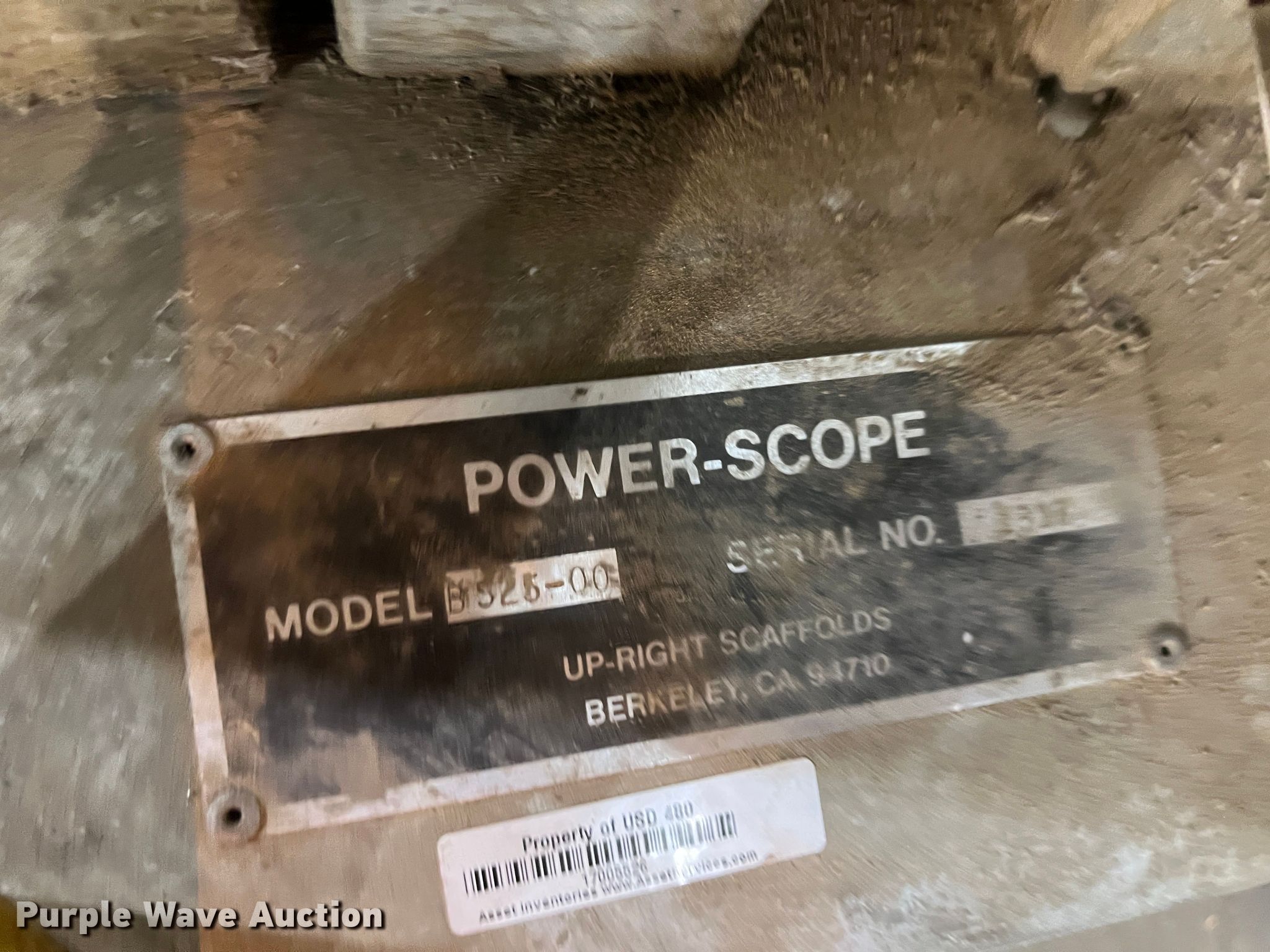 Purple Wave is selling a used Scissor or Vertical Lift in Kansas. This item is a Power-Scope B525-00 vertical lift with the following: Serial: 1317