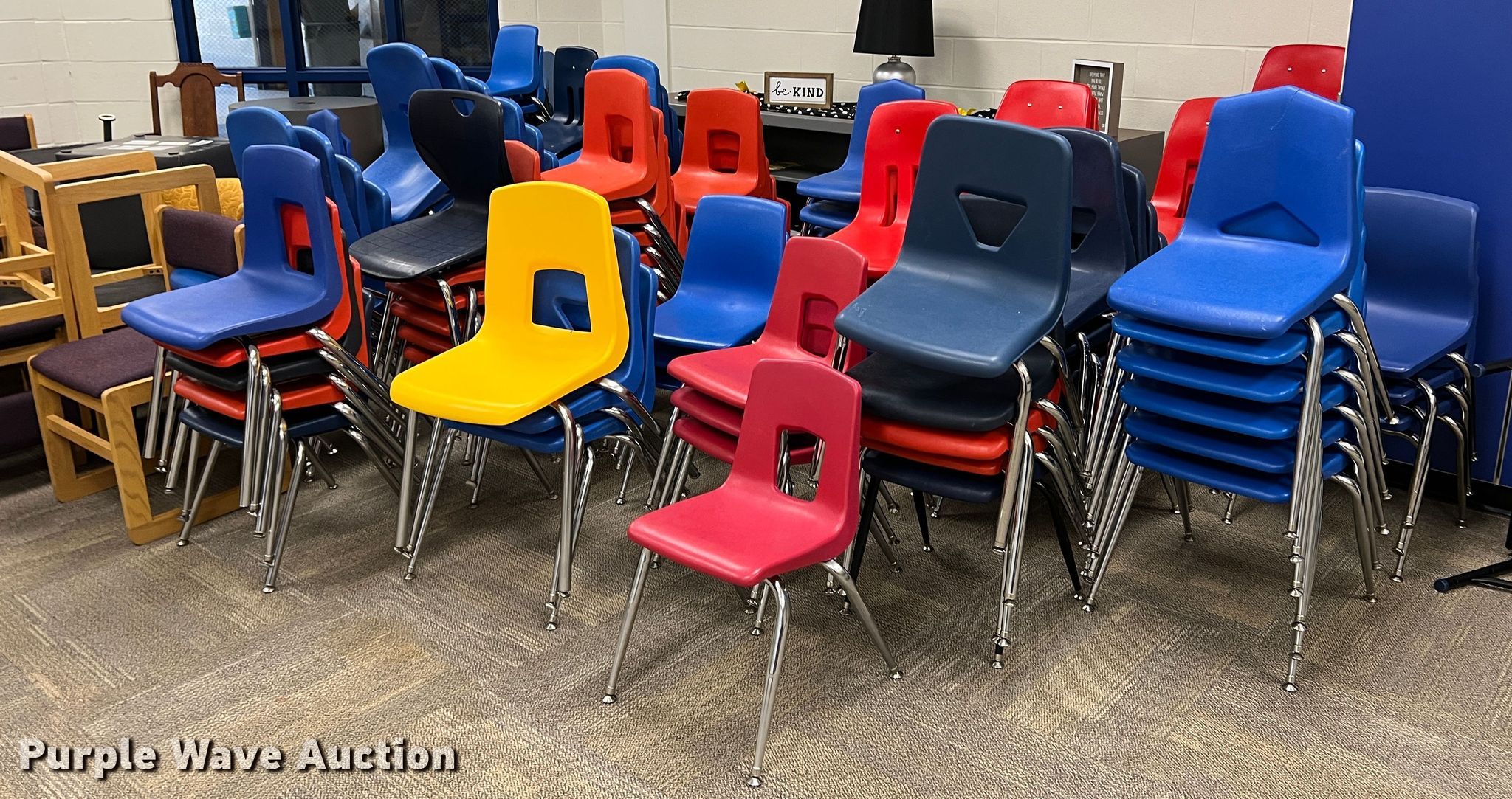 Purple Wave is selling a used Furniture in Kansas. This item is a Approximately 180 chairs with the following: Approximately 180 chairs. Liberal School Bus Barn. 1703 W 4th St. Liberal, KS 67901
