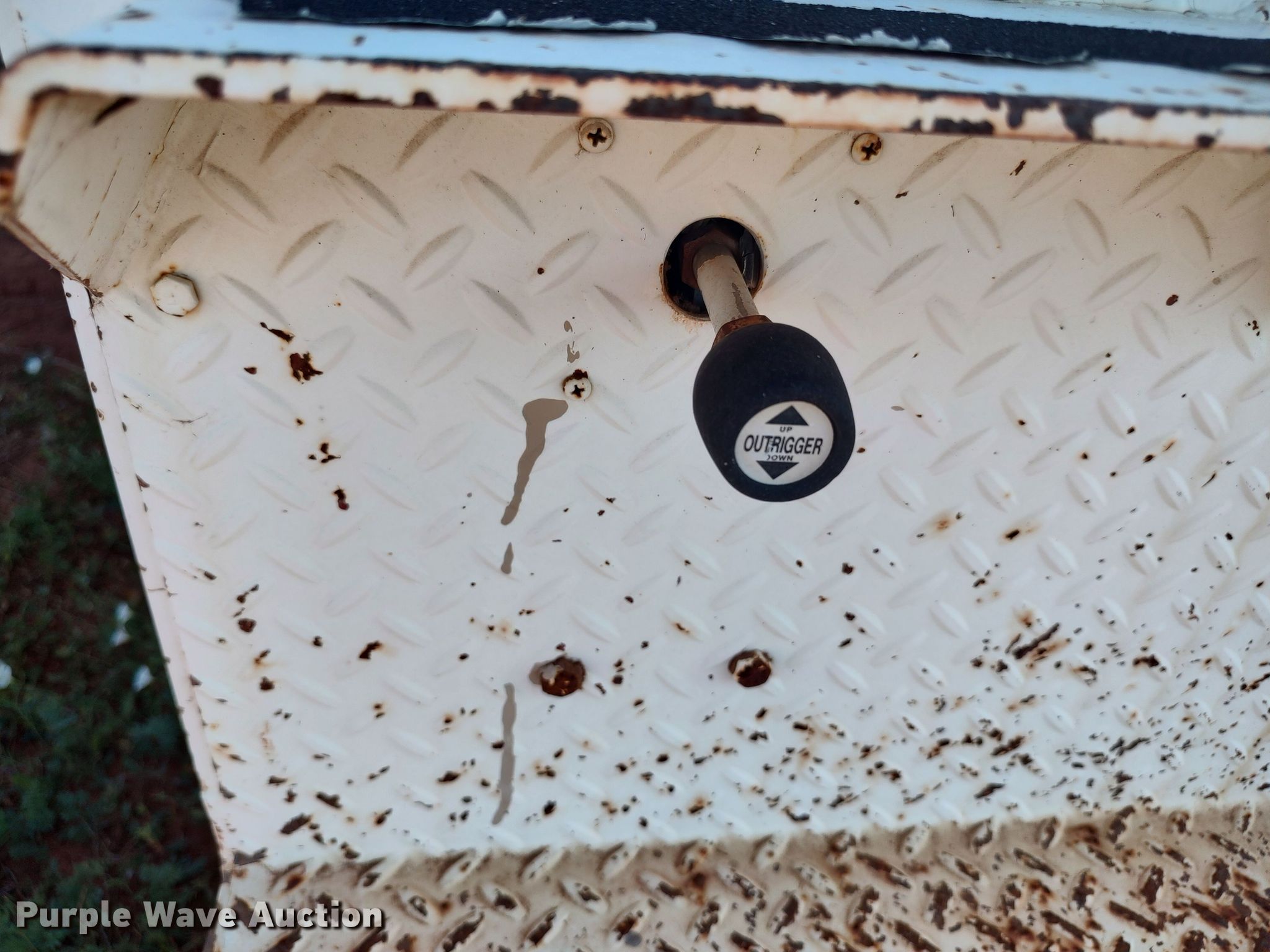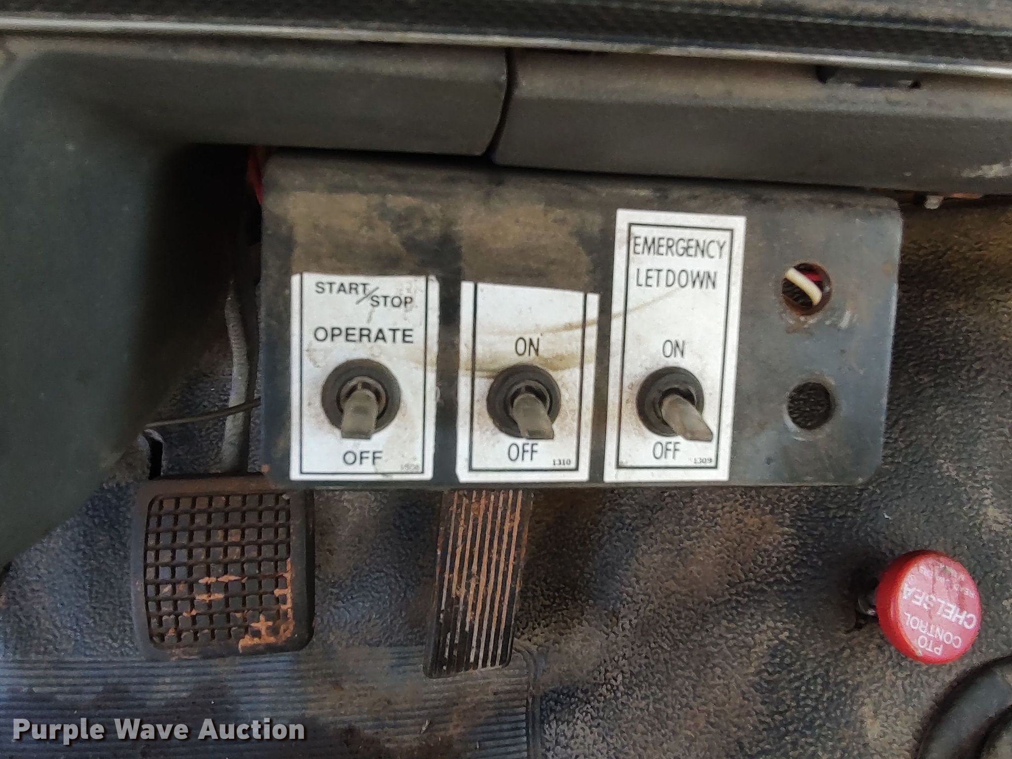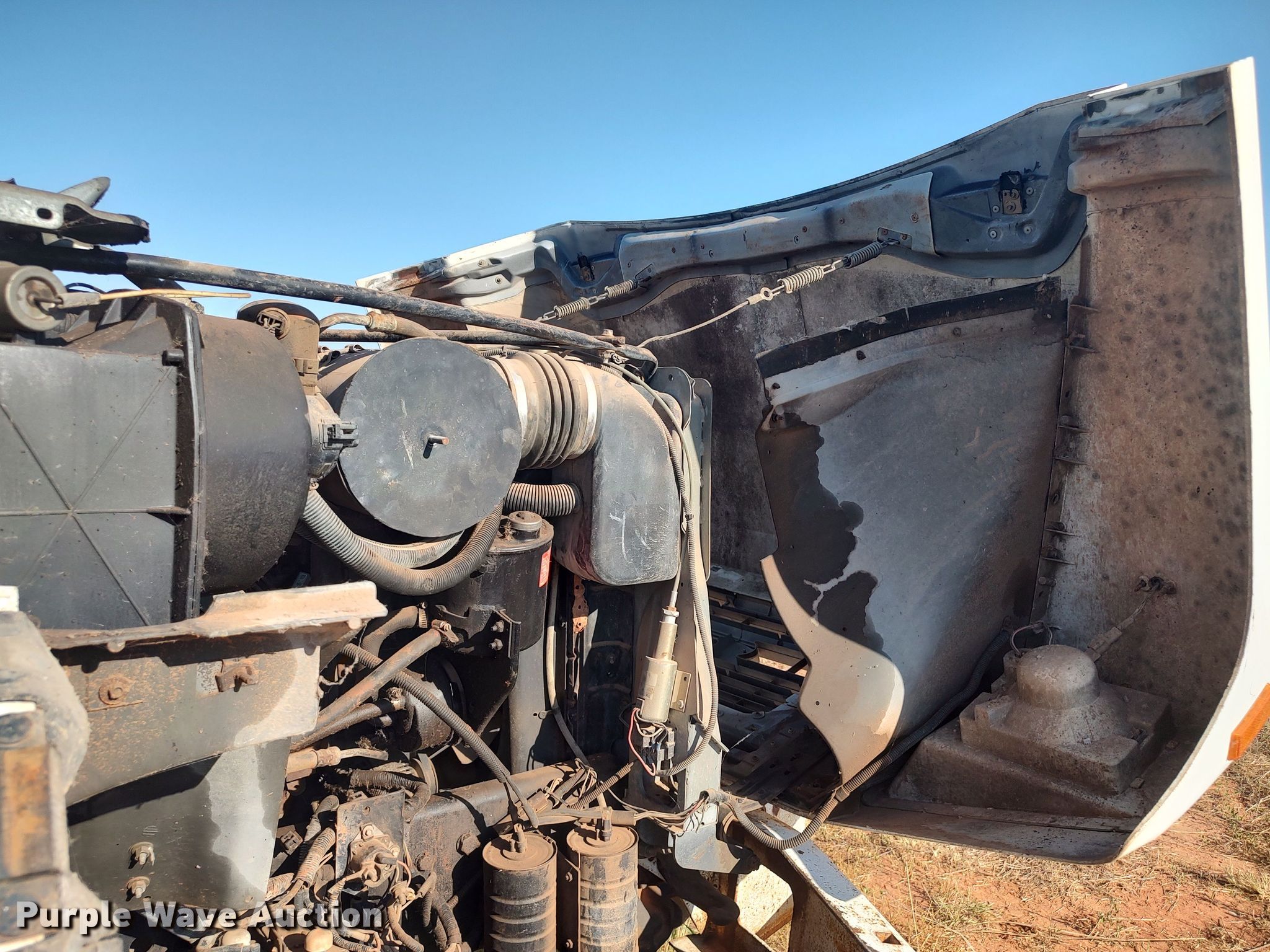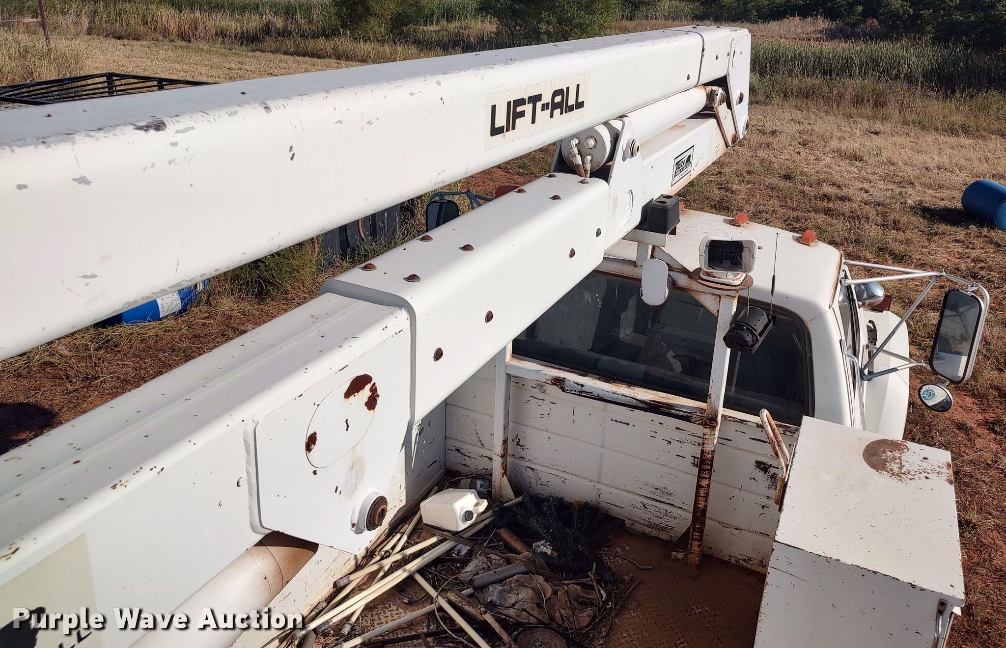 1994 Ford F700 bucket truck. Miles: 196,602 on odometer, Hours: 1,471 on meter, VIN: 1FDNF77J1RVA03982. Engine Displacement: 7.0L, Cylinders: 8, Fuel type: Gas. Transmission Manual, Speed: 5. Chassis Four wheel drive, Axles: Single, Suspension: Spring, Brakes: Air, PTO, GVWR: 24,000 lbs. Interior AC, Heat. Features Bed 12' x 96" W, Boom 1993 Lift All LAH-27-1S, Serial: 41720793337FB, Boom length: 18', Maximum lift capacity: 350 lbs, Maximum lift height: 37', Boom type: Articulating, Man basket, Boom controls Ground, Platform/ basket.. Tires Size: 11R22.5. Oklahoma title. Title distribution may be delayed up to 30 days from verification of funds. Town of Hennessey. 123 S Main. Hennessey, OK 73742