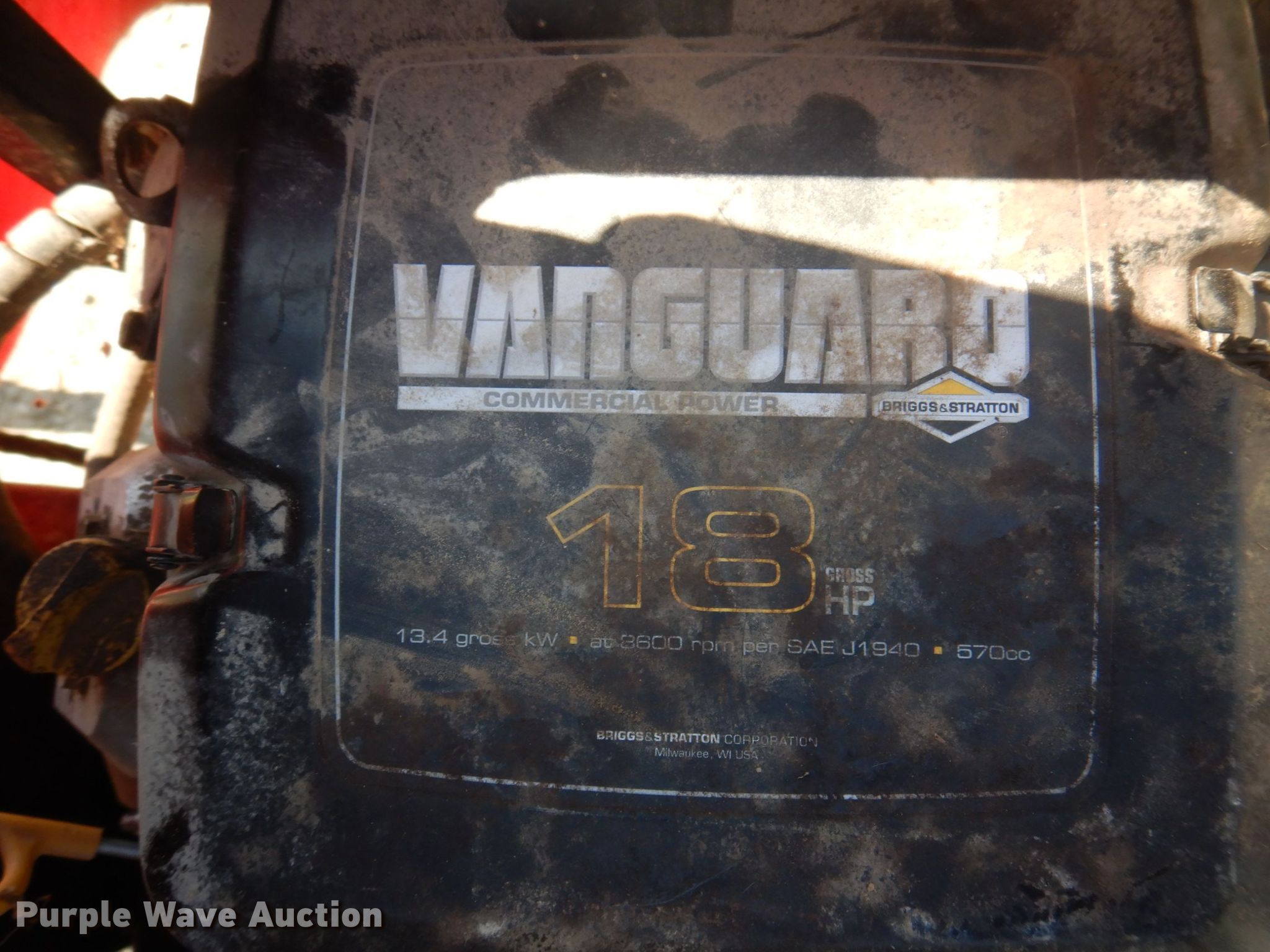 2000 Smithco Super Star 42-000-B bunker rake. Serial: 4328. Engine Vanguard, Displacement: 570 cc, Cylinders: 2, Fuel type: Gas, HP: 18. Features Blade Smithco 42-011, Width: 40", Serial: J326-011, Rake arms Hydraulic lift. Notes Dead battery. City of La Plata. La Plata, MO 63549