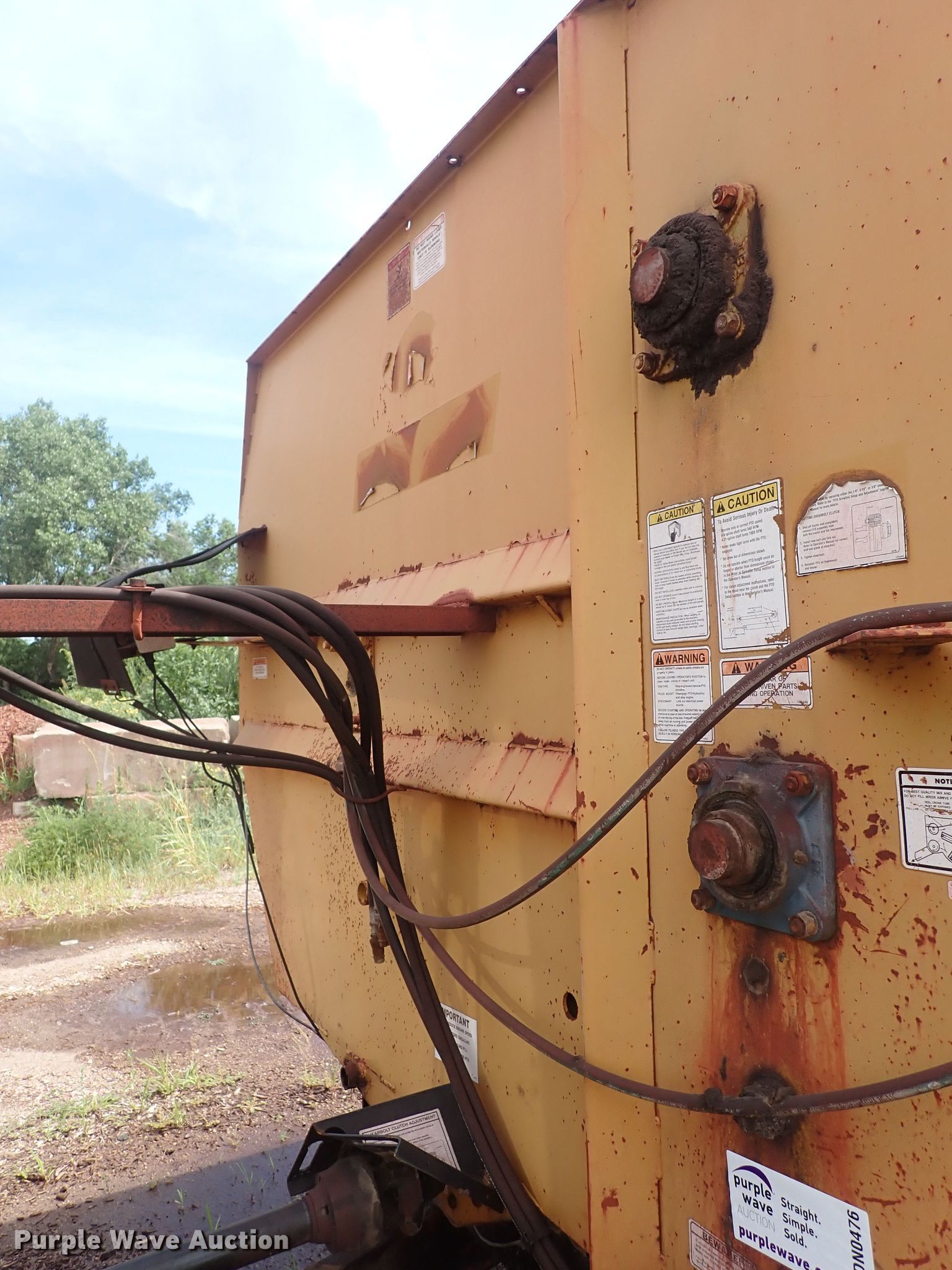 Purple Wave is selling a used Feed Mixer or Bale Processor in Kansas. This item is a Knight Reel-Auggie 3700 feed mixer with the following: PTO: 540, Discharge: Side, Width: 43", Chute: Hydraulic, Door: Hydraulic