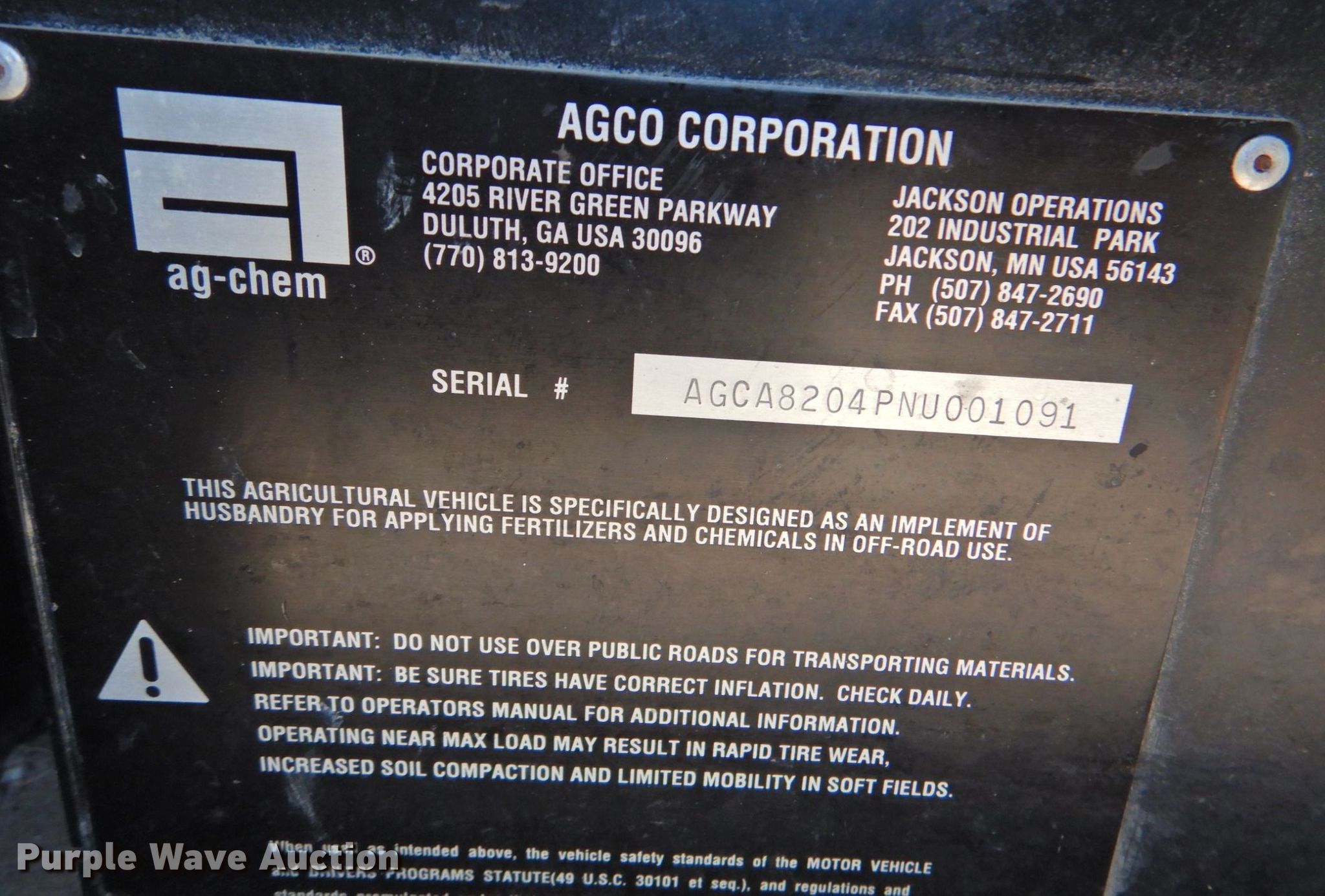 Terra Gator 8204 applicator. Hours: Unknown, VIN: AGCA8204PNU001091. Engine Caterpillar C9 Acert, Displacement: 8.8L, Cylinders: 6, Fuel type: Diesel. Transmission Model: Terra Shift, Powershift, 11F - 4R. Operators station AC, Heat. Features Boom Width: 70', Sections: 5, Hydraulic boom fold, Dry fertilizer spreader bed Agco Airman precision 2, Roll tarp. Tires Front: 48x31.00-20, Rear: 1000/50R25, Flotation tires. Notes Unknown operating condition of spreader Hoses disconnected, Non-operational hour meter. MFA Ag Choice. Osage City, KS 66523