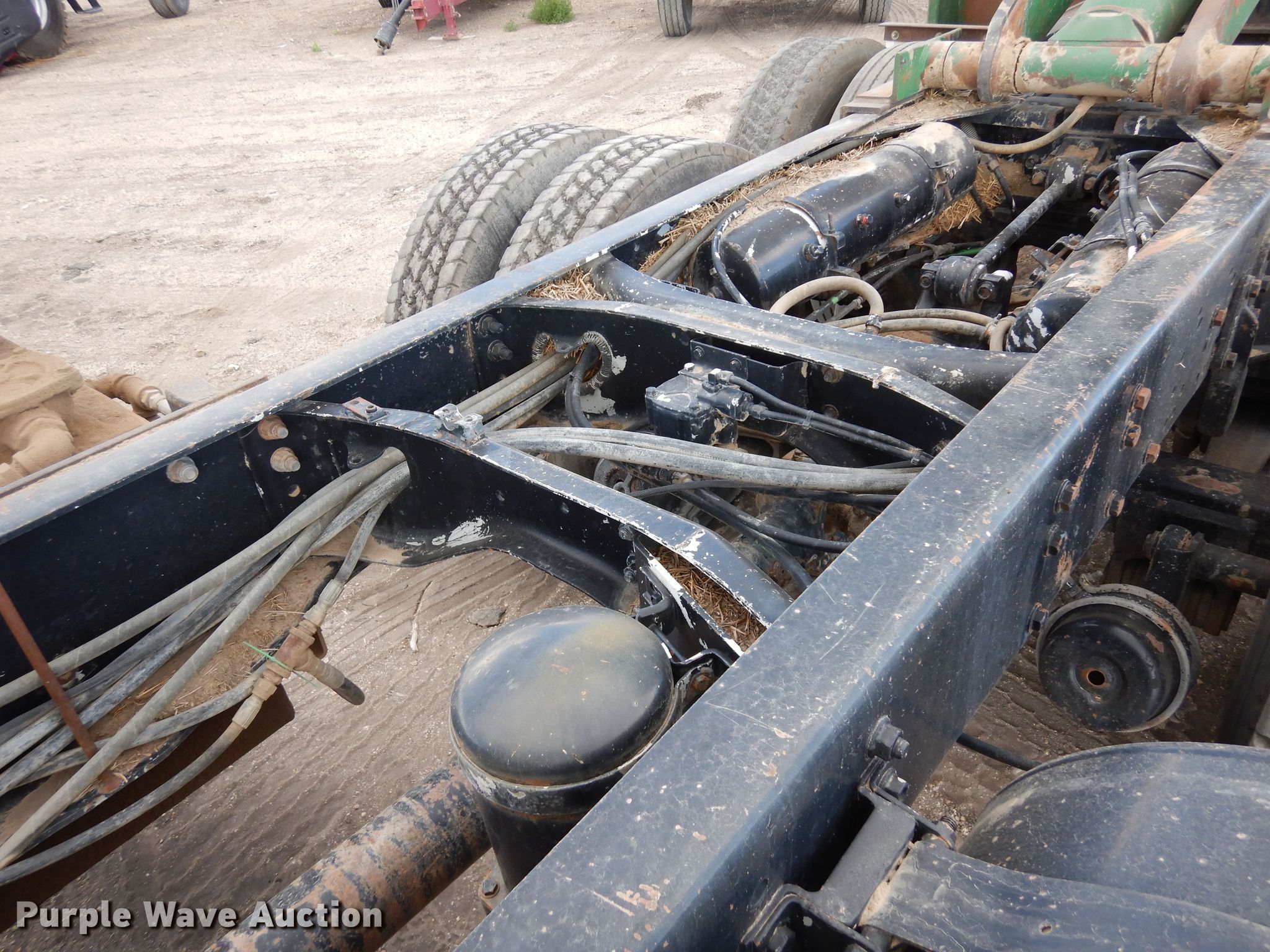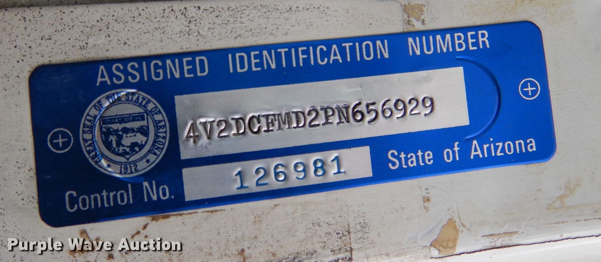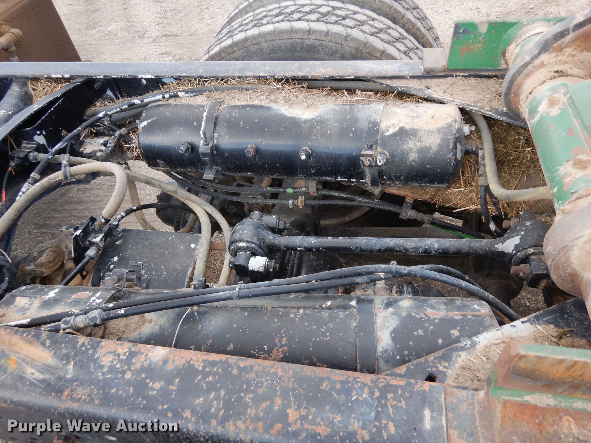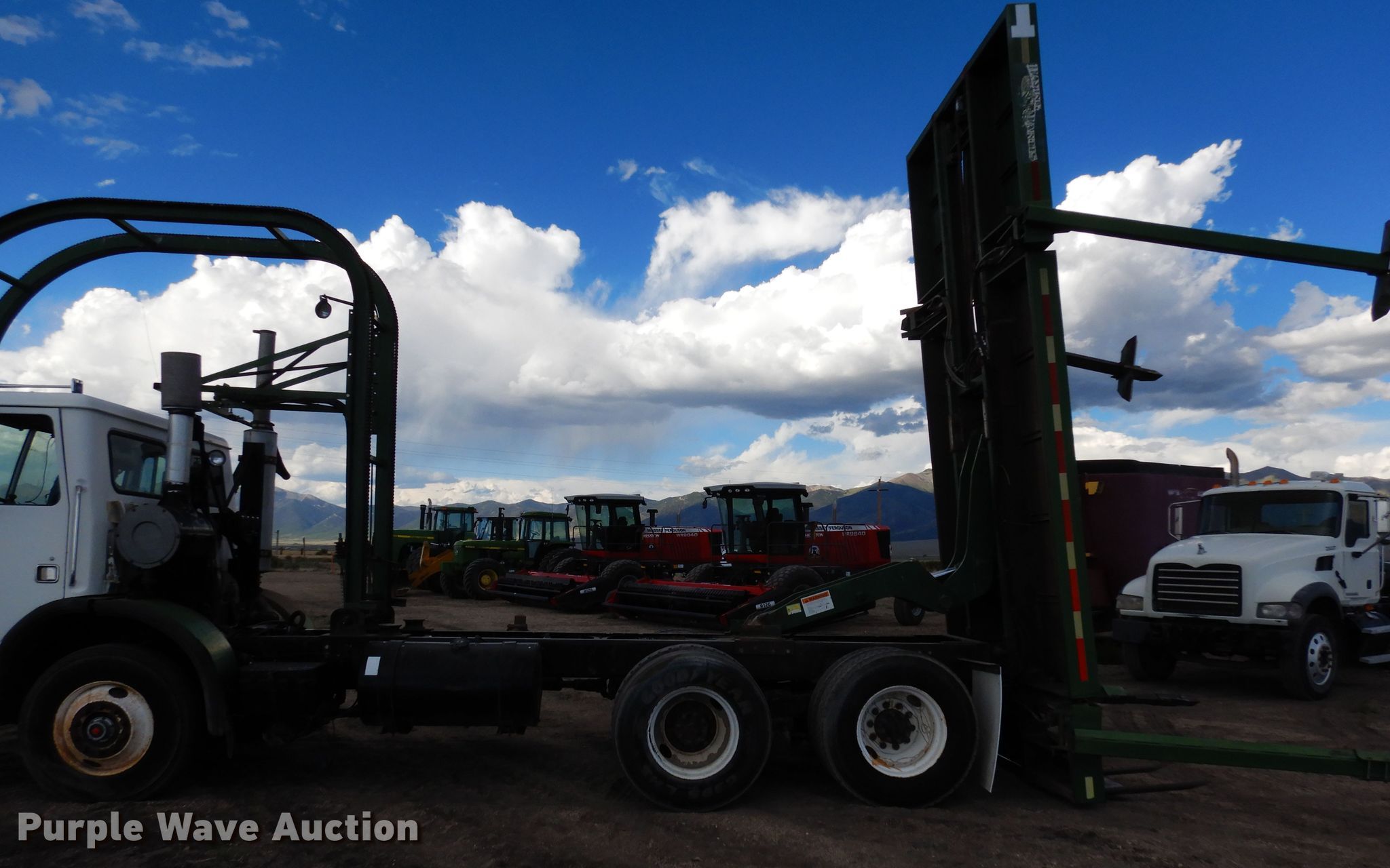 White GMC bale stacker. Miles: 224,700 on odometer, Hours: 3,663 on meter, VIN: 4V2DCFMD2PN656929. Engine Cummins, Cylinders: 6, Fuel type: Diesel. Transmission Automatic. Features Hydraulic tilt bed Haying Mantis, 17.5'L x 97"W, Hydraulic bale lift. Chassis Suspension: Spring over walking beam, Brakes: Air, Wheelbase: 175", Tires , Size: 11R22.5. Notes Cracked windshield, Cracked rear spring. Colorado title. Title has a lien that will be released following the close of the auction. Title distribution may be delayed up to 30 days from verification of funds. Cougar Run Inc... 59180 County Road AA. Moffat, CO 81143