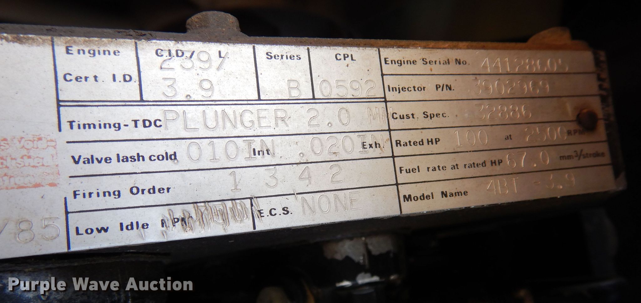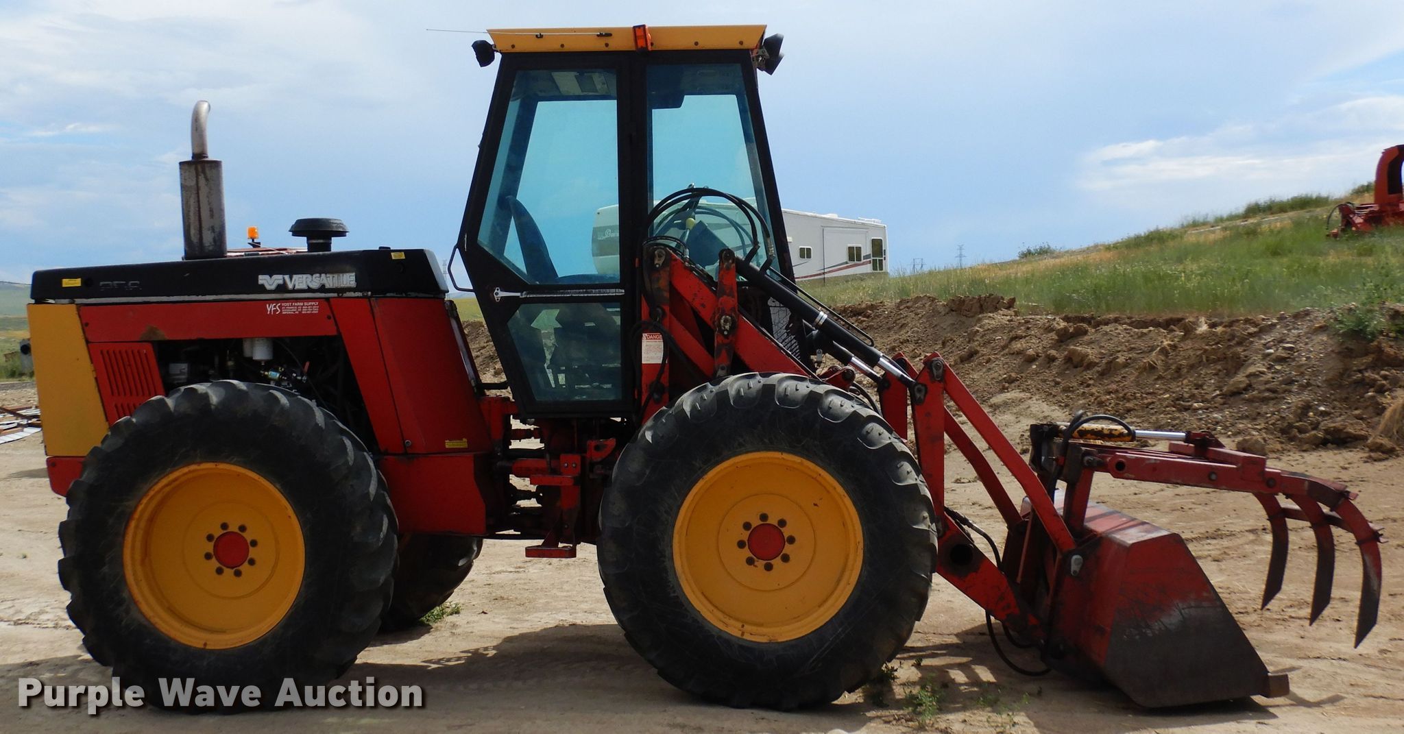 1985 Versatile 256 bi-directional tractor. Hours: 4,542 on meter, Serial: 253744. Engine Cummins, Serial: 44128605, Displacement: 3.9L, Cylinders: 4, Fuel type: Diesel, HP: 100. Transmission Hydrostatic. Operators station AC, Heat. Features PTO: 540, Three point, Hydraulic remote sets Front: 2, Rear: 3, Loader Versatile 2360, Controls: Two lever, Bucket Width: 94".. Tires Size: 16.9-28. Notes Unknown operating condition of AC. 350 Glaab Lane. Craig, CO 81625