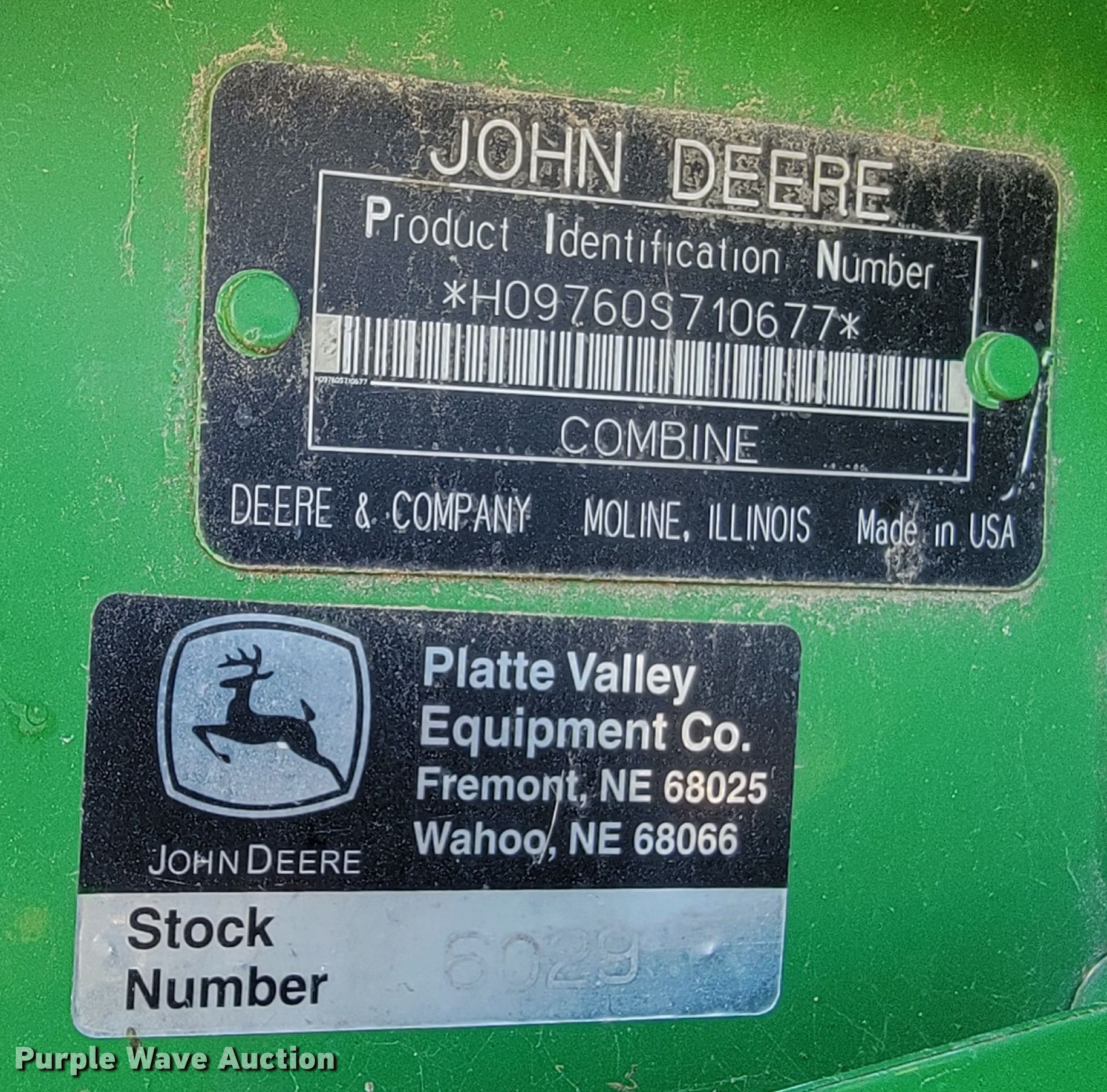Purple Wave is selling a used Combine in Nebraska. This item is a 2005 John Deere 9760 STS combine with the following: Engine hours: 3,706 on meter, Separator hours: 2,250 on meter, Serial: H09760S710677