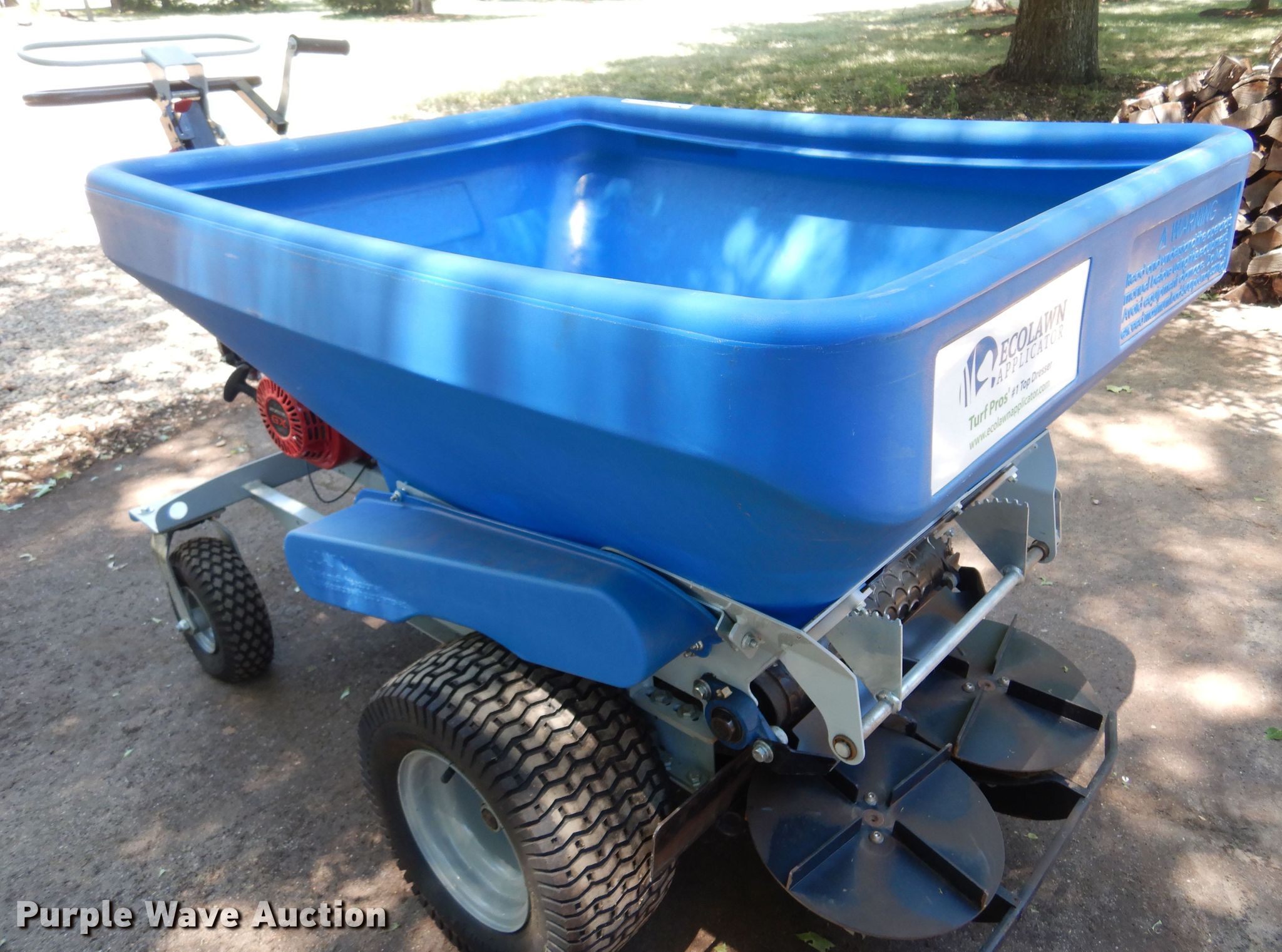 Purple Wave is selling a used Lawn and Garden in Kansas. This item is a Ecolawn ECO250 top dresser spreader with the following: Honda GX160 engine, 44" x 34" hopper, 14" conveyor, 4.10/3.50-4 front tires, 16x7.50-8 rear tires, Serial: 1942
