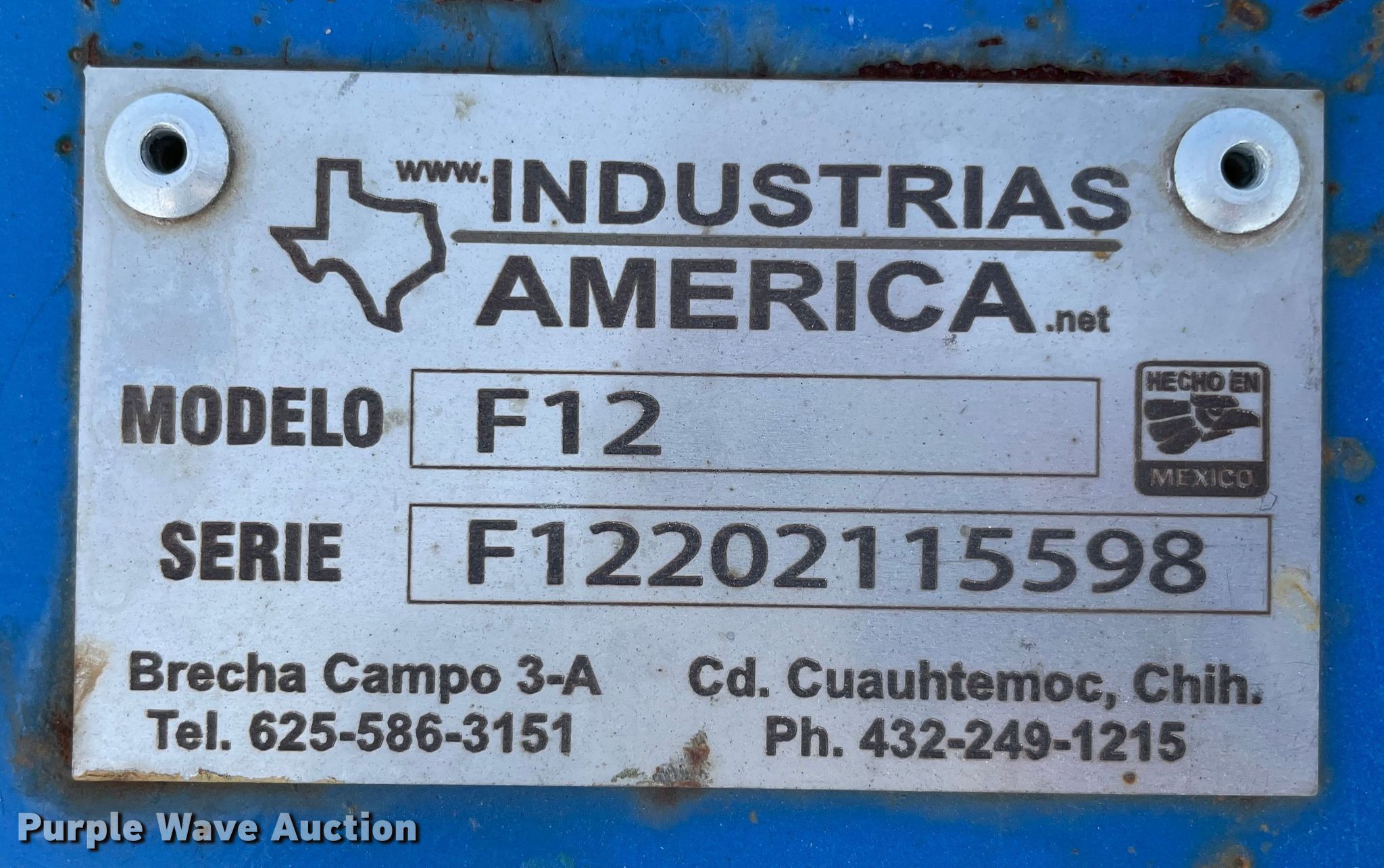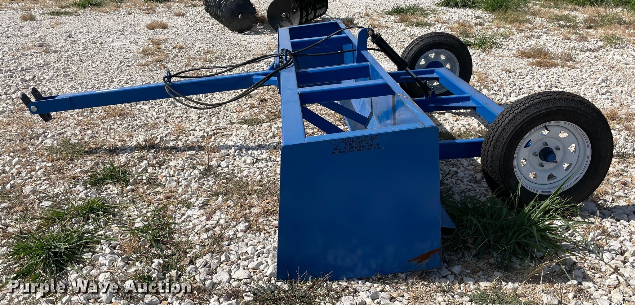 Purple Wave is selling a used Pull Type Scraper in Texas. This item is a Industrias America F12 box blade with the following: Width: 12', Hydraulic lift, 205/75D15 tires, Serial: F12202115598