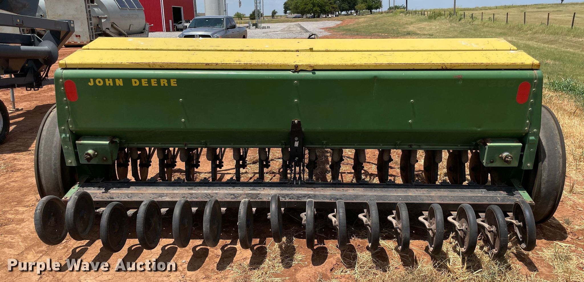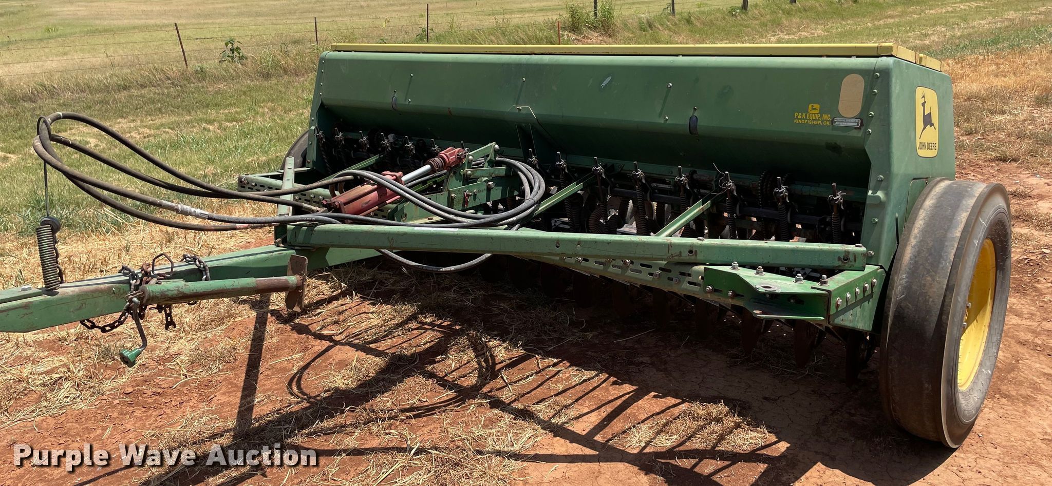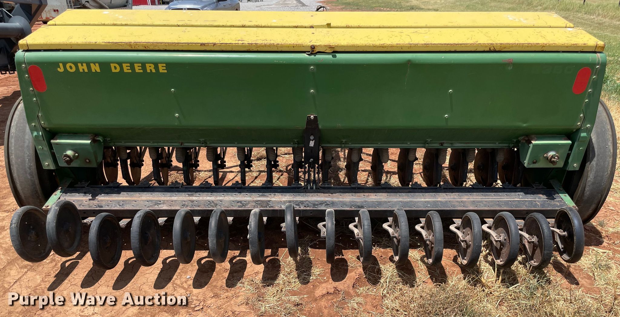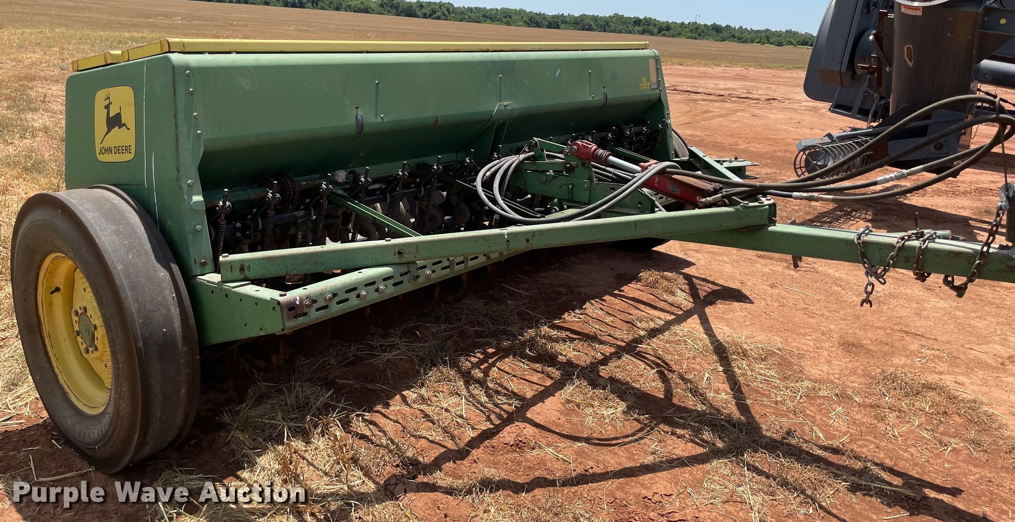 Purple Wave is selling a used Grain Drill or Seeder in Oklahoma. This item is a John Deere 8350 grain drill with the following: Width: 11', Row units: 16, Row spacing: 8", Serial: 001749N
