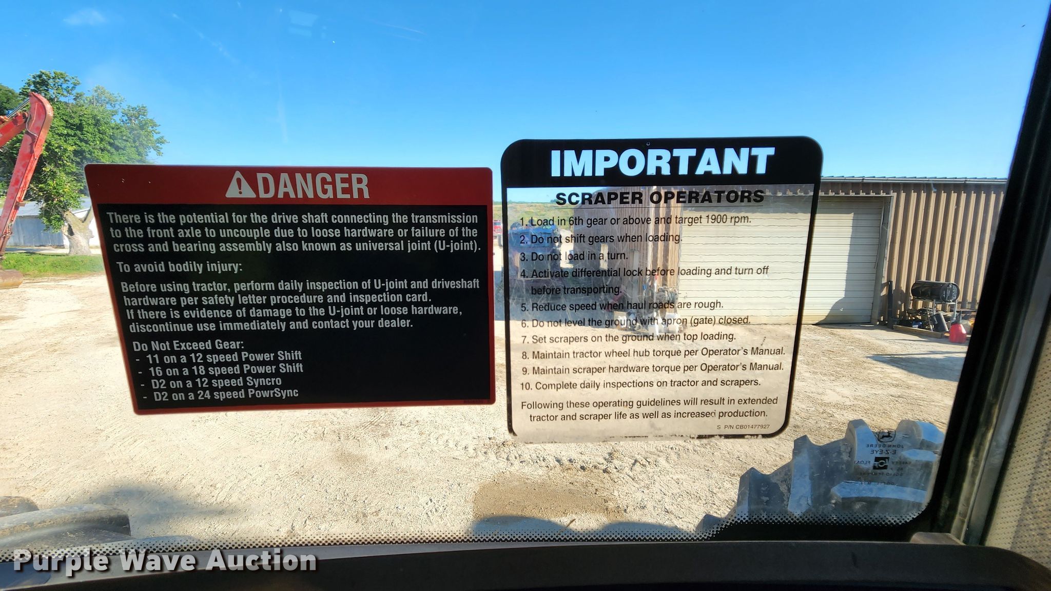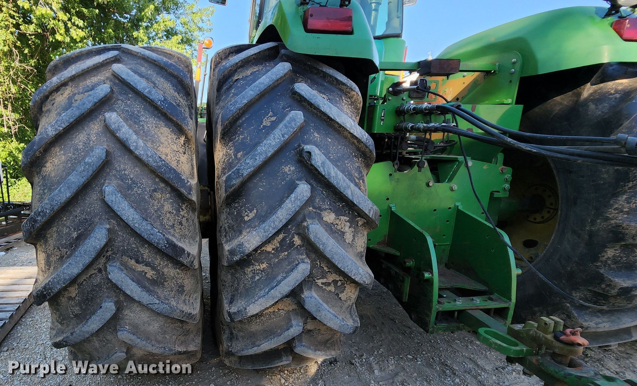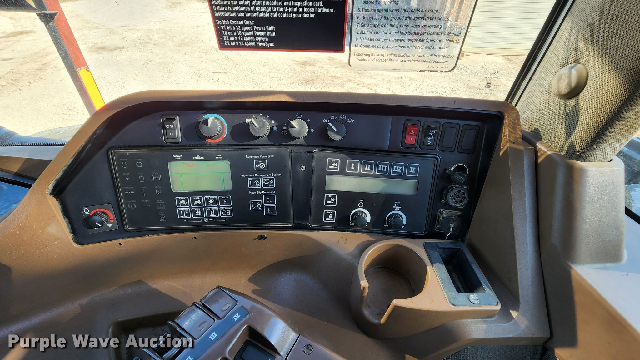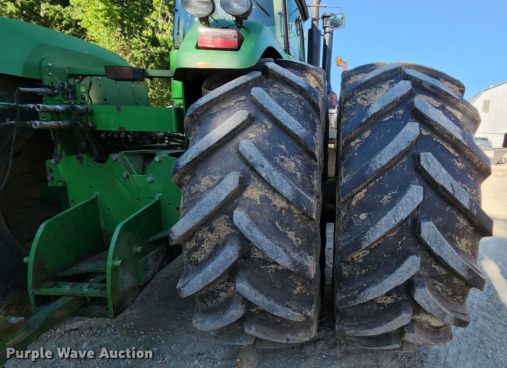 2006 John Deere 9520 Scraper Special 4WD tractor. Hours: 3,263 on meter, Serial: RW9520E041074. Engine John Deere 6125HRW17AB, Displacement: 12.5L, Cylinders: 6, Fuel type: Diesel. Transmission Powershift, 18F - 6R, Differential lock. Operators station AC, Heat. Features Seven pin outlet, ISOBUS outlet, Hydraulic remote sets Rear: 4. Tires Size: 710/70R42, Duals. Notes Unattached wheel weights included, Tillage attachment not included, Intermittent transmission code issues Transmission will not engage in some gears when code is active, ACU code: John Deere active seat on. Herter Excavating. Golden Eagle, IL 62036