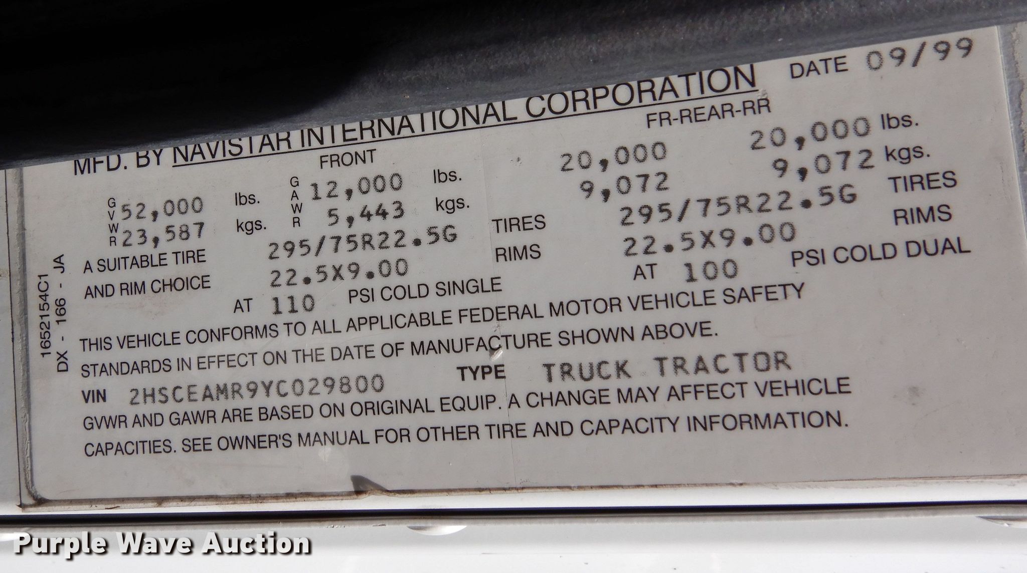 Purple Wave is selling a used Truck Tractor in Utah. This item is a 2000 International 9200i semi truck with the following: Miles: 116,520 on odometer, VIN: 2HSCEAMR9YC029800