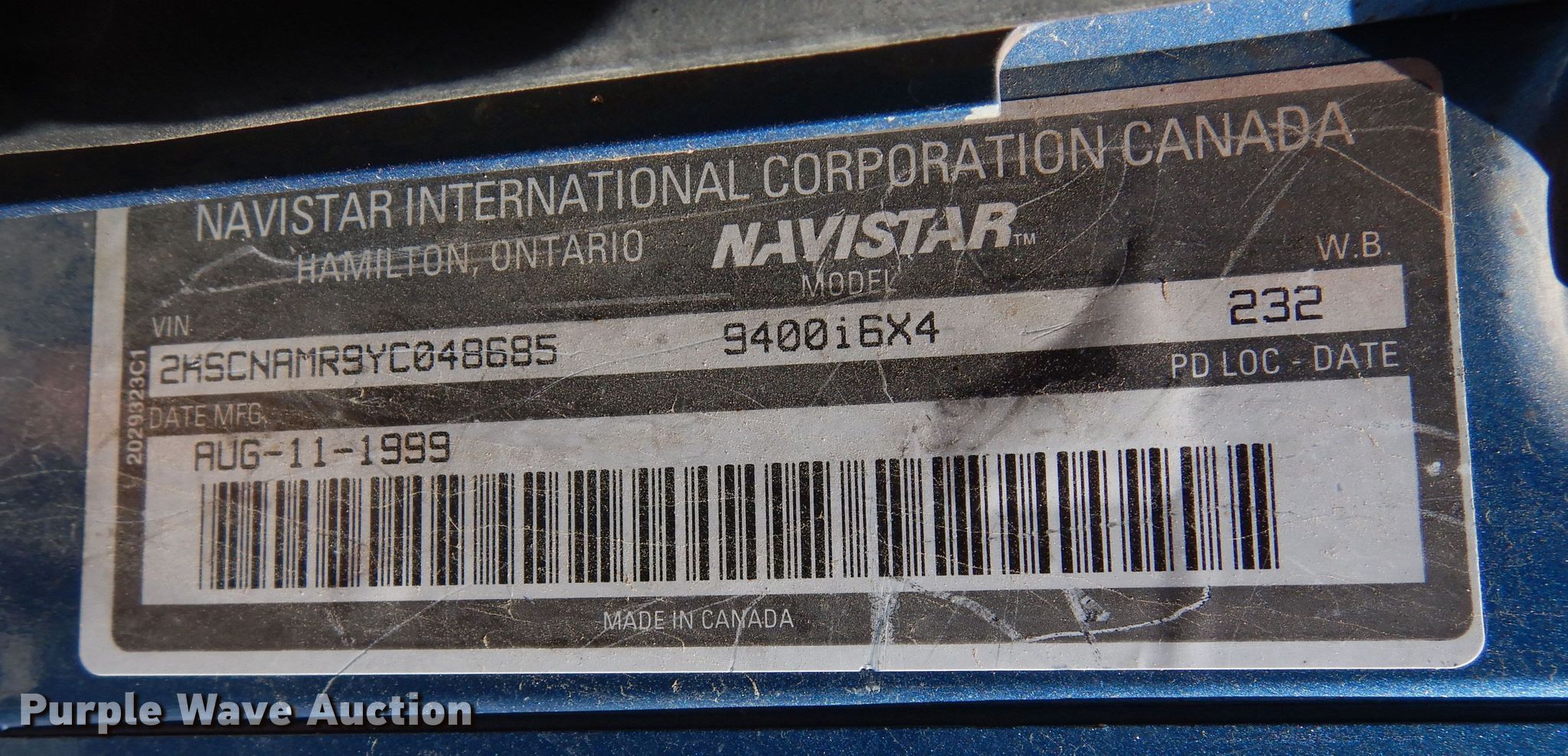 Purple Wave is selling a used Truck Tractor in Utah. This item is a 2000 International 9400i semi truck with the following: Miles: 411,680 on odometer, VIN: 2HSCNAMR9YC048685