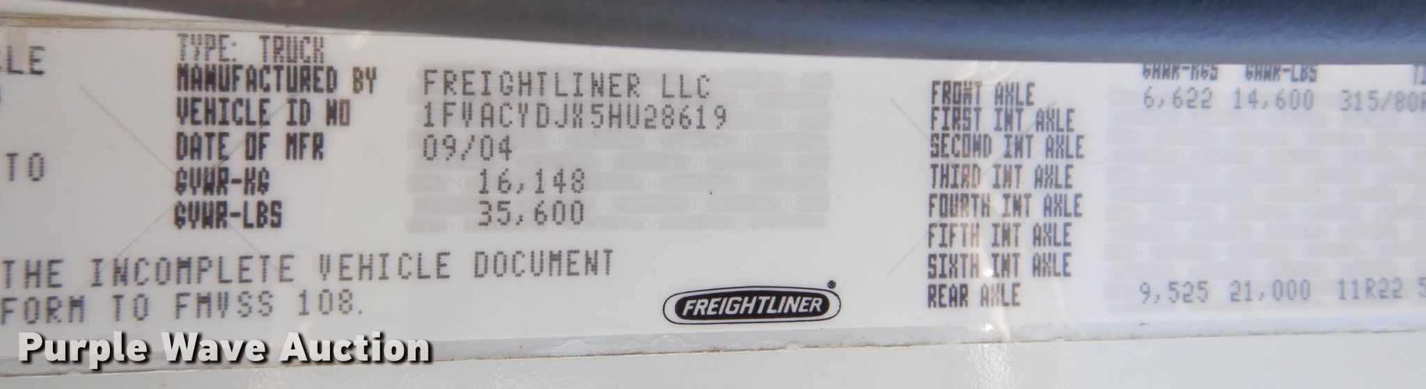 - VIN: 1FVACYDJX5HU28619