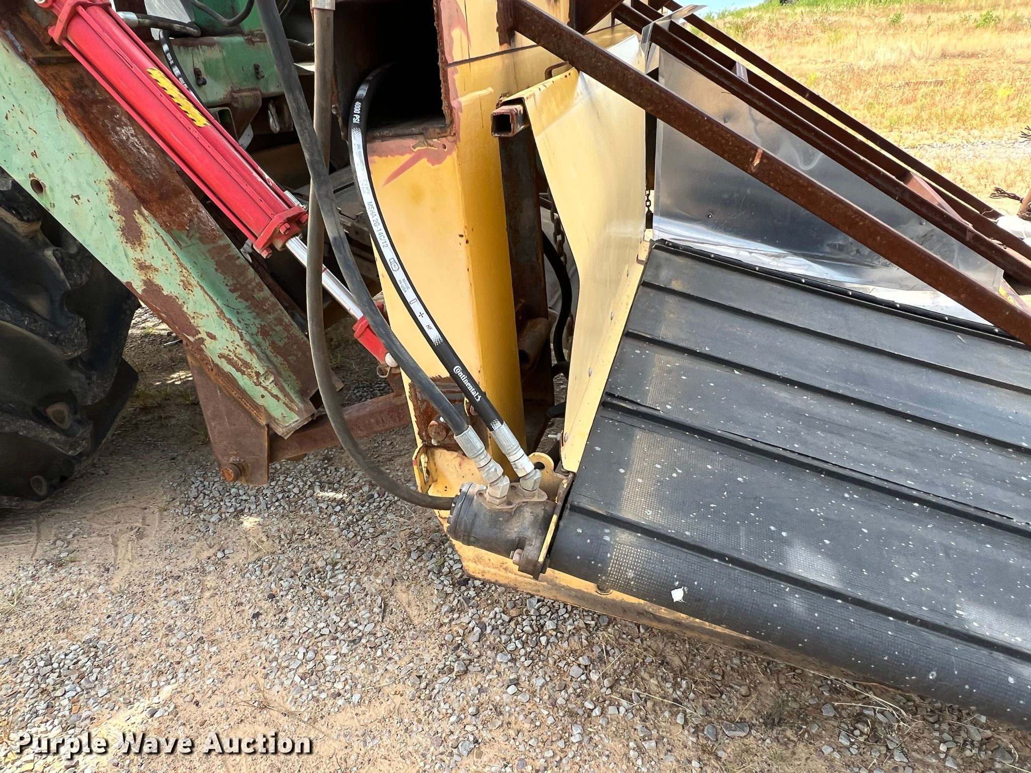 1986 John Deere 9950 hemp harvester. Hours: 5,825 on meter, Serial: N09950X000207. Engine John Deere, Cylinders: 6, Fuel type: Diesel. Transmission Hydrostatic, 3F-1R. Operators station AC, Heat. Features Header New Holland, Width: 137" , Spacing: 5' , Converted for hemp, Conveyor 21' L x 3' W. Tires Front: 24.5-32, Rear: 14.9-24. Notes Non-operational hydraulic lift, Unit has been modified to harvest hemp. Arkoma, OK 74901