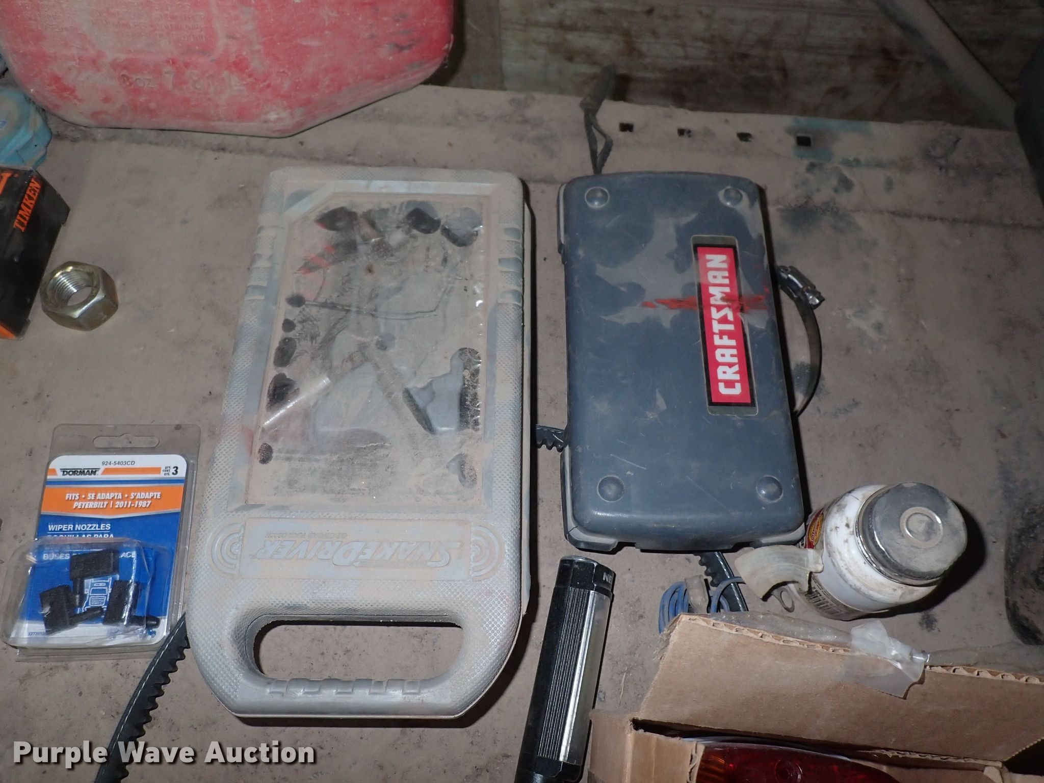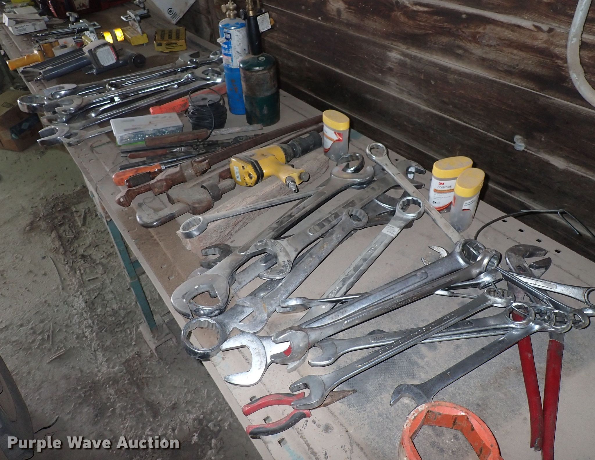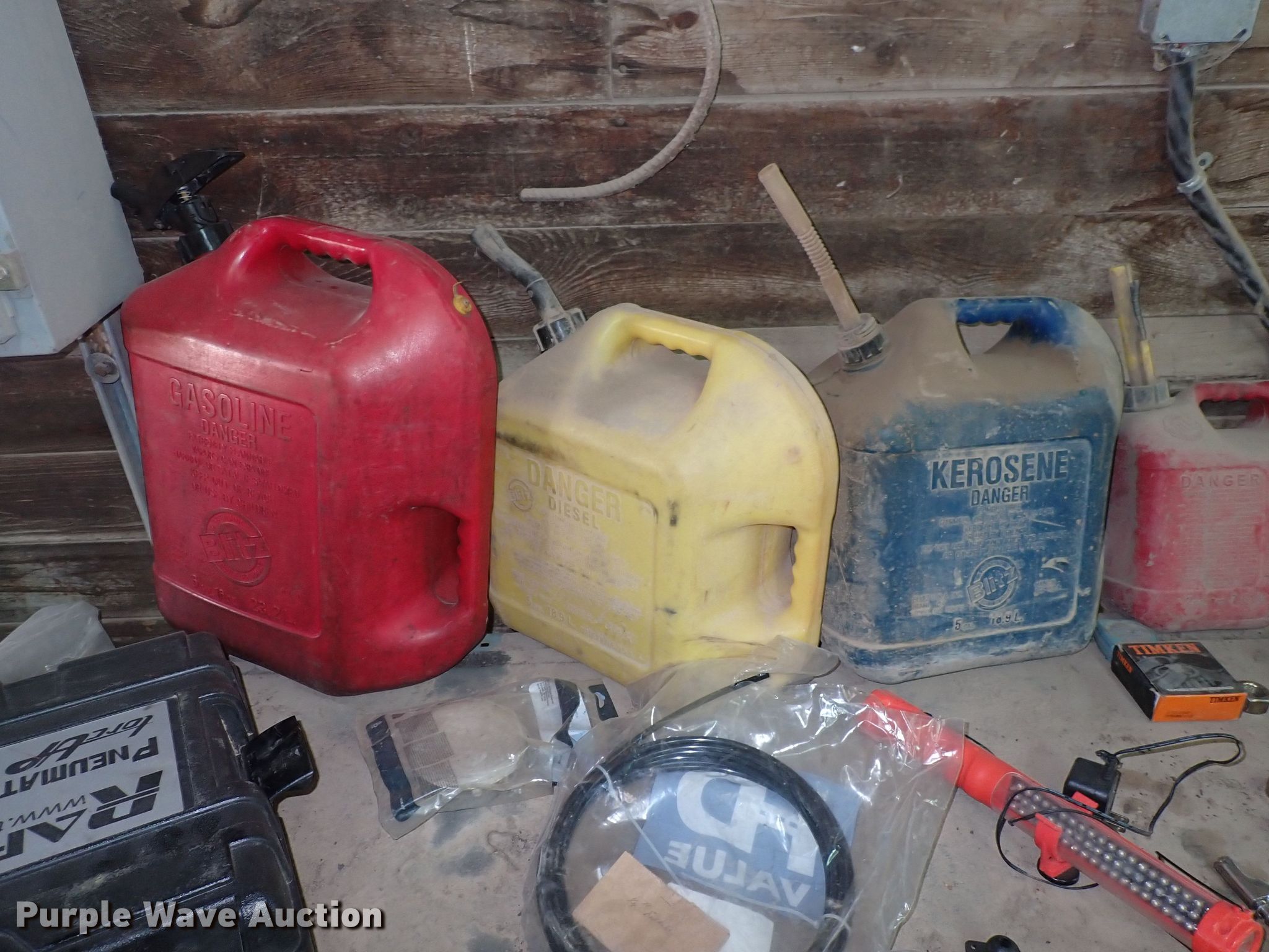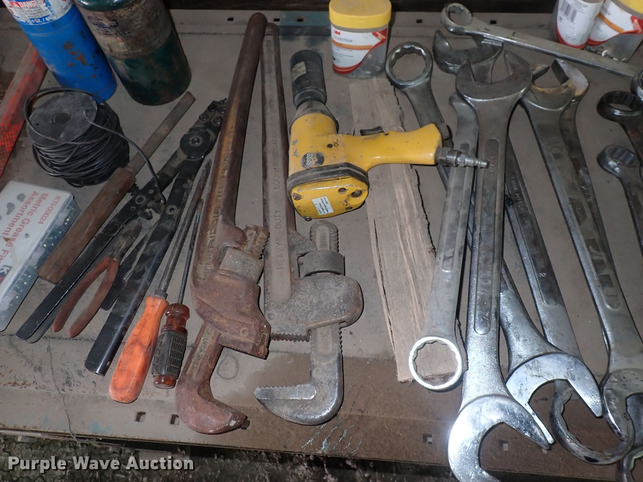 Purple Wave is selling a used Tools in Kansas. This item is a Tools with the following: Wrenches, Chainsaw engines, Toolboxes, Torque machine, Fuel cans, Taper, Heater, Air compressor, Push mower and more