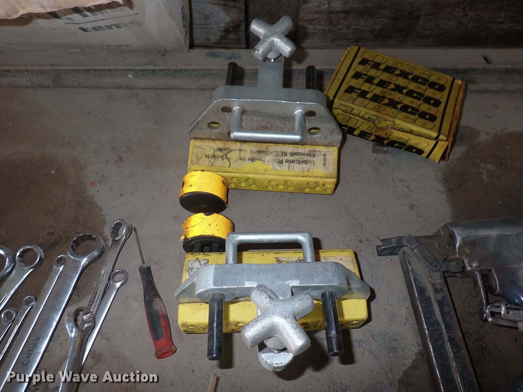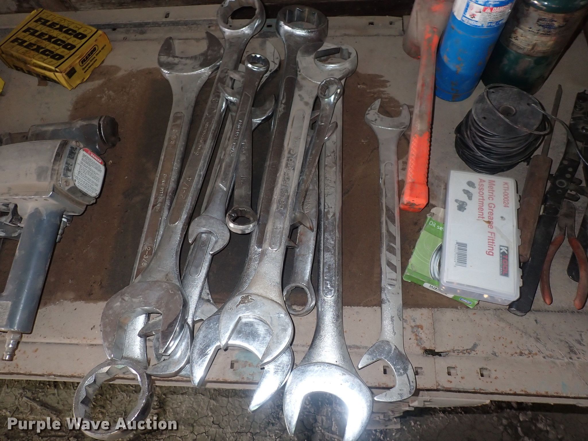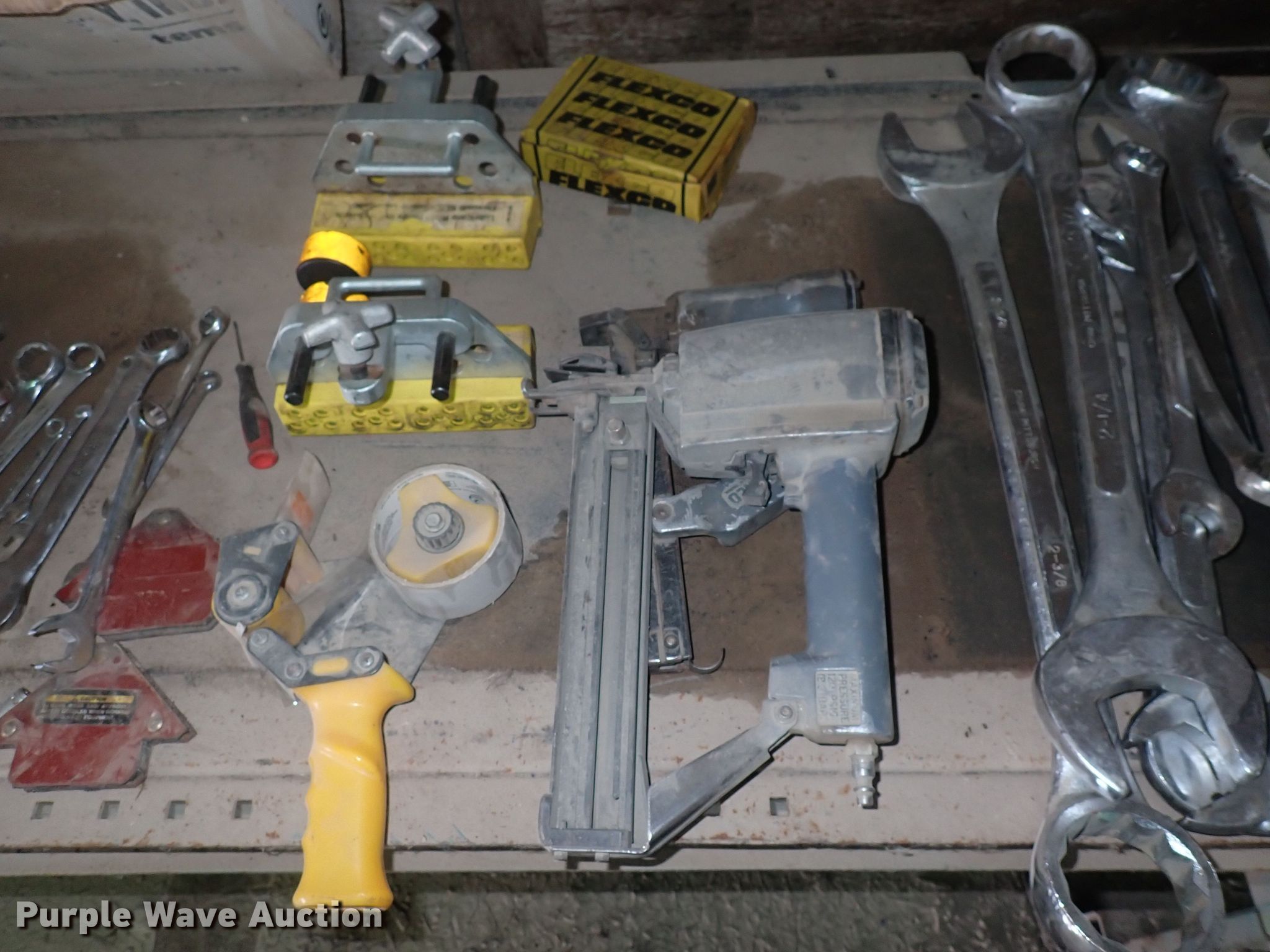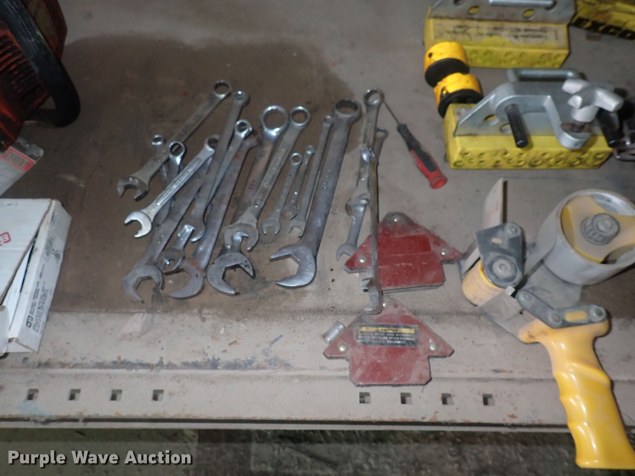 Purple Wave is selling a used Tools in Kansas. This item is a Tools with the following: Wrenches, Chainsaw engines, Toolboxes, Torque machine, Fuel cans, Taper, Heater, Air compressor, Push mower and more