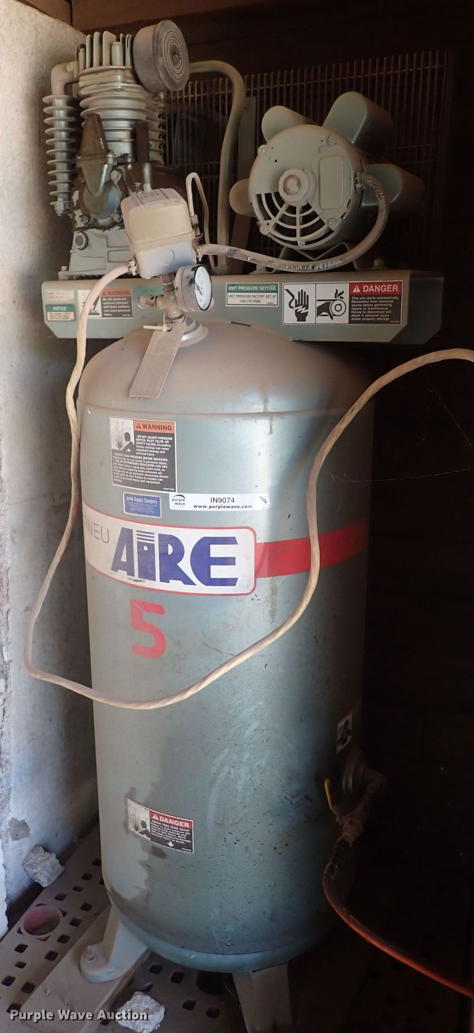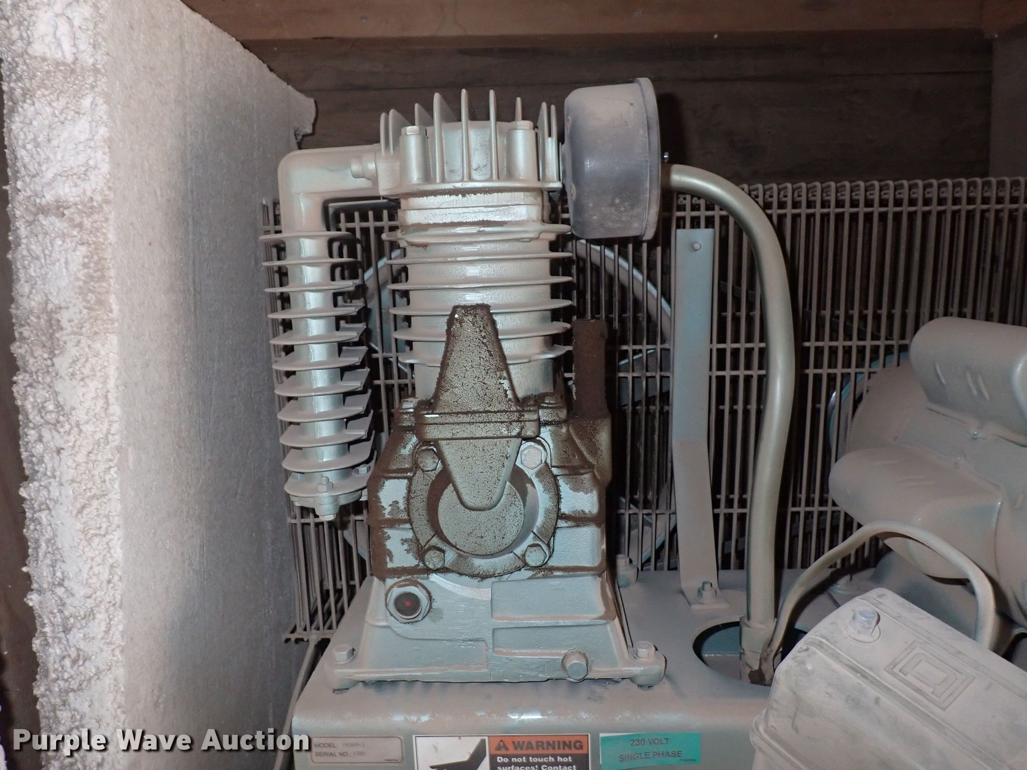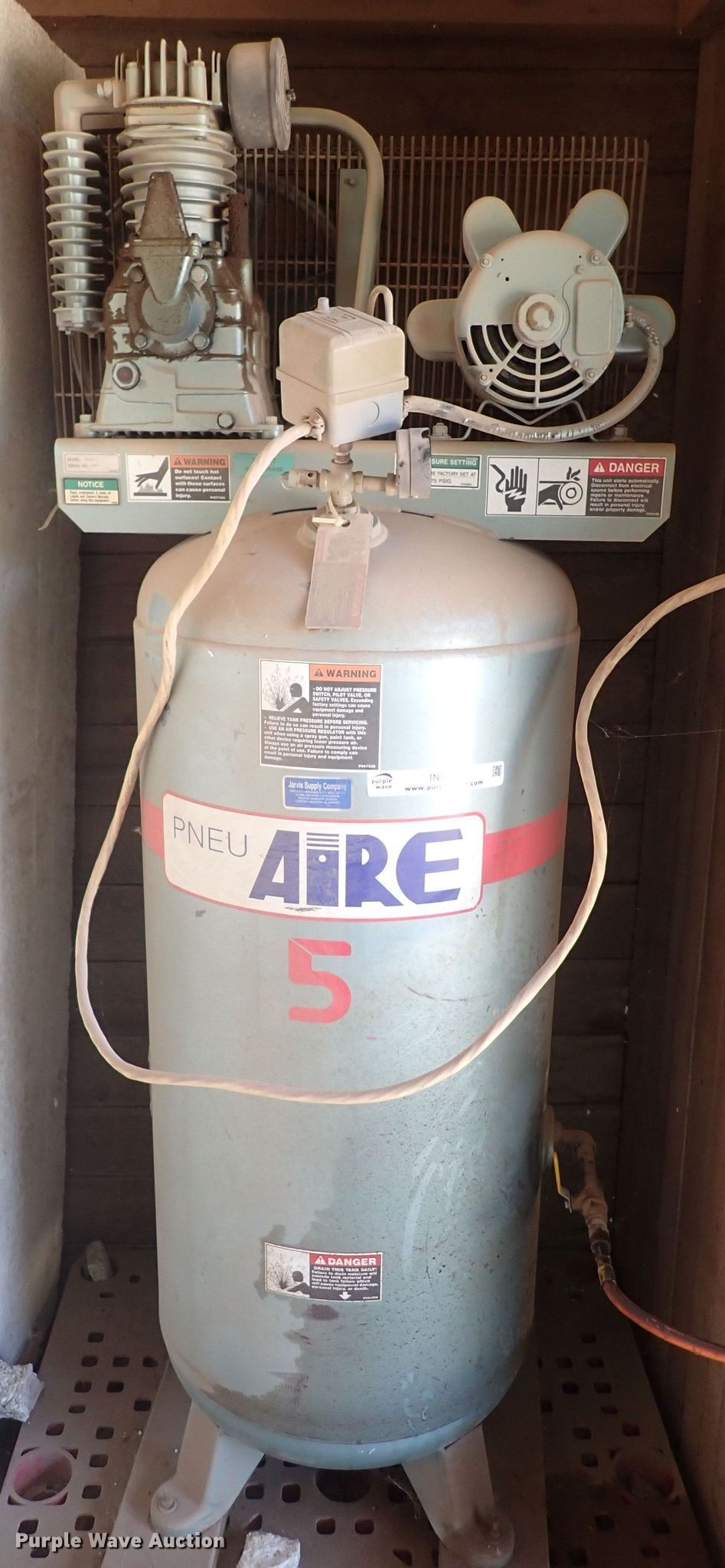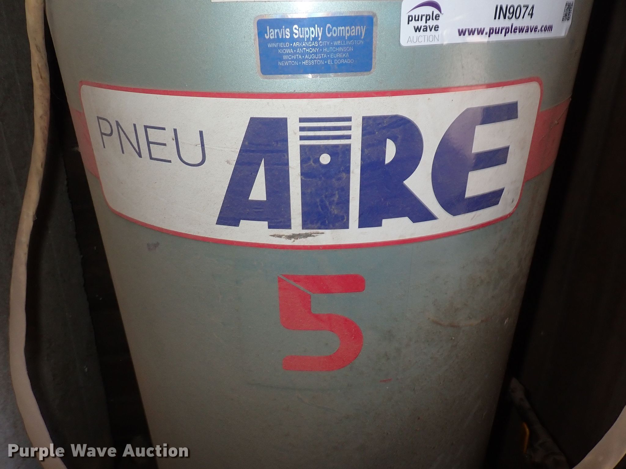 (2) air compressors. PneuAire 5 PA56V-1. Serial: 1580. Electric Motor Volts: 230, Phase: Single. Campbell Hausfeld. Electric Motor Volts: 240. Features PSI: 125, Tank capacity: 60 gallons. Notes Unknown operating condition. Quality Timber Products Inc. 200 South Goddard Road. Goddard, KS 67052