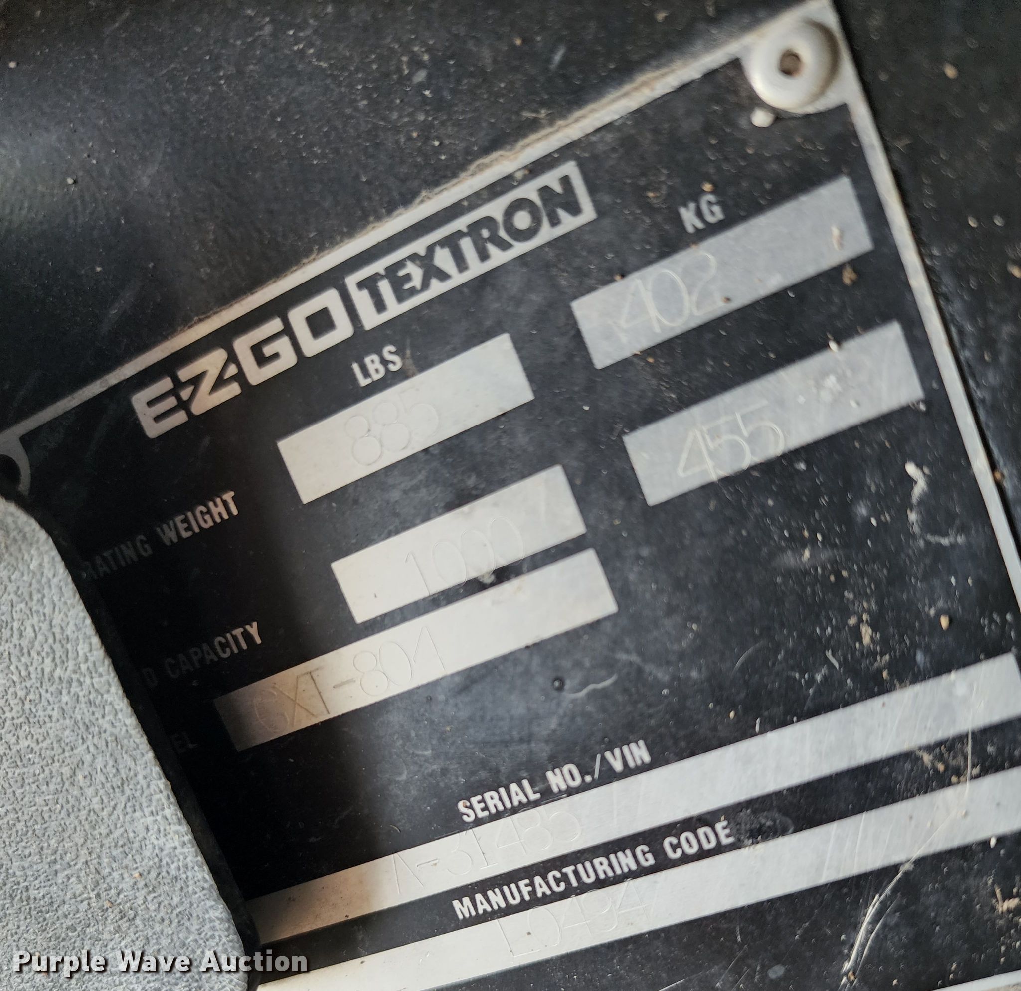 Purple Wave is selling a used Golf Cart in Missouri. This item is a Ez-go GXT-804 golf cart with the following: Serial: A-314857