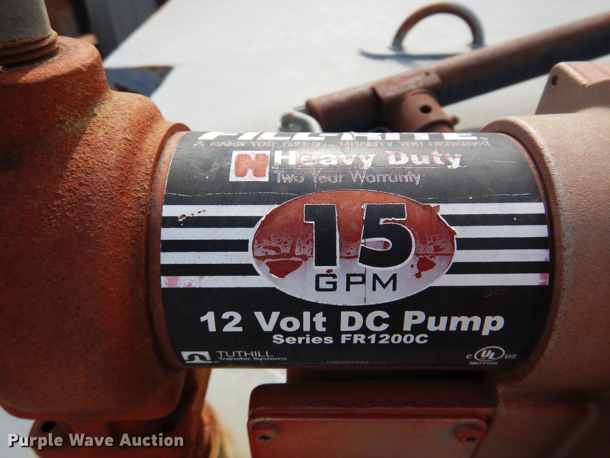 Shop built fuel trailer. Dimensions. Overall: 12' L x 72" W. Features Tank type: Steel Capacity: Approx. 400 gallons, Fill-Rite pump Volts: 12, GPM: 15. Chassis Ball hitch: 2", Landing gear: Single, Brakes: Electric. Tires Steel wheels, Size: 11L-15. Spring Farms. Waukomis, OK 73773