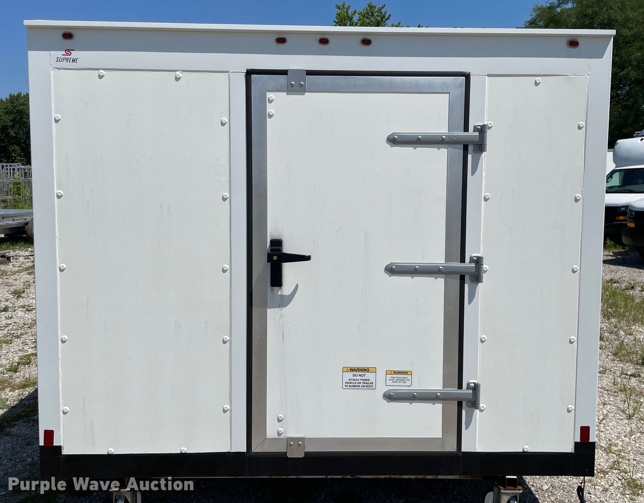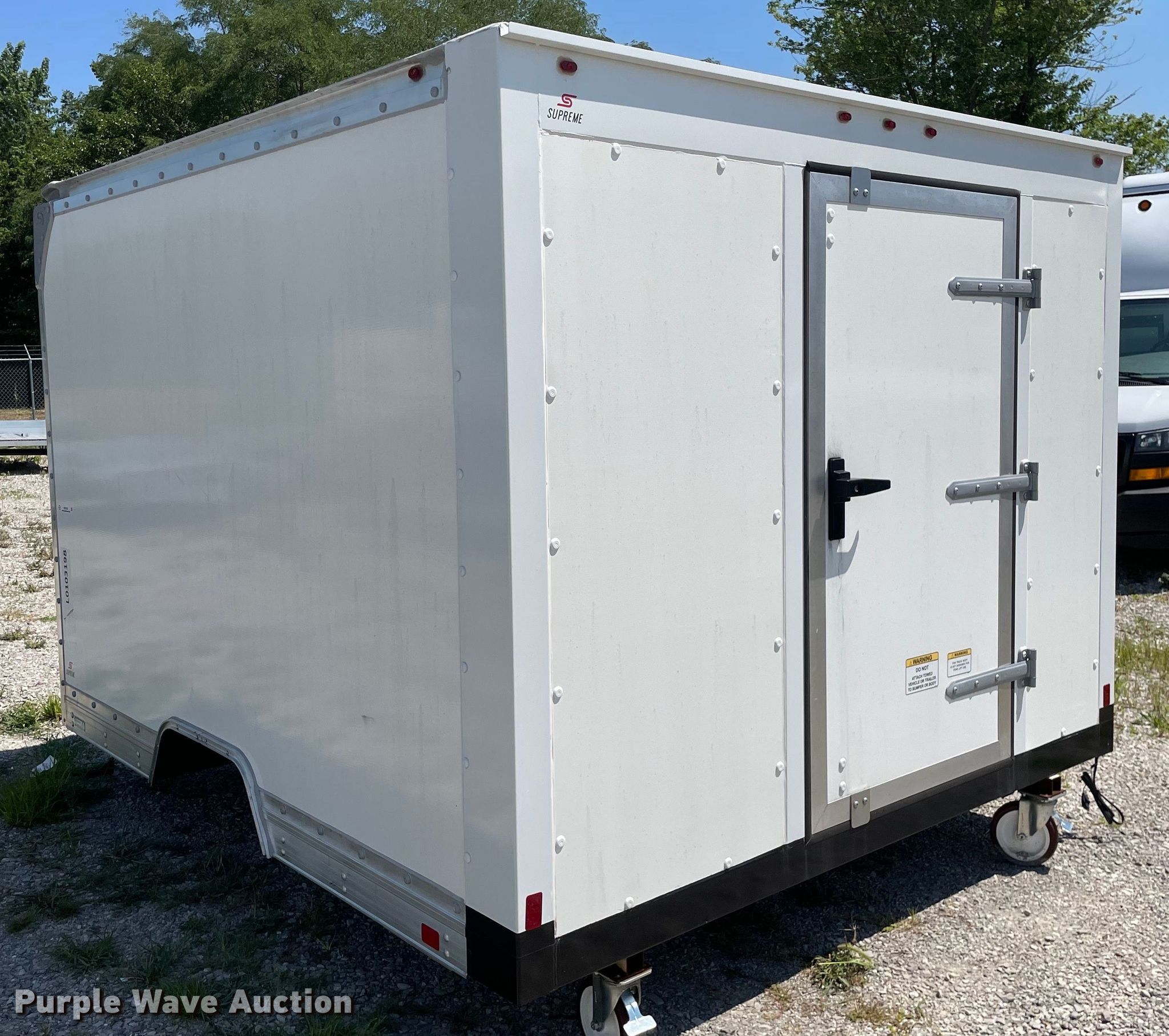 2021 Supreme box bed. Serial: L0103198. Features 10' L x 96" W x 79"H, Wood floor. Notes Unused , Fits 2021 Ford F550 trucks, Wheeled cart not included. Team Fenex. 610 East Illinois Avenue. Sandoval, IL 62882