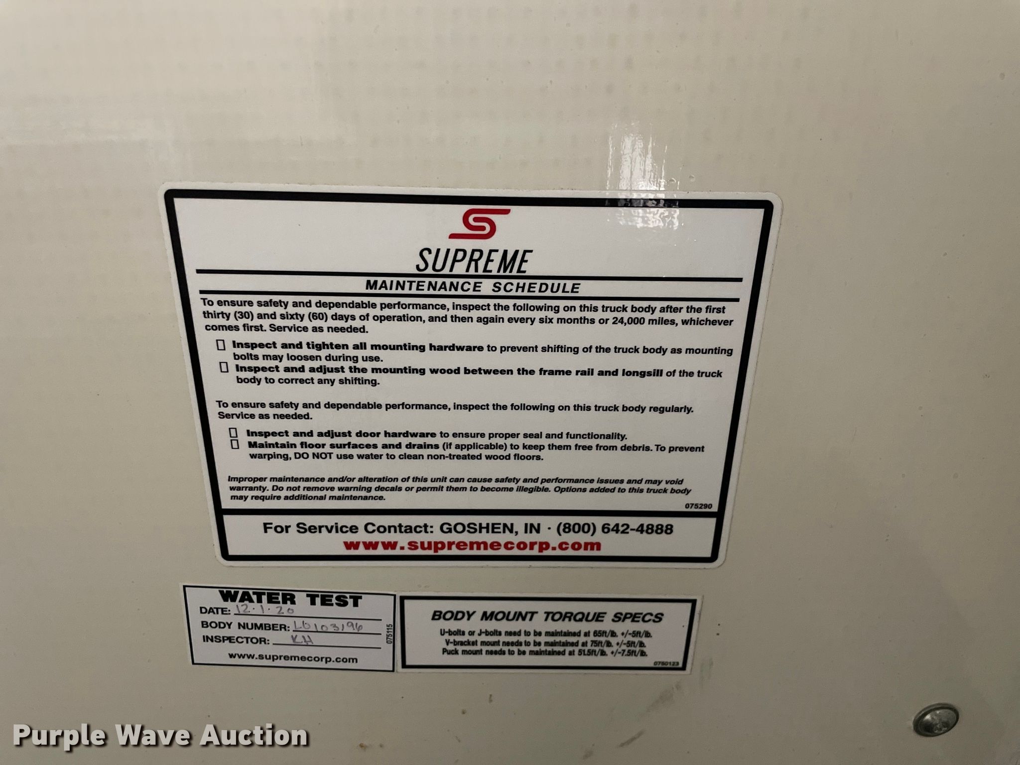 Purple Wave is selling a used Truck Part and Attach. in Illinois. This item is a 2021 Supreme box bed with the following: Serial: L0103196