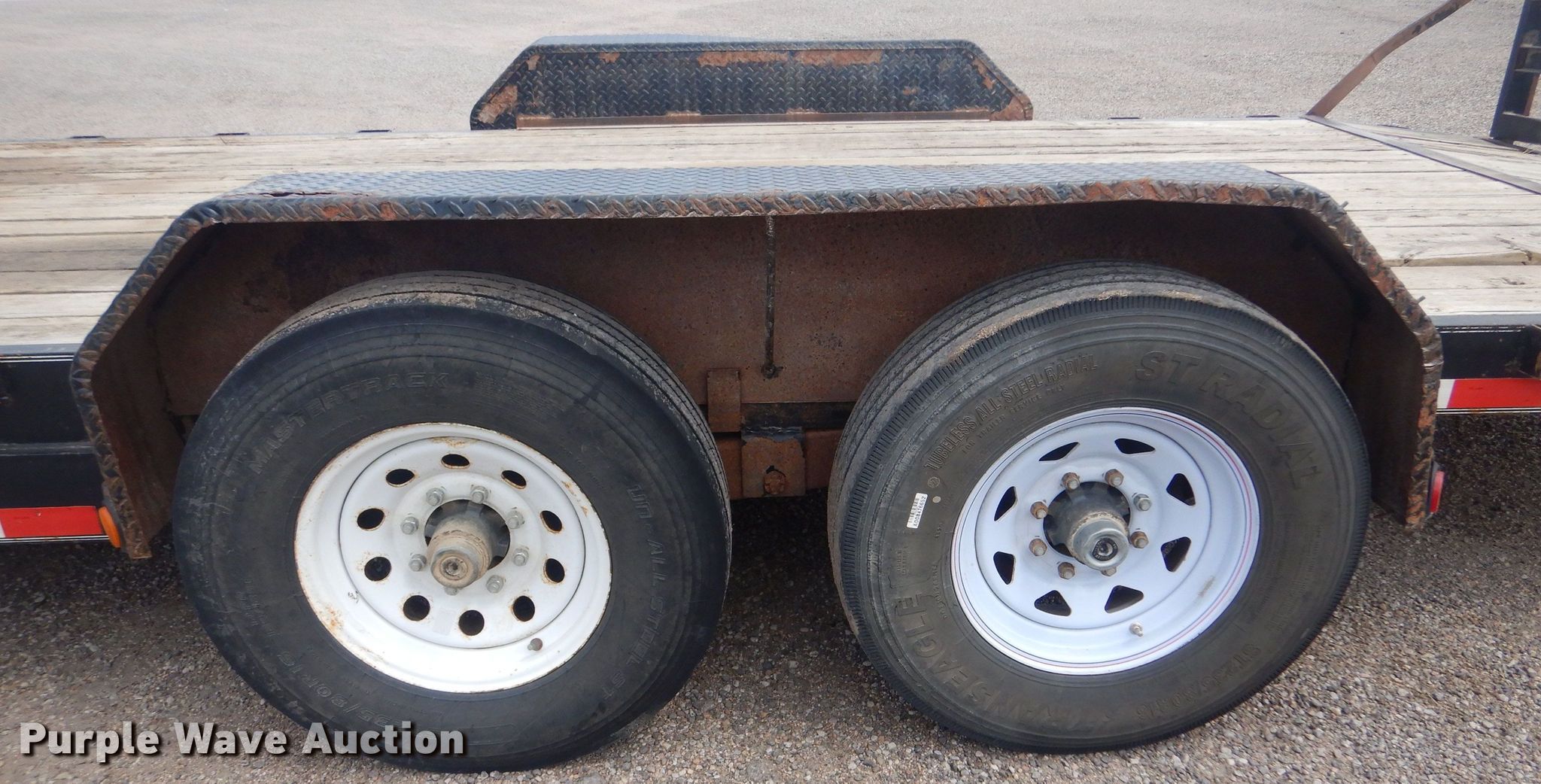 2011 PJ Carhaul equipment trailer. VIN: 4P5CC2024B1152898. Dimensions Overall: 26' L x 102" W, Deck: 18' L x 83" W, Deck height: 25", Tail length: 24", Ramps: Manual Length: 60". Features Deck type: Wood. Chassis Hitch: Pintle, Landing gear: Single, Suspension: Spring, Brakes: Electric, Axles: Tandem. Tires Steel wheels, Size: 235/80R16. Kansas title. Phillipsburg, KS 67661