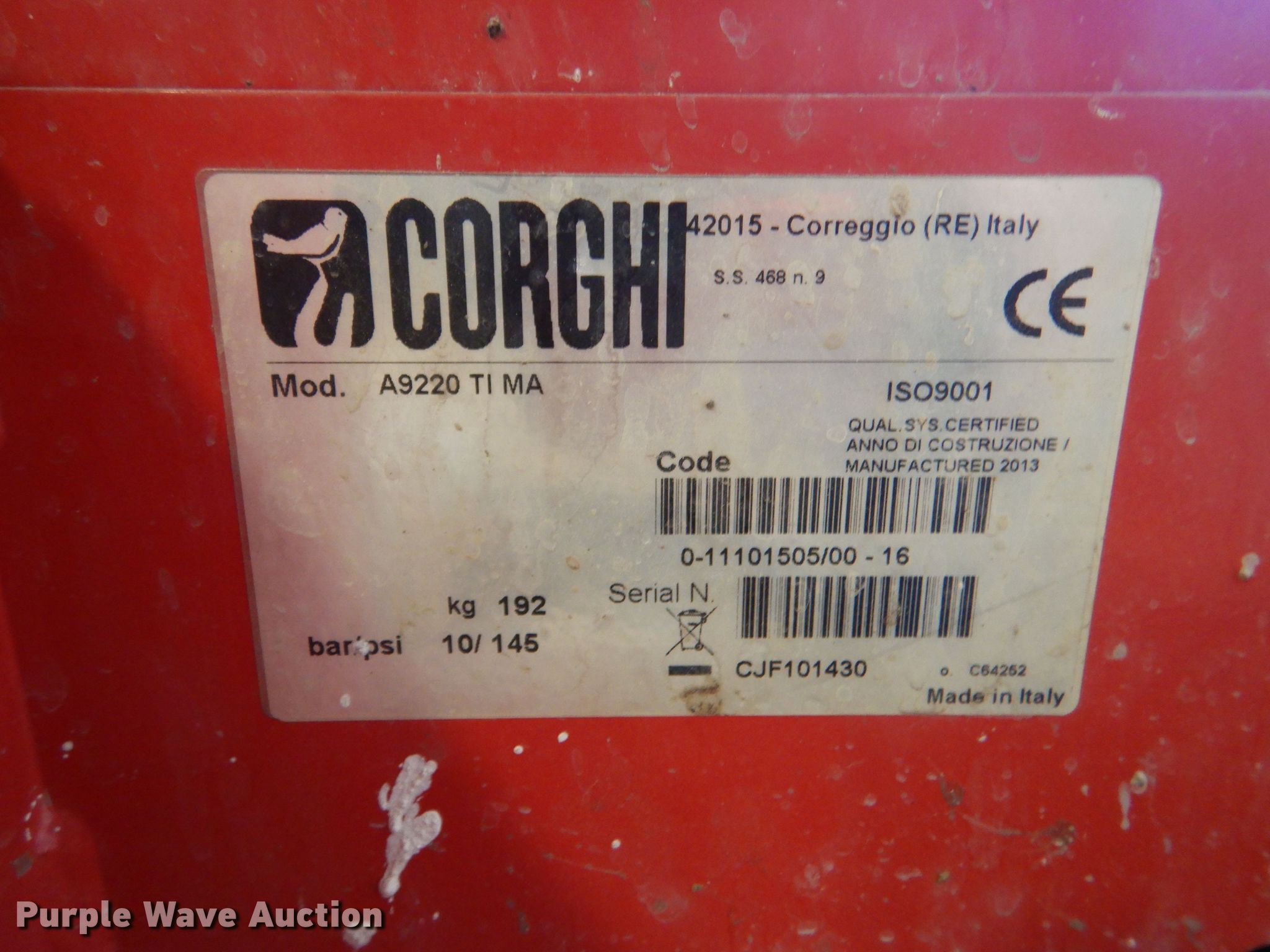 Purple Wave is selling a used Tools in Kansas. This item is a 2013 Corghi A9220 TI MA rim clamp tire machine with the following: 2013 Corghi A9220 TI MA rim clamp tire machine. Phillipsburg, KS 67661