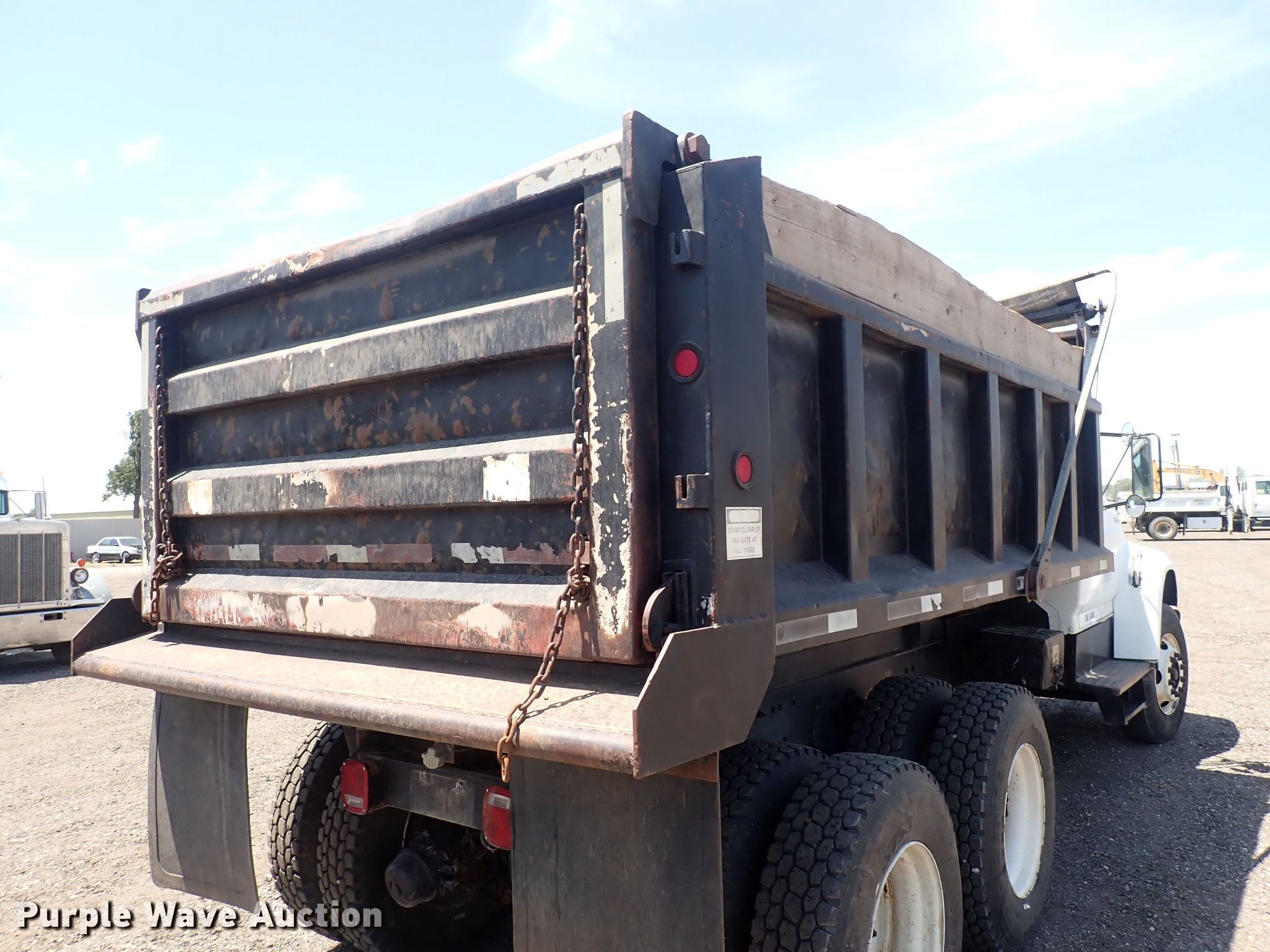 1998 Ford FT900 dump truck. Miles: 184,609 on odometer, VIN: 1FDYL90E4WVA20544. Engine Cummins ISC, Displacement: 8.3L, Cylinders: 6, Fuel type: Diesel. Transmission Automatic. Chassis Axles: Tandem, Suspension: Spring over walking beam, Brakes: Air, PTO, GVWR: 52,000 lbs. Interior Heat. Features Dump bed Heil, 14' L x 96" W, Side height: 37", Side board height: 12", Bed type: Steel, Roll tarp, Ram: Single , End gate: Manual. Tires Size: 11R22.5. Kansas title. 3760 S Broadway. Wichita, KS 67216