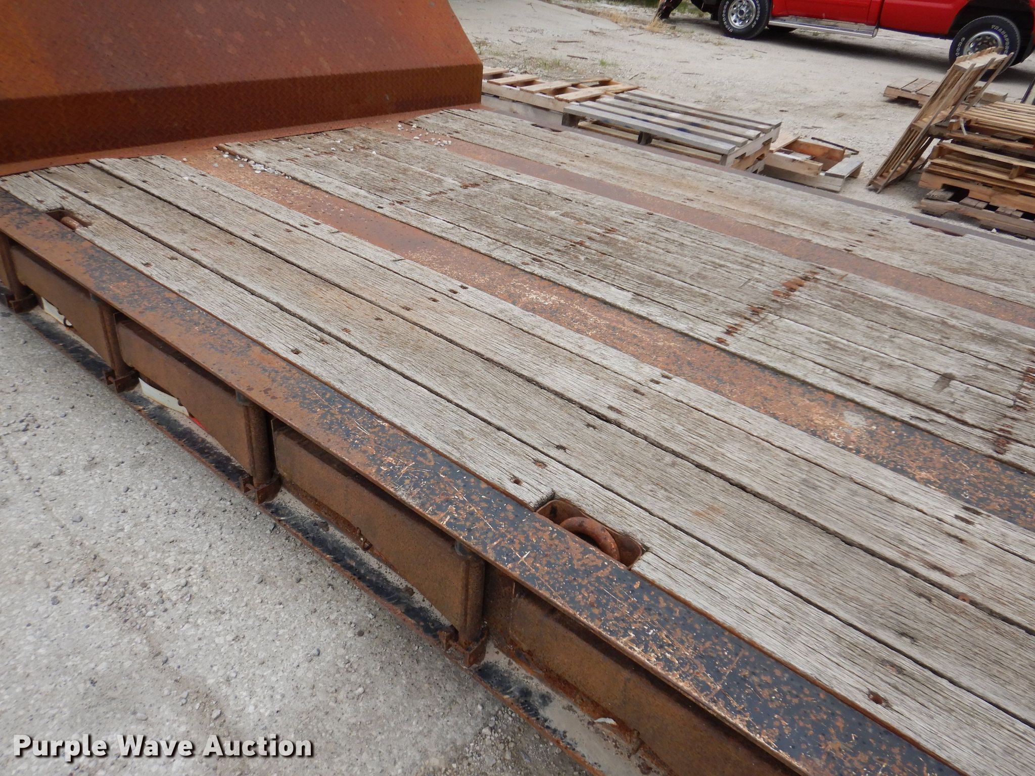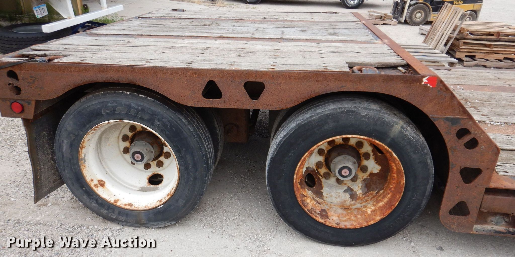 2003 Trail King TK60MG-482 lowboy equipment trailer. VIN: 1TKJ048283M023176. Dimensions Overall: 47' 6" L x 102" W, Deck: 29' L x 102" W, Top deck length: 10', Rear deck length: 7' 6", Deck height: 25". Features Deck type: Wood, Outriggers: Swing-out Board size: 18", Neck type: Detachable. Chassis Suspension: Air, Brakes: Air, Axles: Tandem, GVWR: 76,020 lbs, GAWR: 20,280 lbs. Tires Steel wheels, Size: 255/70R22.5. Iowa title. Seller is an Iowa licensed motor vehicle dealer. The buyer may be required to pay sales tax and/or registration fees to the dealer prior to taking possession. Title will be assigned and distributed by the dealer. Please contact the seller for distribution questions. Brokaw Supply. 2761 200th Street. Fort Dodge, IA 50501