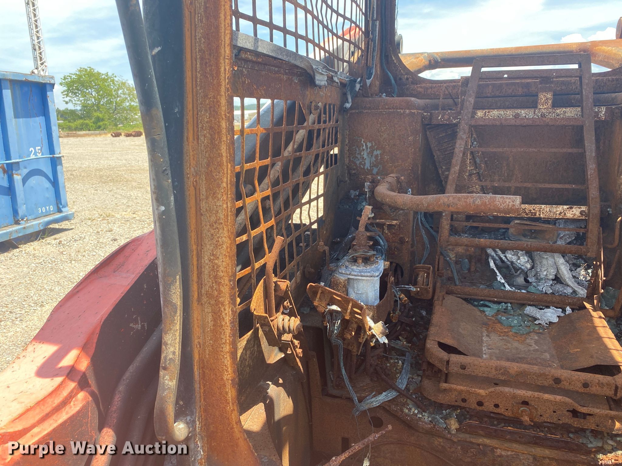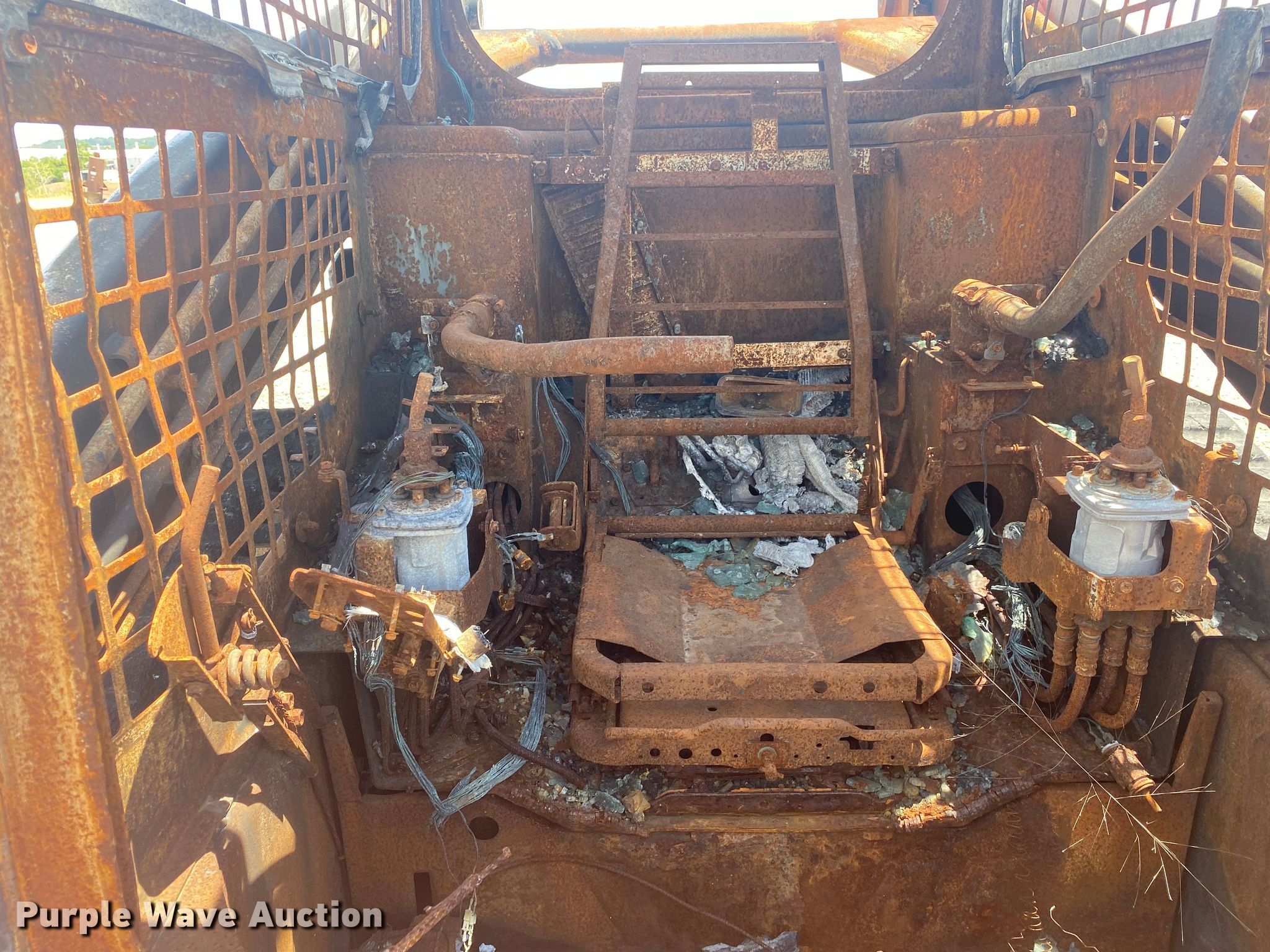 Kubota SVL90 tracked skid steer loader. Hours: Unknown. Engine Cylinders: 4, Fuel type: Diesel. Transmission Hydrostatic. Operators station Bucket control: Hand. Features Auxiliary hydraulics, Quick coupler: Hydraulic. Tracks Width: 18". Notes Fire damage, Auxiliary hydraulics disconnected, Non-operational unit. Arkoma, OK 74901