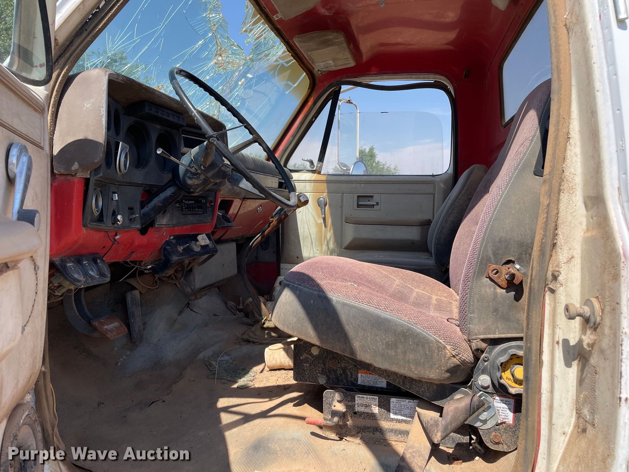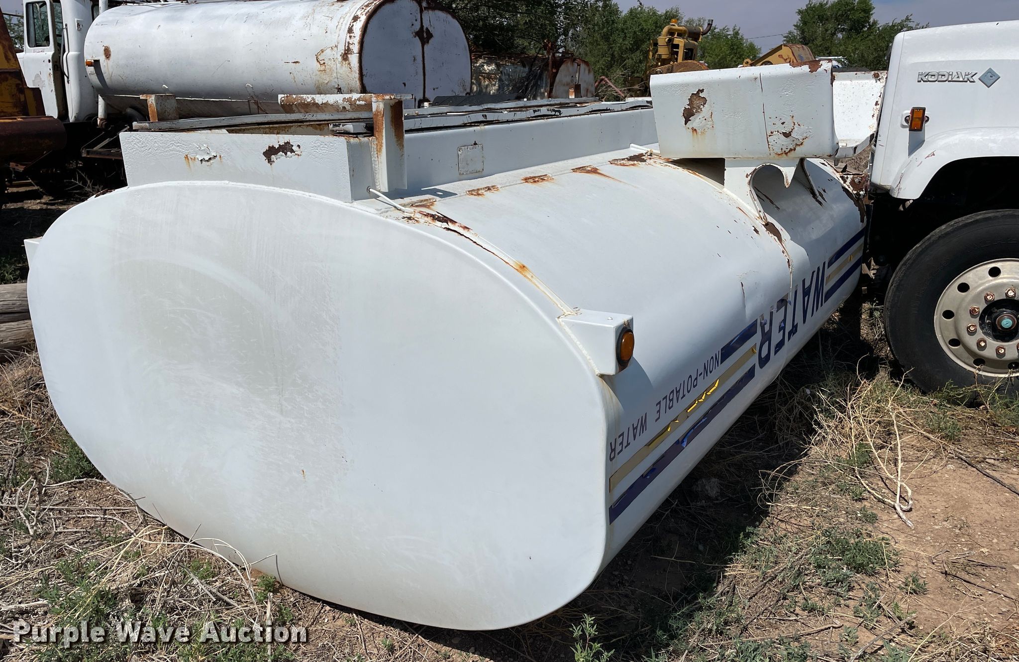 1984 Chevrolet Kodiak C70 water truck. Miles: 10,343 on odometer, VIN: 1GBM7D1Y3EV121452, Unit #: 1118. Engine Caterpillar 3208, Displacement: 10.4L, Cylinders: 8, Fuel type: Diesel. Transmission Speed: 4, plus 2. Chassis Axles: Single, Suspension: Spring, Brakes: Air, GVWR: 29,900 lbs, Double frame. Interior AC, Heat. Features Bed / tank Capacity: 2,000 gallons, Water tank Top fill. Tires Size: 11R22.5. Notes Windshield chipped or cracked, Unknown operating condition. Texas title. Holmes Construction. 10221 Climer Cir. Amarillo, TX 79124
