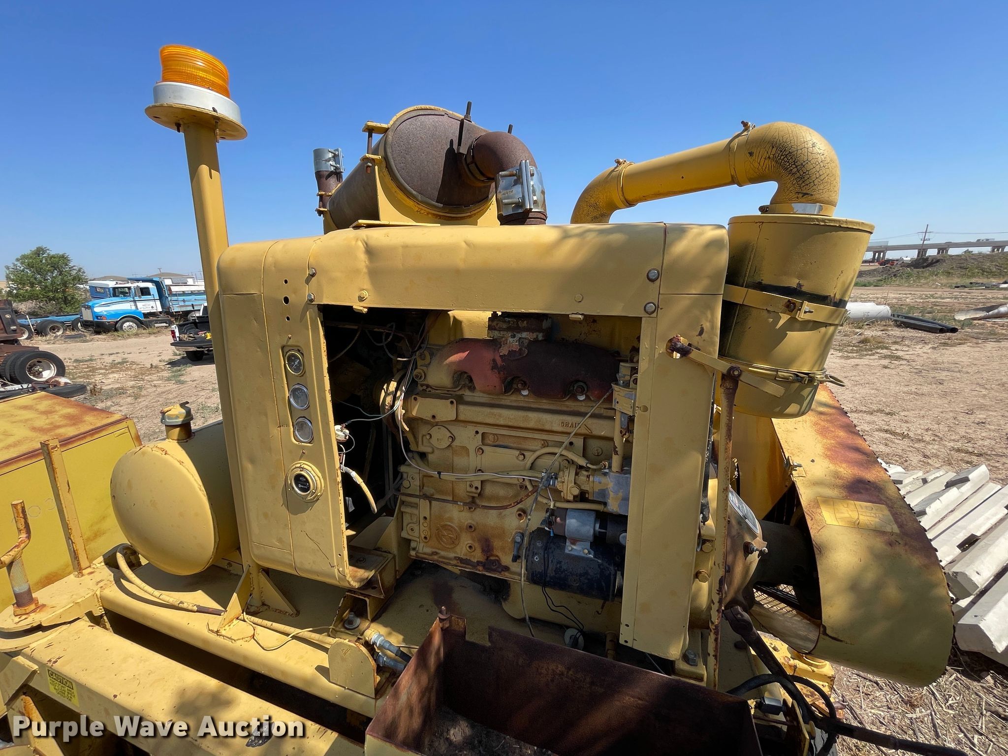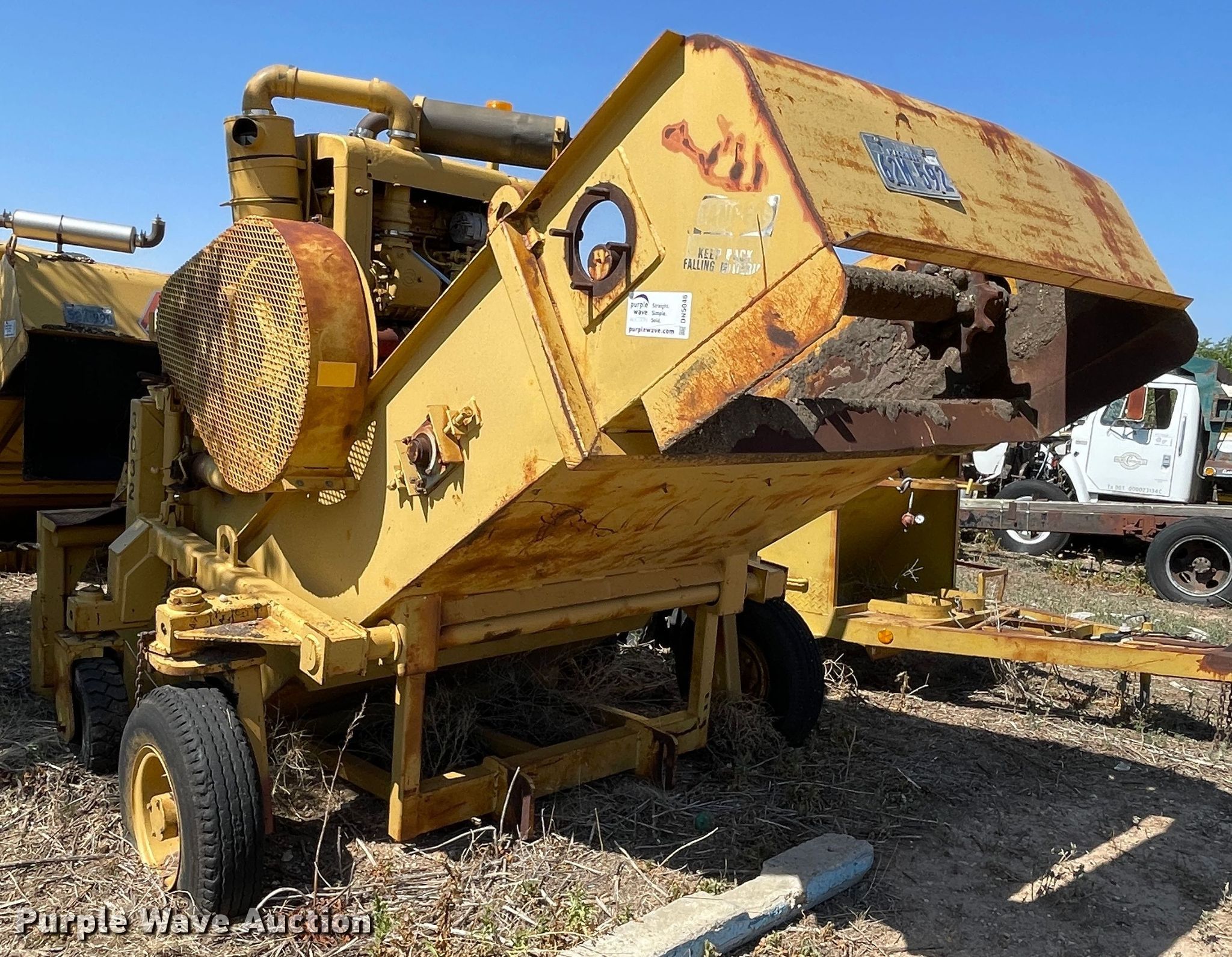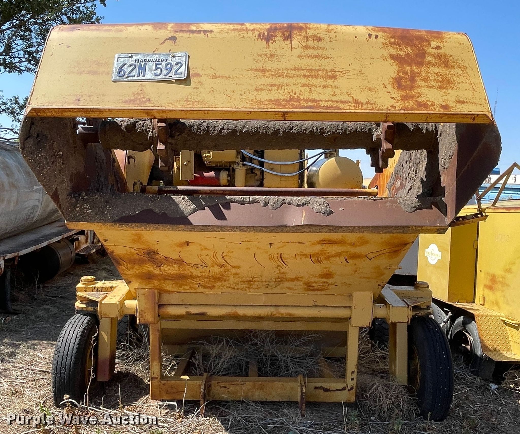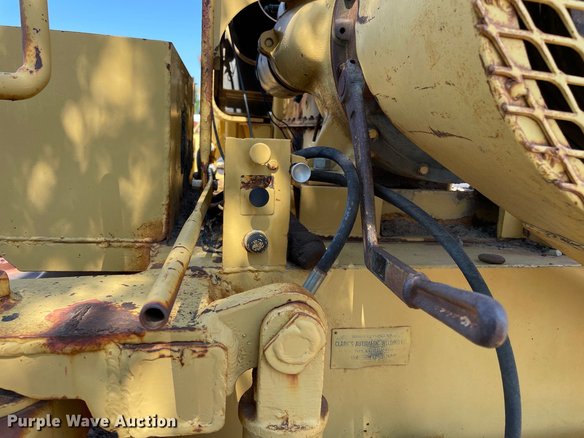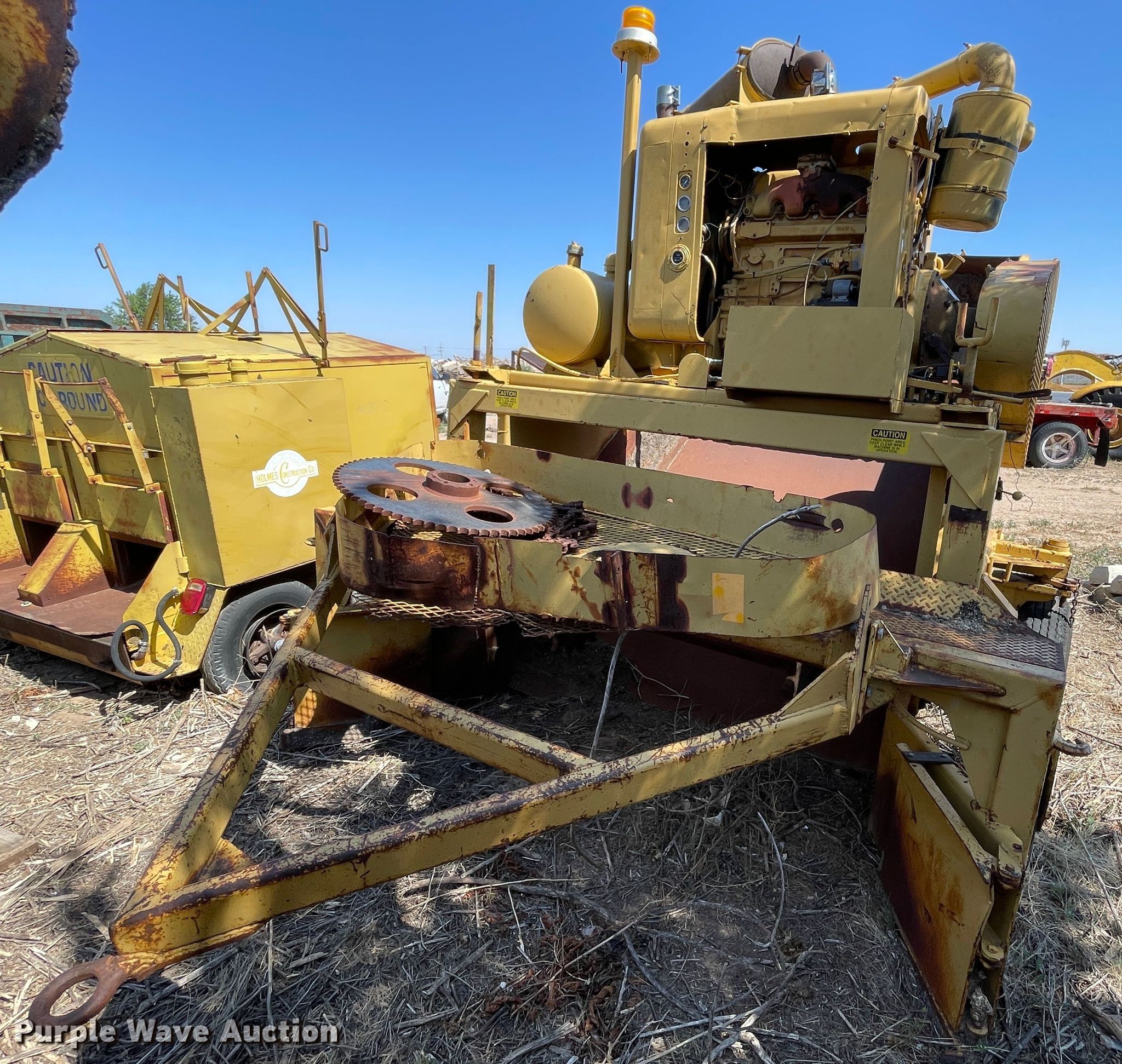 1961 Clarco 851 windrower. Hours: 175 hours on meter, Serial: 1128, Unit #: 3032. Engine Detroit Diesel, Cylinders: 4, Fuel type: Diesel. Features Pintle hitch. Tires Front: 6.00-9, Rear: 8.25R15. Notes Elevating chain missing, Non-operational unit. Holmes Construction. 10221 Climer Cir. Amarillo, TX 79124