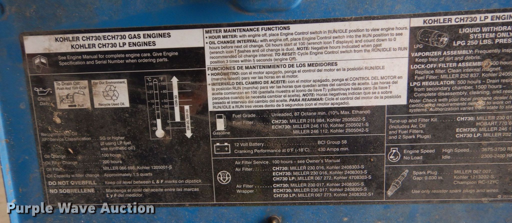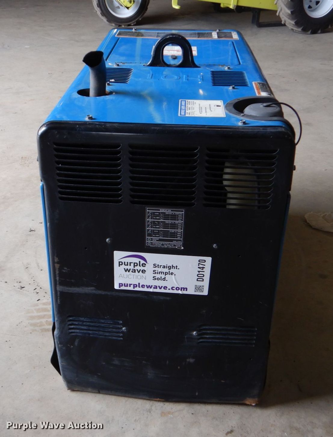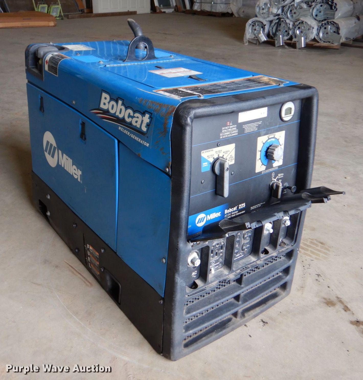 Purple Wave is selling a used Welder (Manual) in Texas. This item is a Miller Bobcat 225 welder with the following: Hours: 1,184 on meter, Serial: MJ220935R